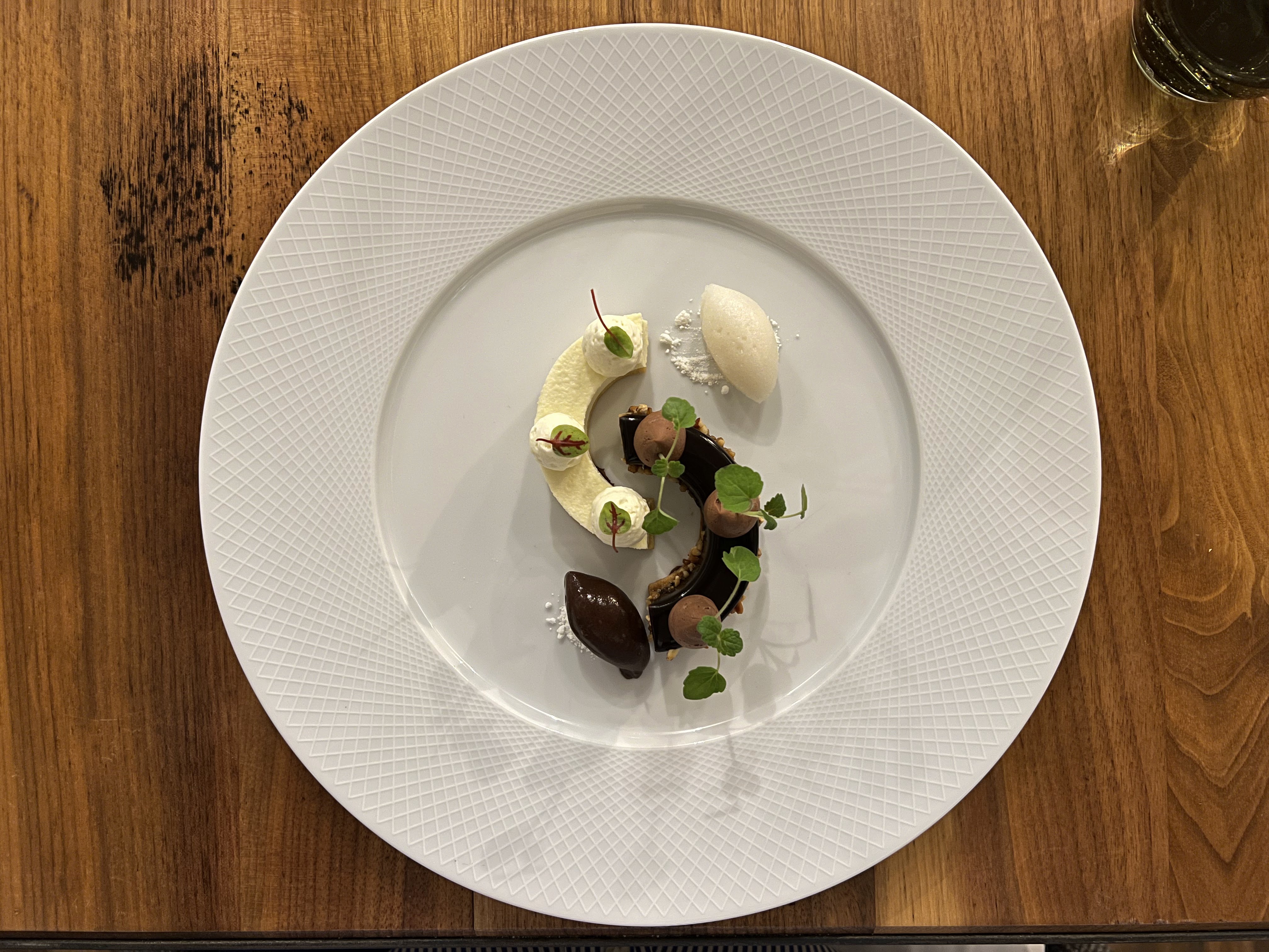 Un peu trop. Sérieux, strict, grand chic, bon genre. Cuisine précise, recherche évidente de surprendre, grande qualité des produits, table pour deux trop petite. Je n'ai pas aimé voir la cuisine de ma table. Tout est très gustatif. Un peu cher 200€ à deux avec une bouteille de vin à 45€ (dans les tous premiers prix) pas de demies mais vin au verre.