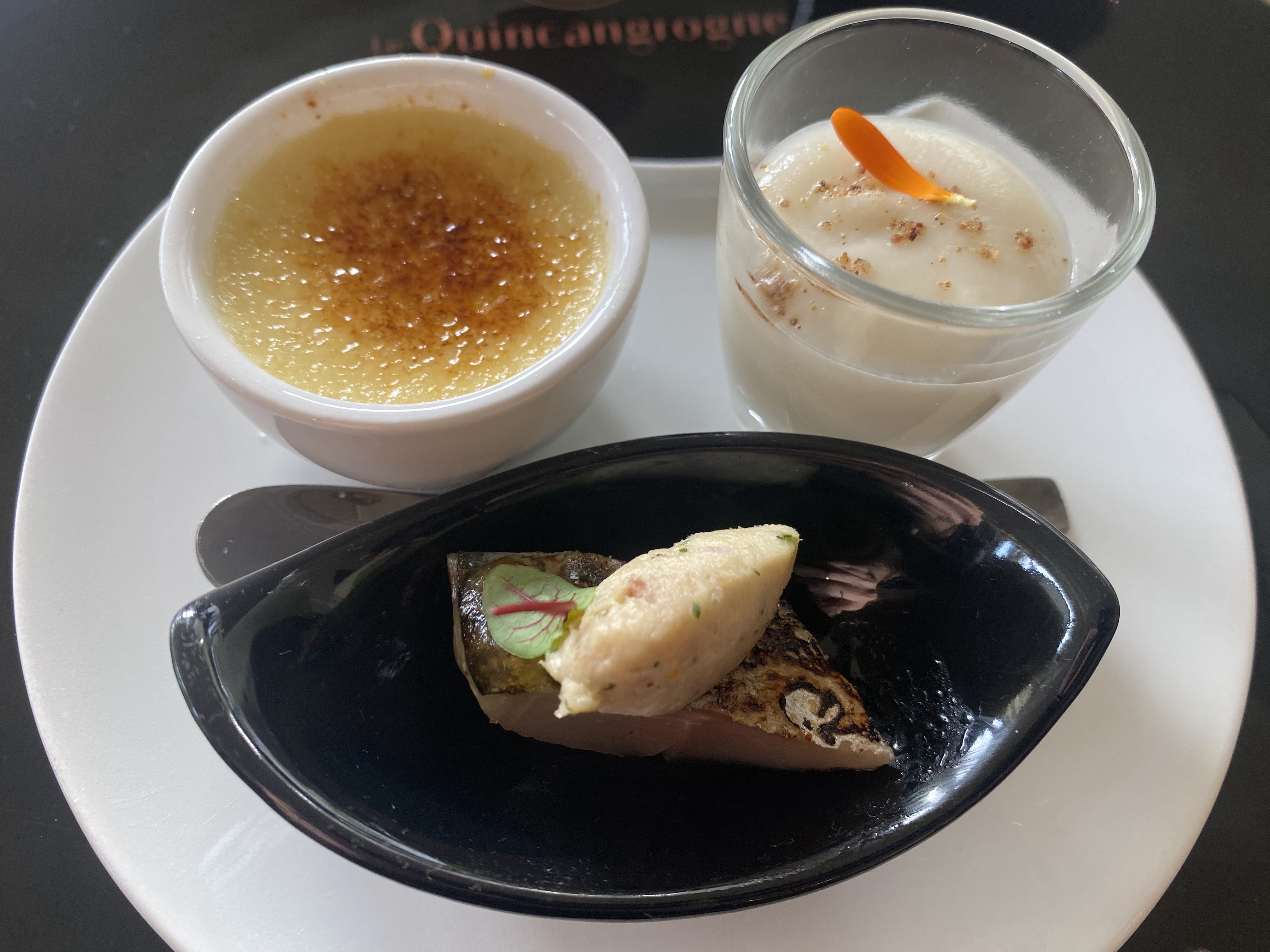 Pourquoi recommander le Quincangrogne ? Parce que le restaurant est situé en face de la Marne et que sa terrasse est des plus dépaysante. Parce que vous êtes accueilli par une charmante réceptionniste. Parce que le service est très agréable et très attentionné. Parce que les plats proposés sont originaux en composition et en accompagnements. Parce que les cuissons des poissons et des viandes sont justes. Mention très spéciale à la pâtisserie avec ce dessert fraises et glace aux petits pois. Quelle belle création originale et surprenante... mais tellement gourmande. Merci à toute l'équipe du Quincangrogne pour son accueil et à ce délicieux déjeuner.