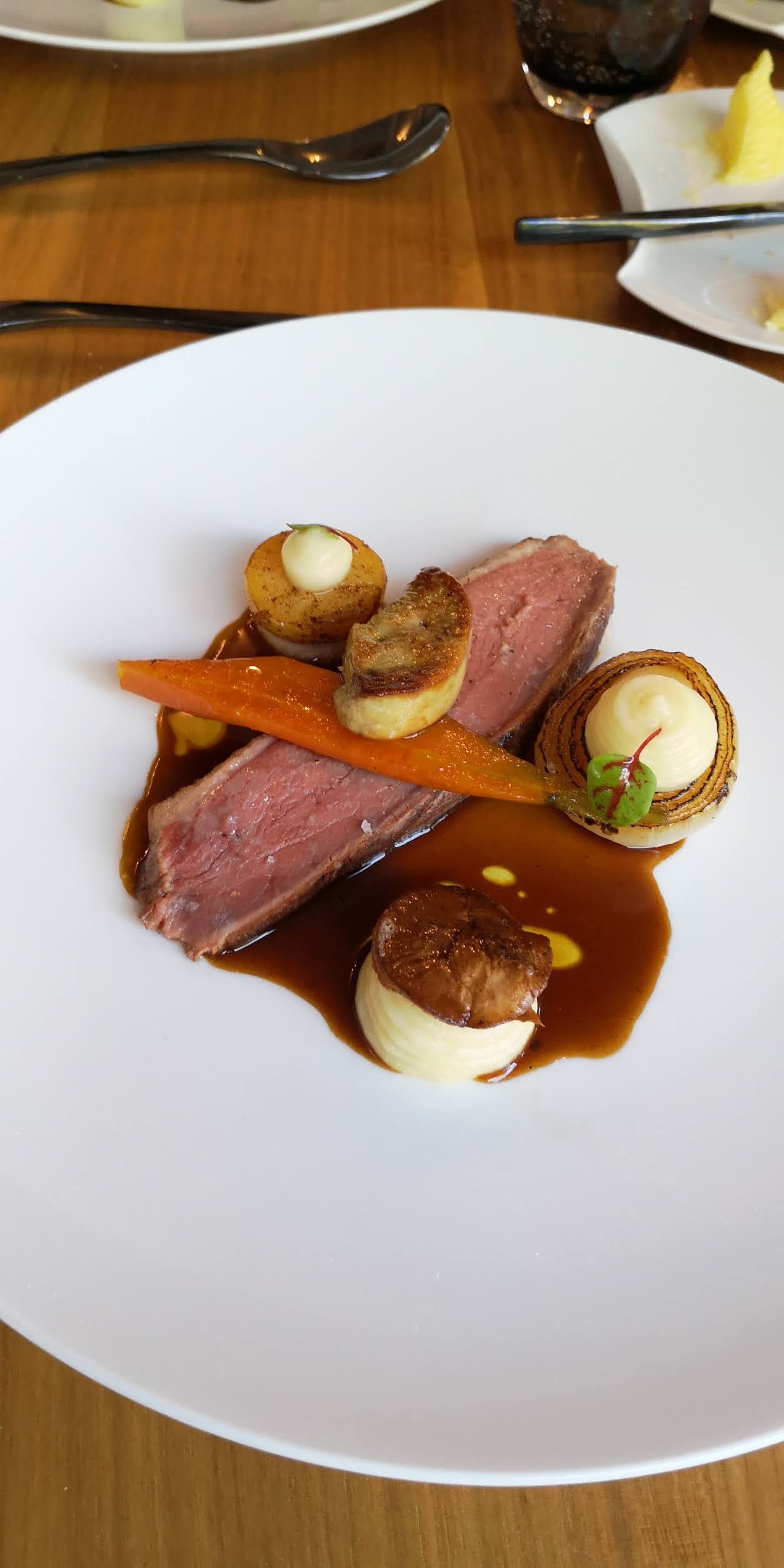 Service irréprochable, tres bonnes information sur la composition des plats. Vin excellent. Repas a la hauteur des attentes et tres bien présenté. Bravo au chef pour le montage de chaque plat.