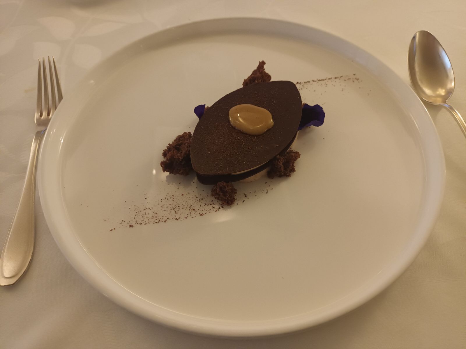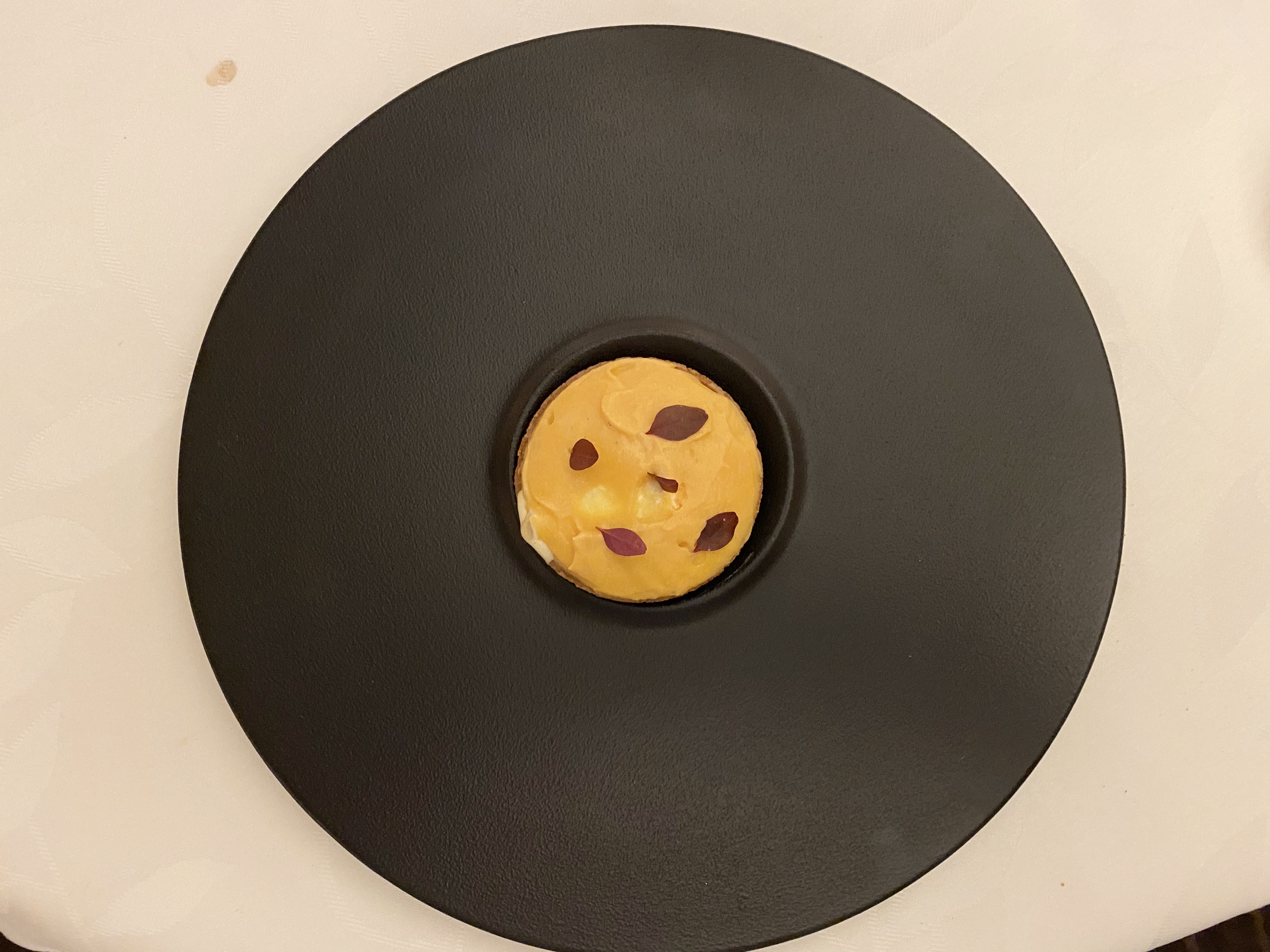 Dîner du 10 mars 2020 - Deux personnes - Dès le service de la mise en bouche, nous avons été saisis d’inquiétude pour la suite du repas. Annoncer une mousse de choux-fleurs parsemée de grains, même pas des copeaux, de tuber melanosporum sans odeur ni goût constitue un mauvais démarrage. Peut-être étaient-ce des miettes de biscottes fortement gratinées. Il se trouve que nous sommes propriétaires de chênes truffiers et que nous avons de ce fait l’outrecuidance d’être en mesure d’exprimer une opinion qualifiée. La suite fut à l’avenant ce qui nous permettra de conserver un souvenir inoubliable de notre soirée. Martial Schmit.