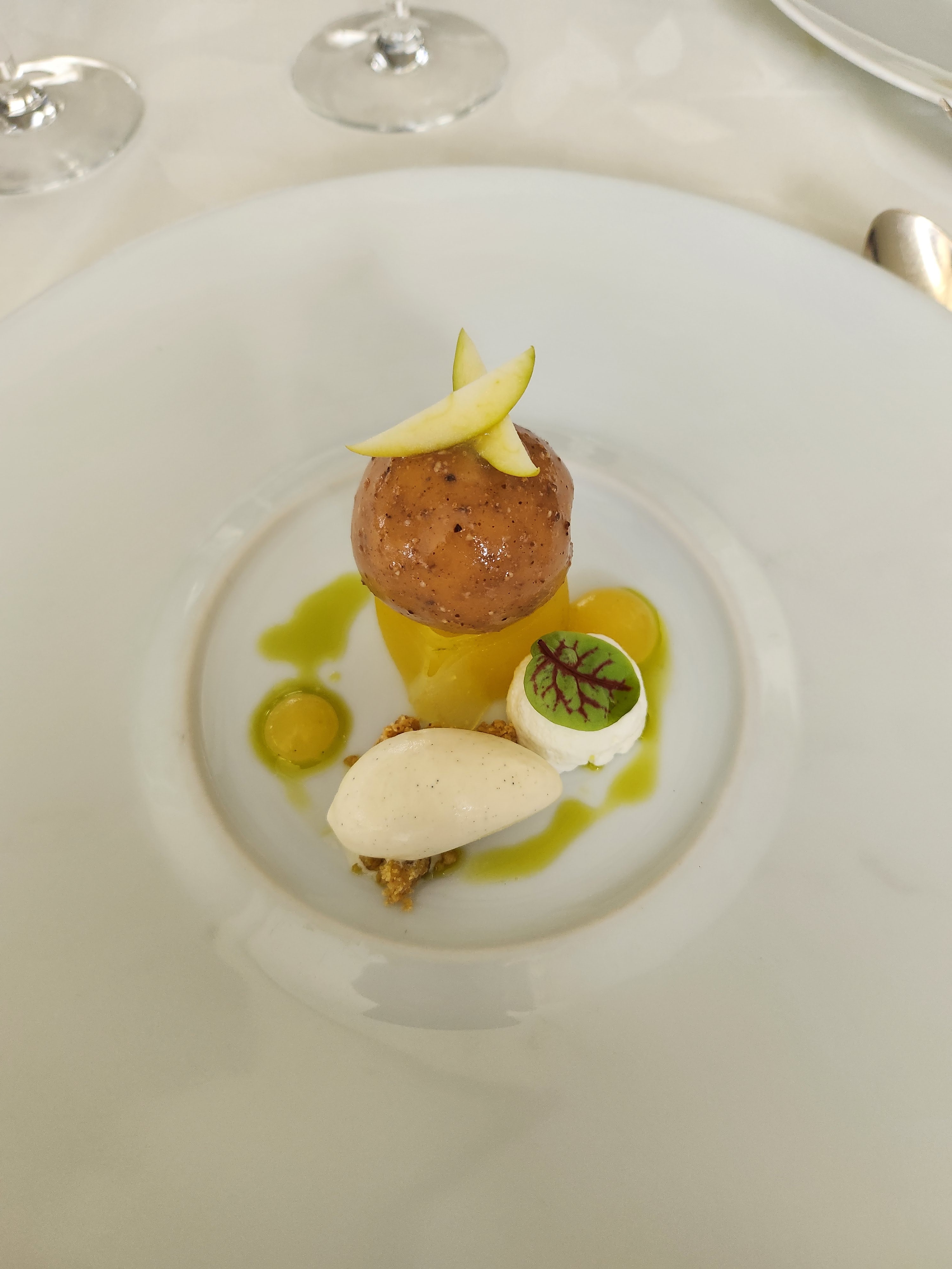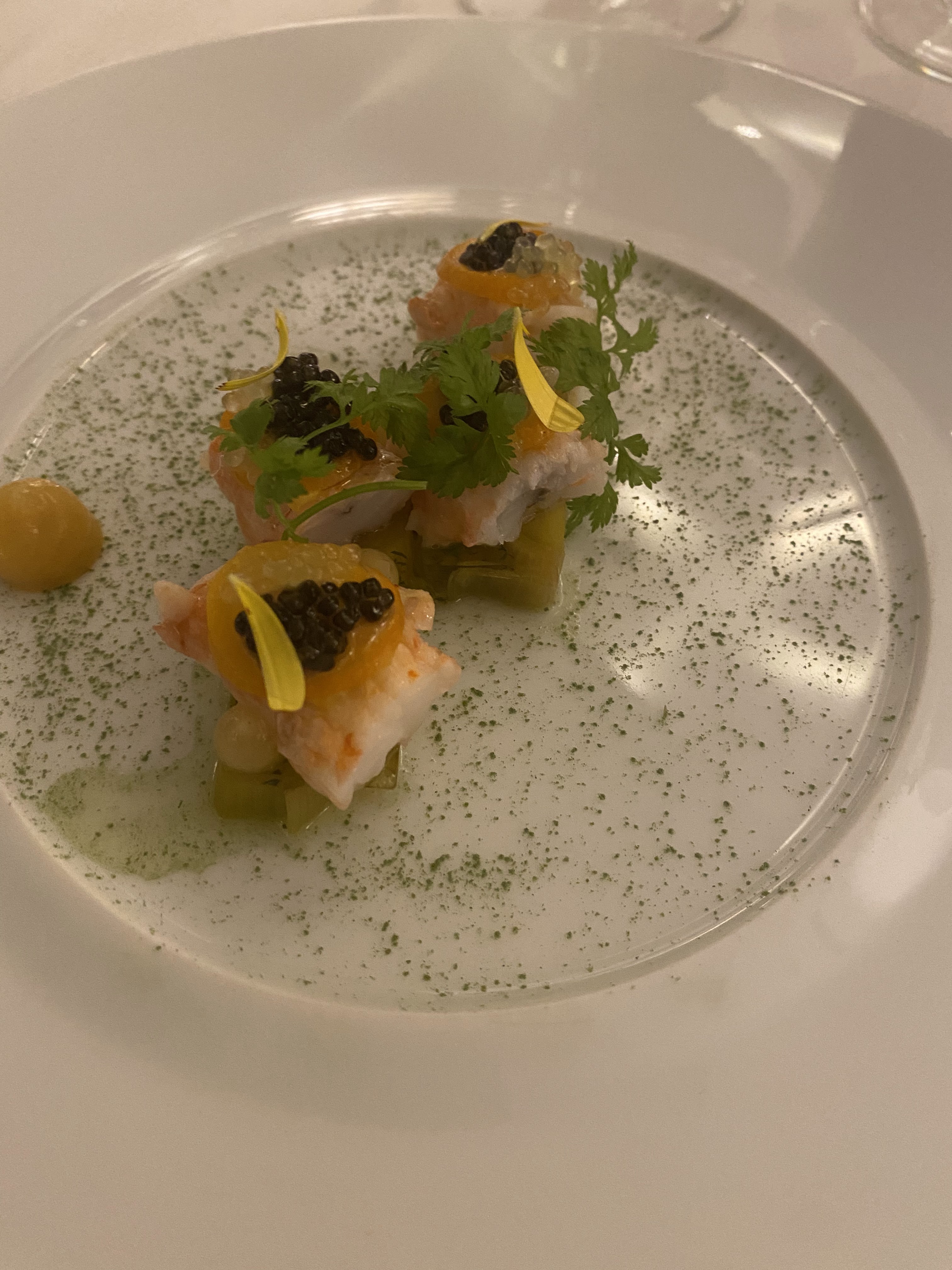 Ambiance feutrée professionnalisme et gentillesse du personnel les plats sont fabuleux avec le petit grain de folie artistique exigé dans un étoilé