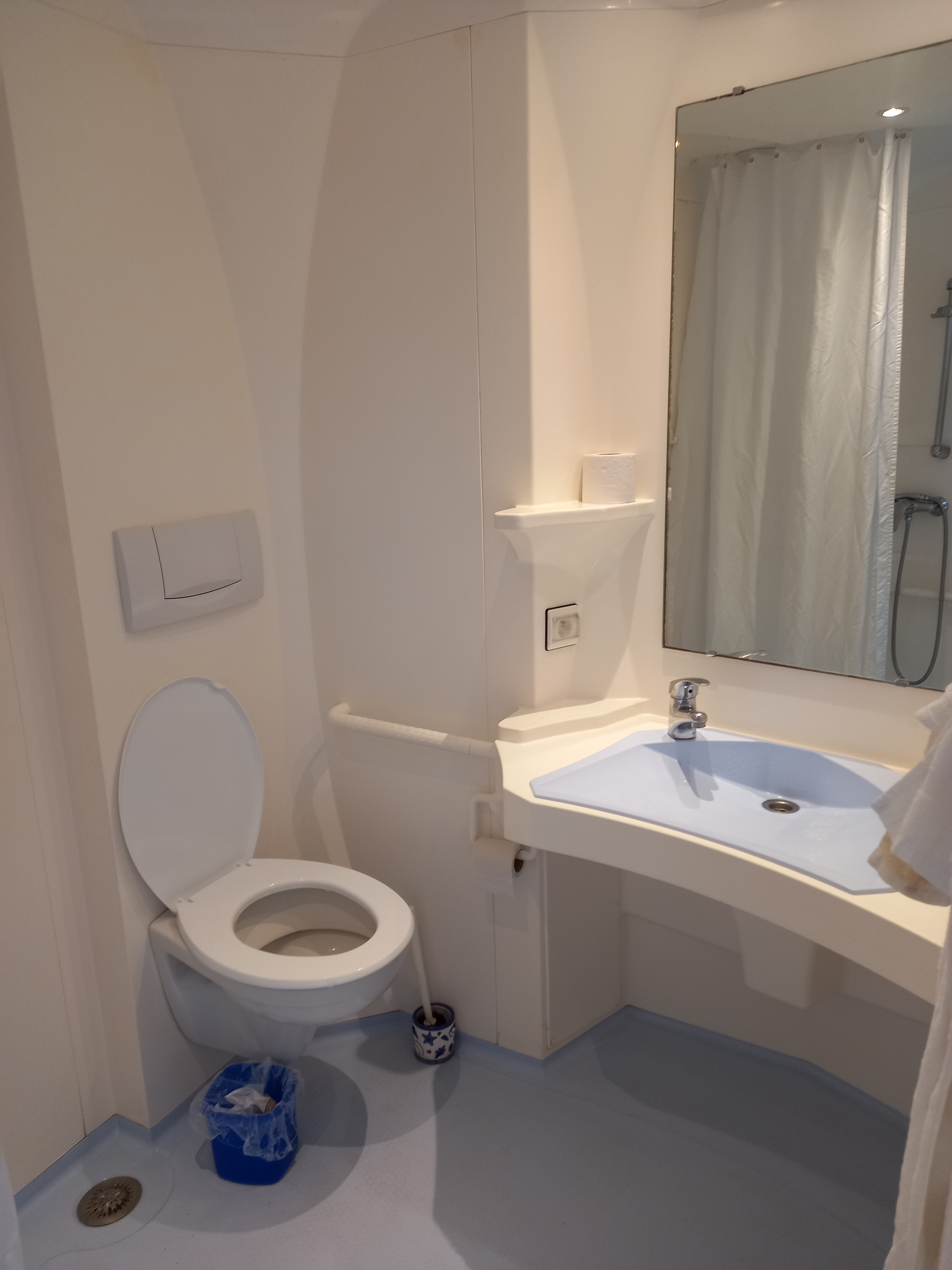 Chambre très propre toilette et douche également propre mais il faudrait repenser à la douche car bruillante la douche étant en plastique si non pour le prix raisonnable