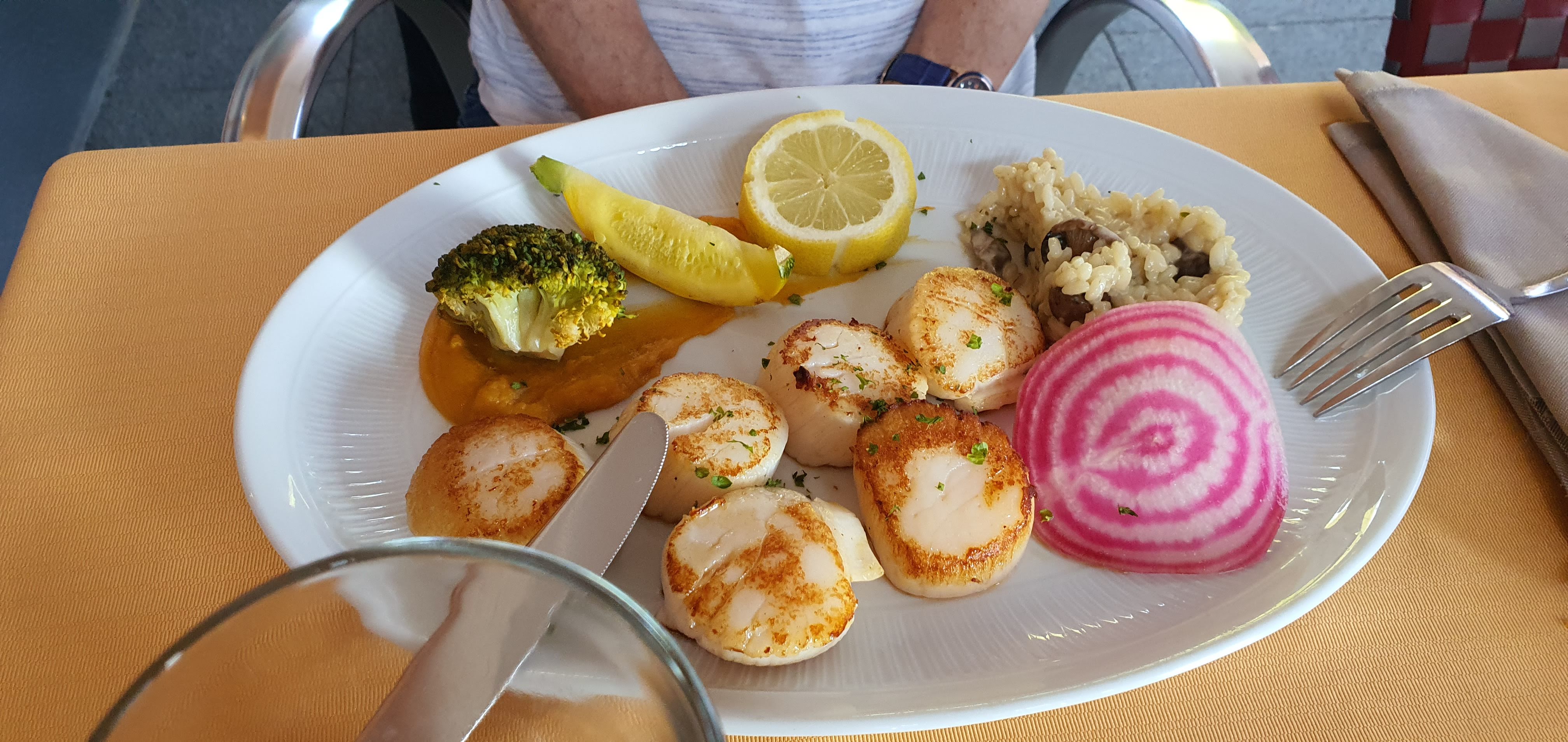 Endroit très agréable repas succulent (risotto à la truffe et ris de veau)
