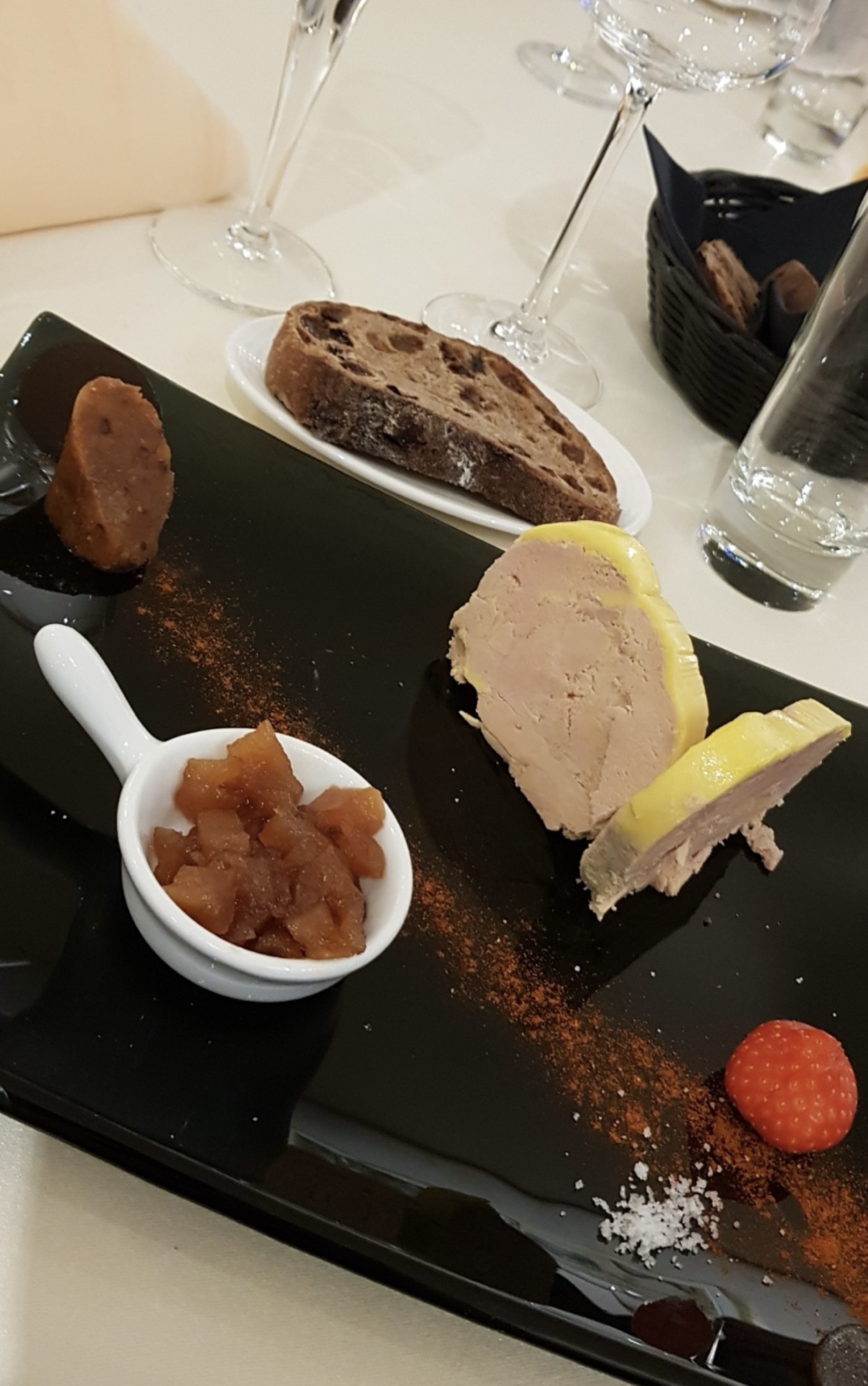 Très bon repas pour la St Valentin une seule réserve pour l entrée foie gras caramélisé qui collait dans la bouche. Dommage car le foie gras était délicieux tout comme le reste du repas comme d habitude.