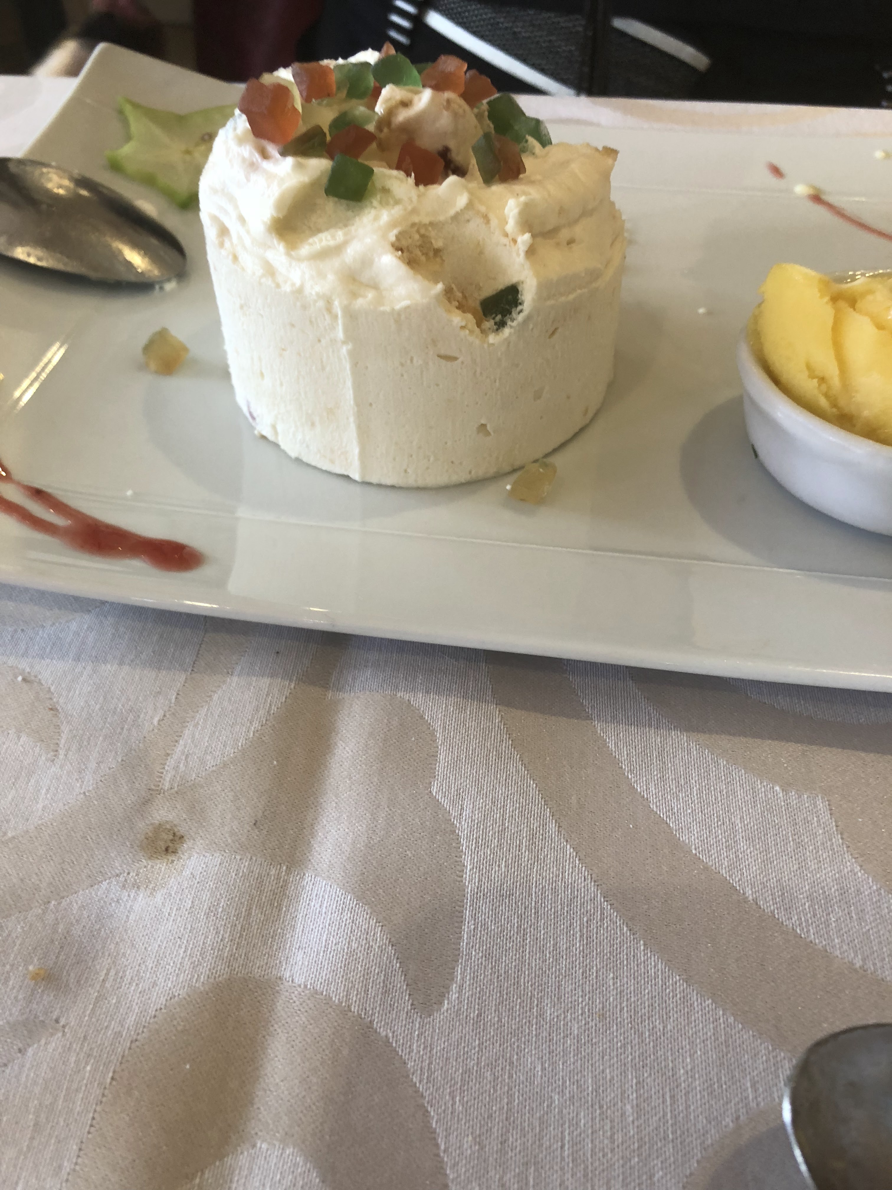 Un peu déçue sur cette mise en bouche sans aucune saveur. Un feuilleté mal présenté. Assiette viande de veau délicieuse avec même sauce que le feuilleté. Dessert vacherin apprécié.