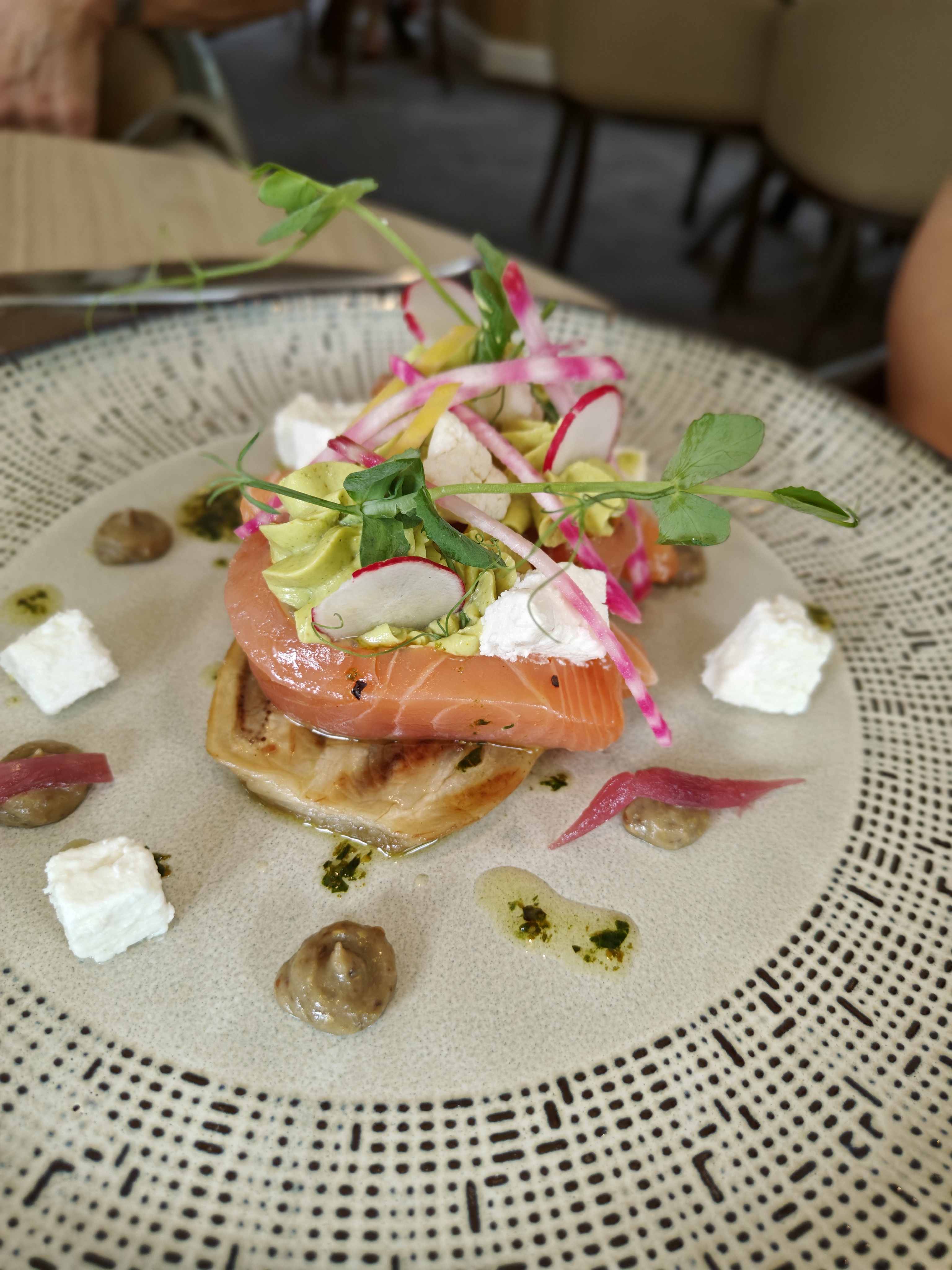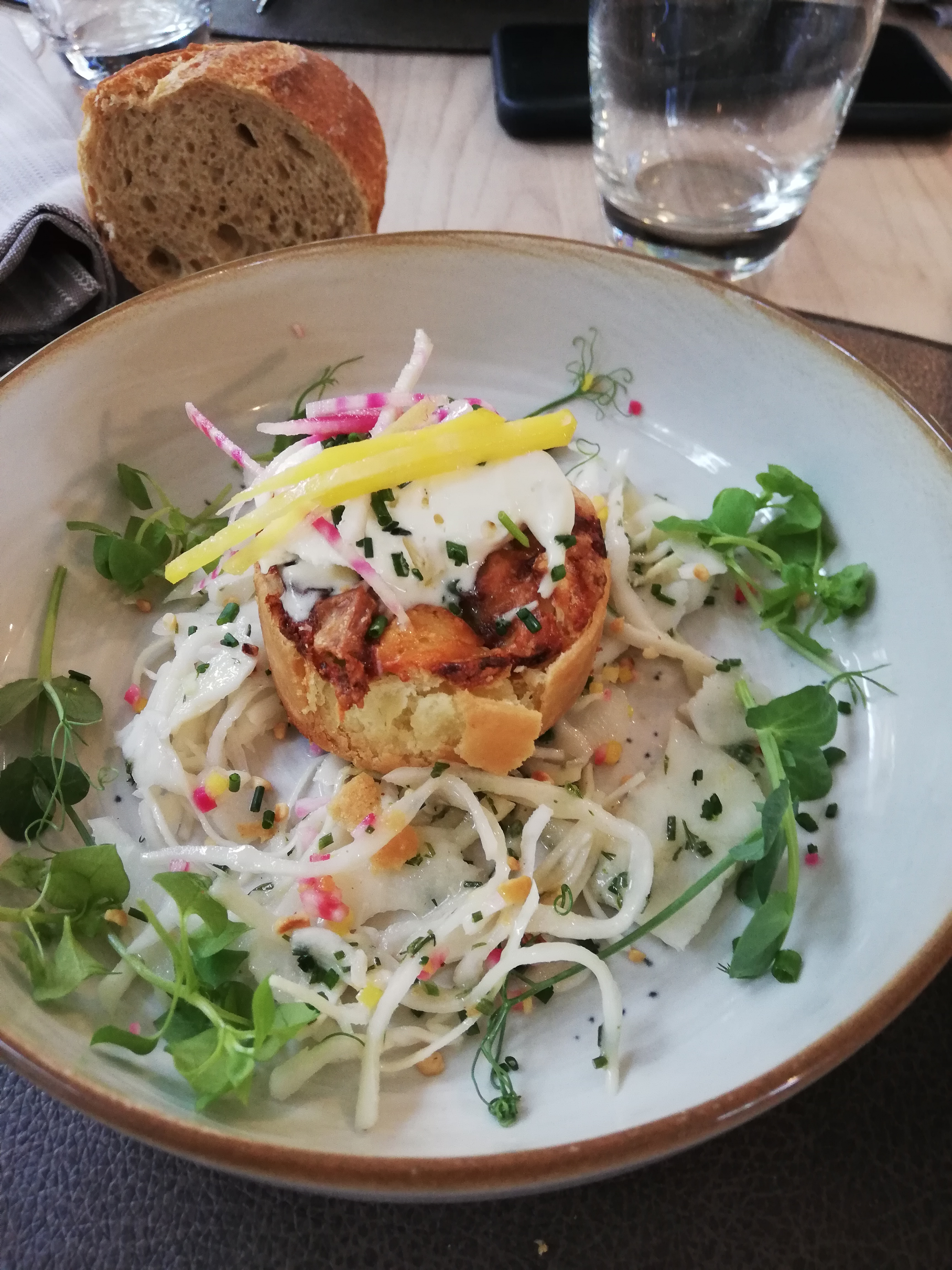 Nous avons déjeuné à deux... Honnêtement... rien de spécial ! L 'entrée était très bonne ( parmentier de cochon) , le plat ... Boff! Quand au dessert, une tartelette inspirée de la forêt noire ( j'ai pensé aux premiers gâteaux que faisaient les enfants 🤦) Je n'ai pas réussi à la manger... Je m'attendais à quelque chose de plus élaboré . Franchement très cher pour pas grand chose... Nous n'y retournerons pas.
