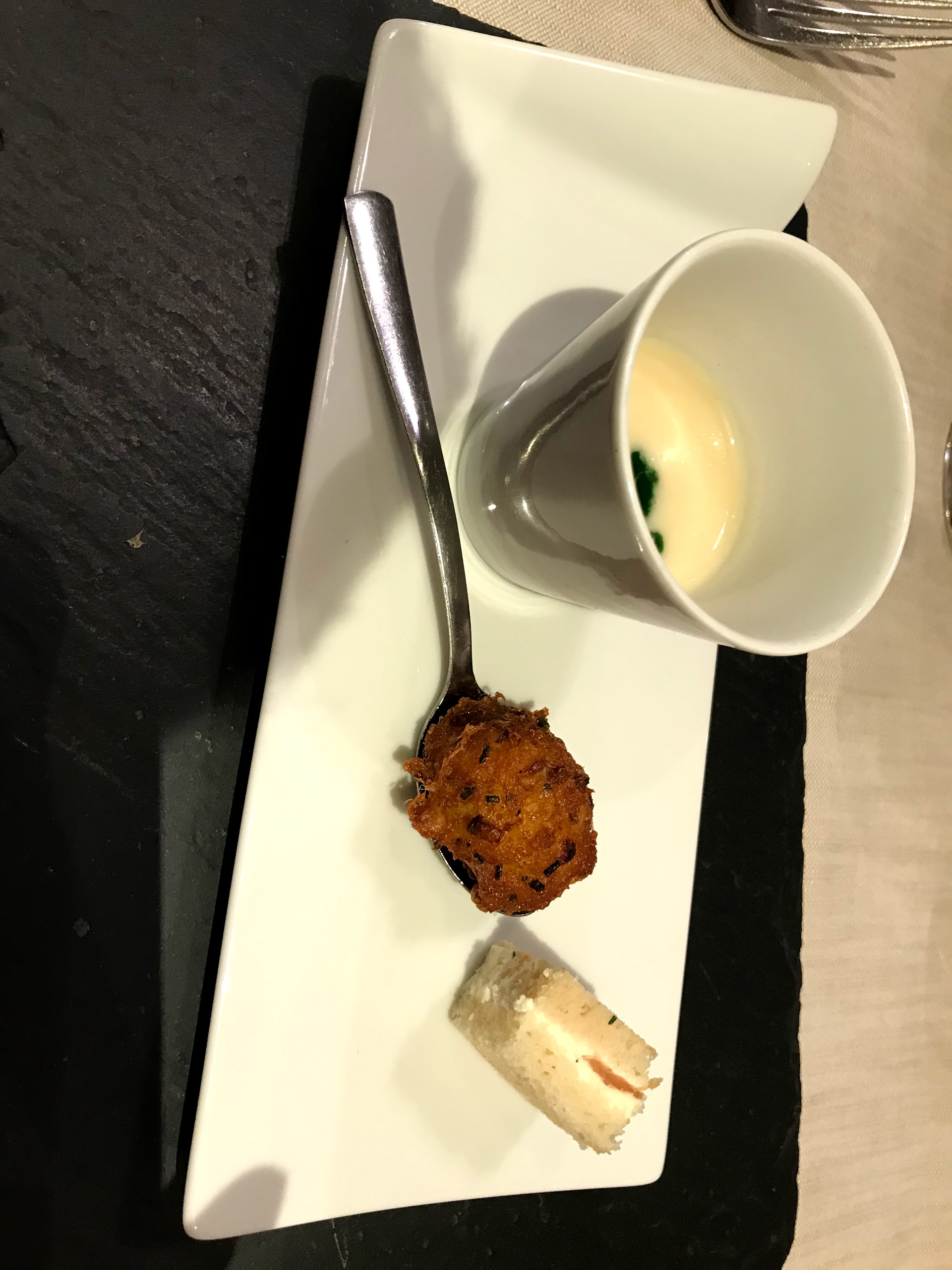 Amuse bouche, entrée, plat, juste somptueux. Vraiment délicieux, un peu déçu par le dessert qui est épatant au visuel mais décevant niveau dégustation.
