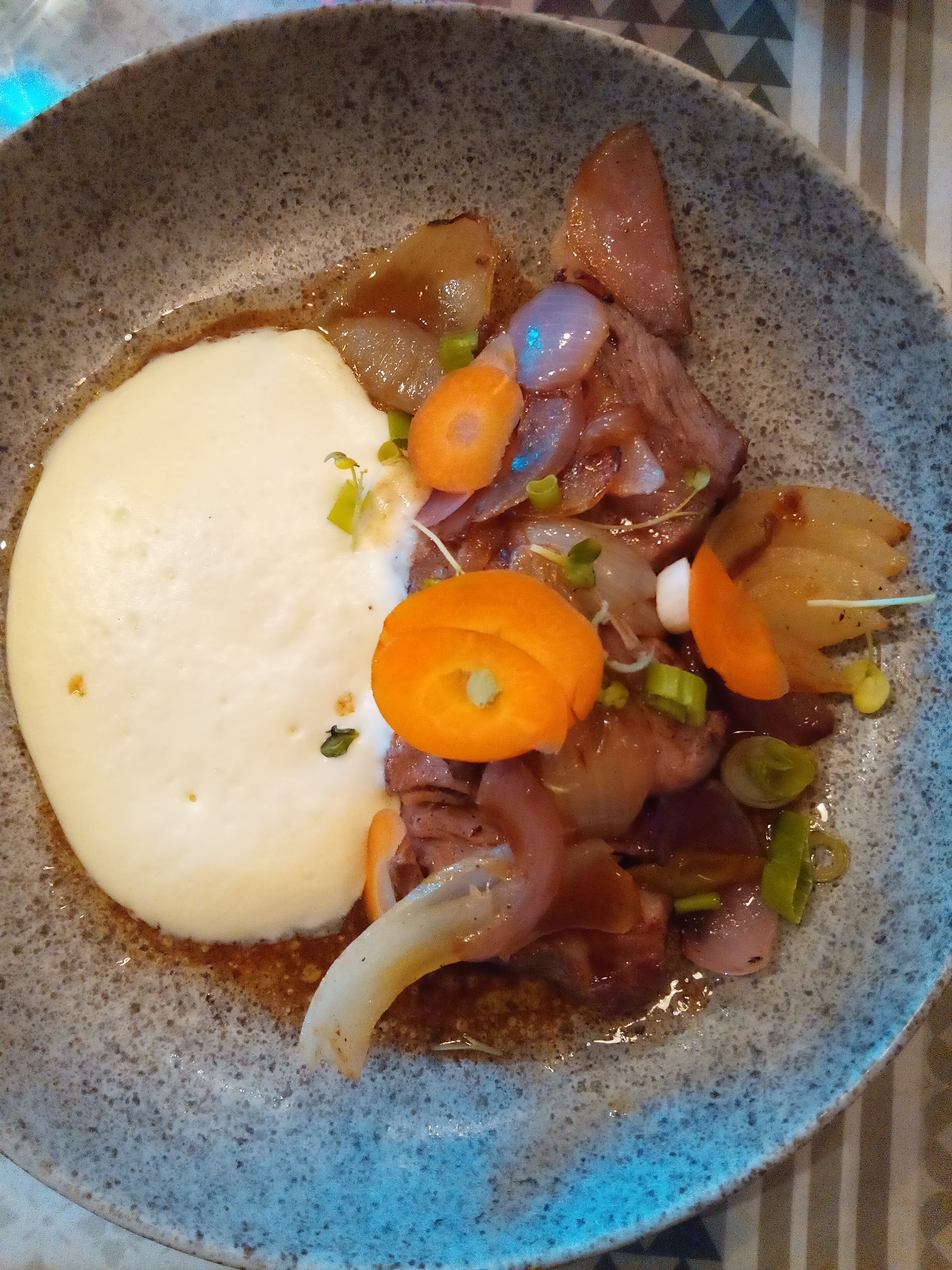 Lieu charmant, mais nous avons été déçu par le repas ,très moyen. Menu à 28.00 qui semblait intéressant, mais en entrée, le poulpe ,assez raide ,ensuite le lapin d une texture bizarre, certaines parties aussi molles que de la purée. Heureusement la sauce champignon ,était très goûteuse; présentation dans des assiettes très creuses ,peu adapté pour manger une volaille. Dessert : poire belle Hélène repensée, correct. Dommage ,le personnel était charmant et très attentionné
