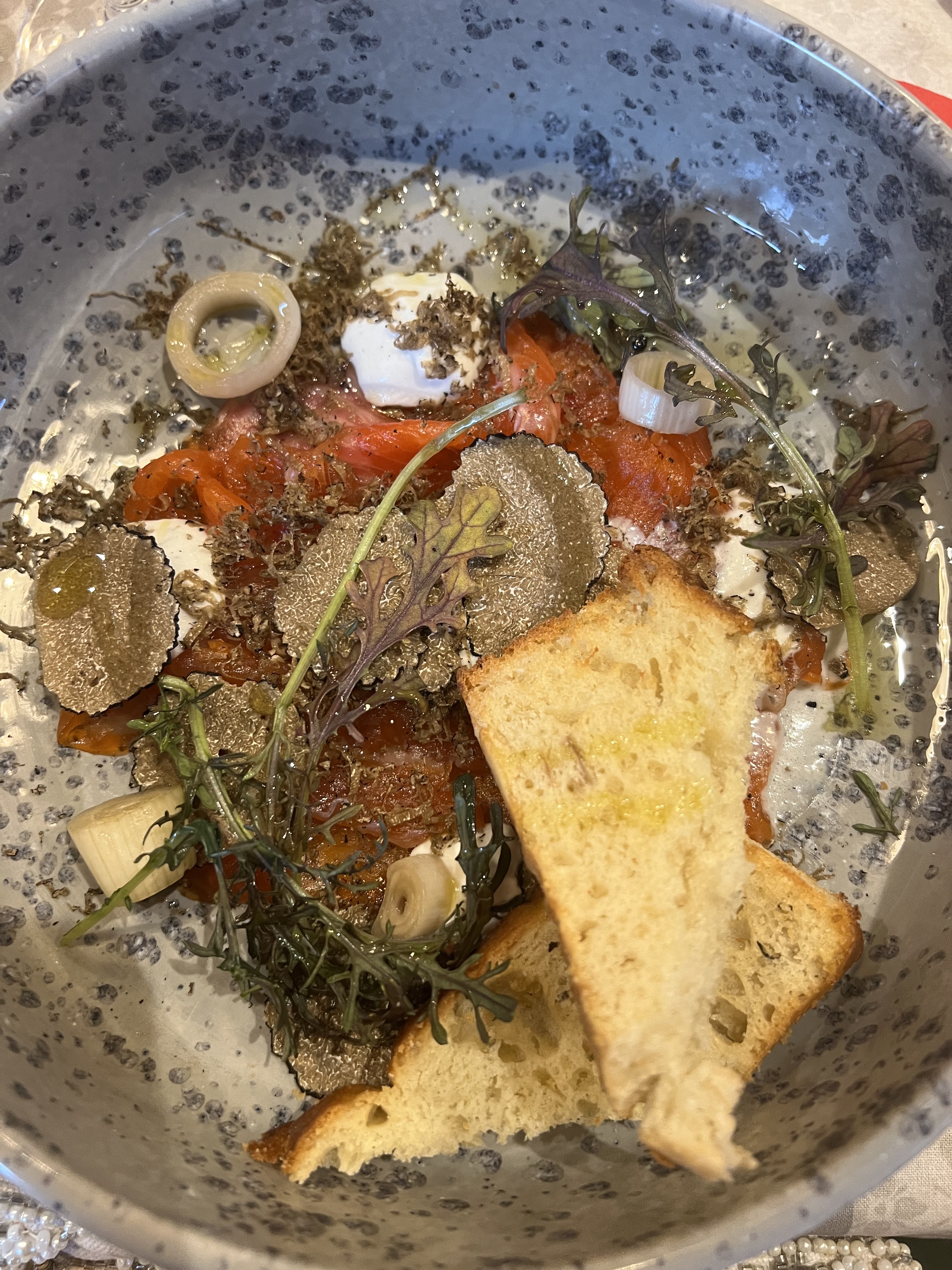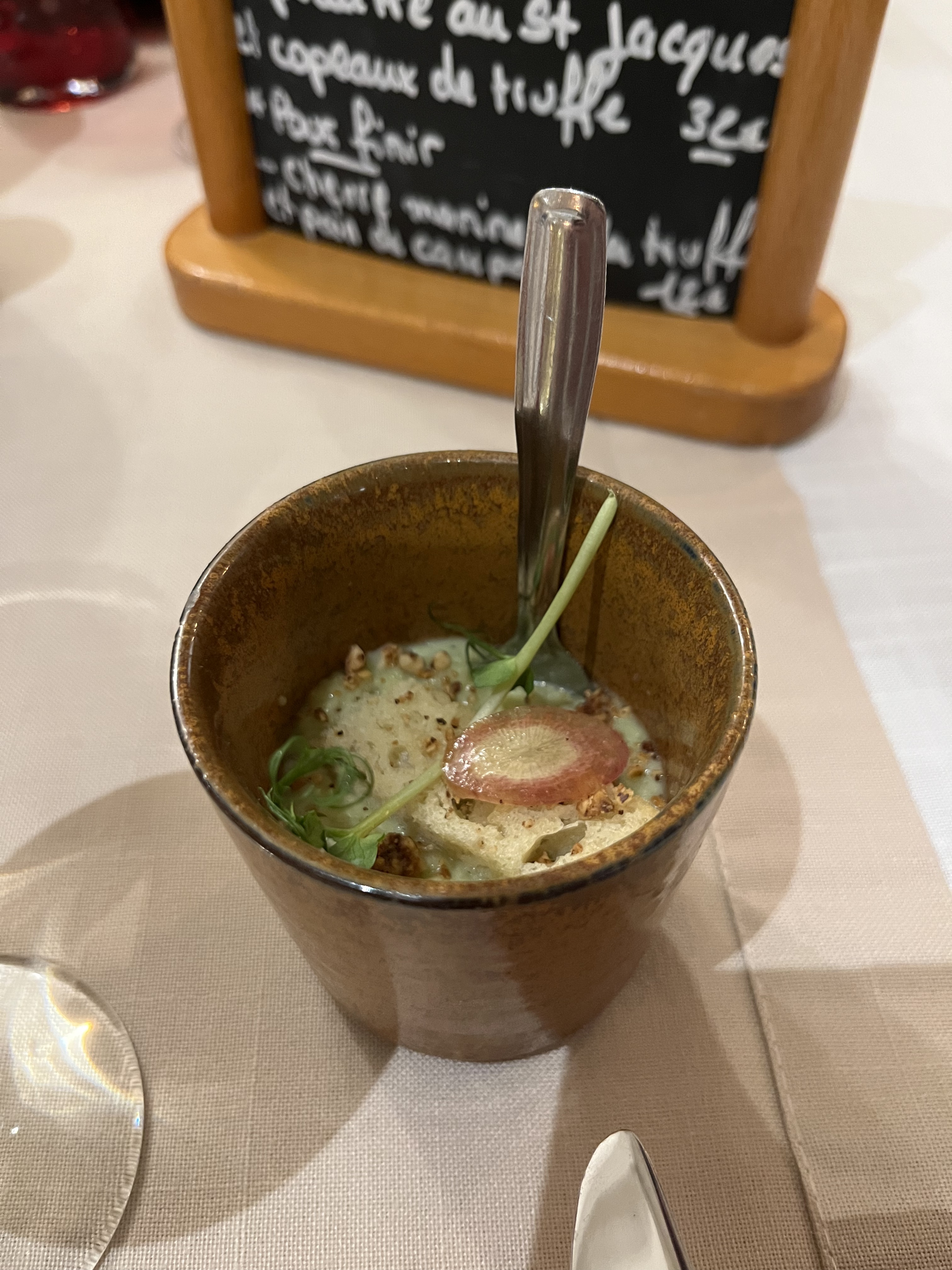 Aujourd’hui fête de la truffe noire à Aups . Repas succulent proposé aux clients ! De la mise en bouche pour l apéro jusqu’ au dessert ! Je recommande vivement et tiens encore à féliciter le chef ainsi que tout le personnel pour sa rigueur ( service , réservation, propreté, gentillesse ! ) Le Saint Marc mériterait une étoile !