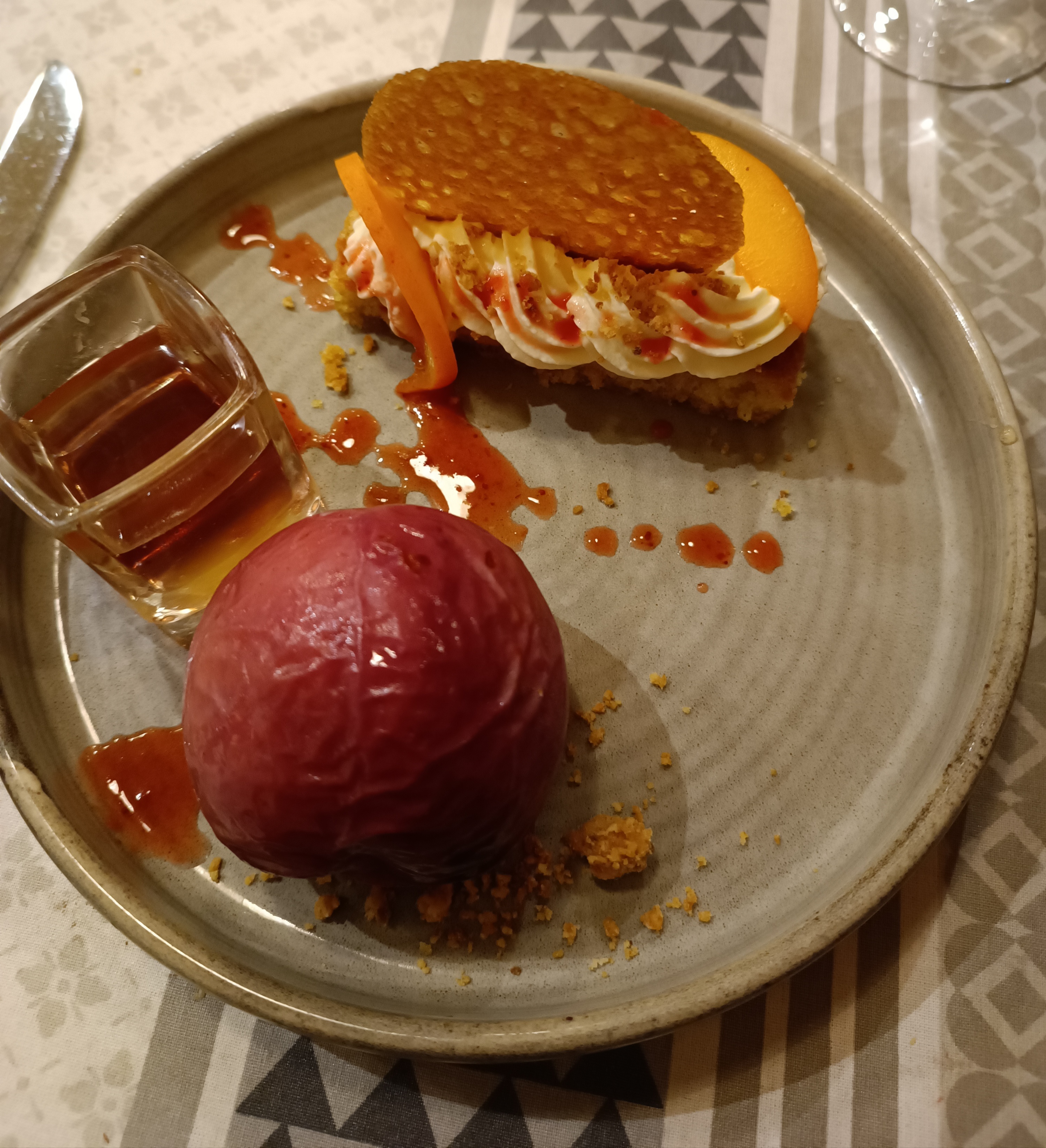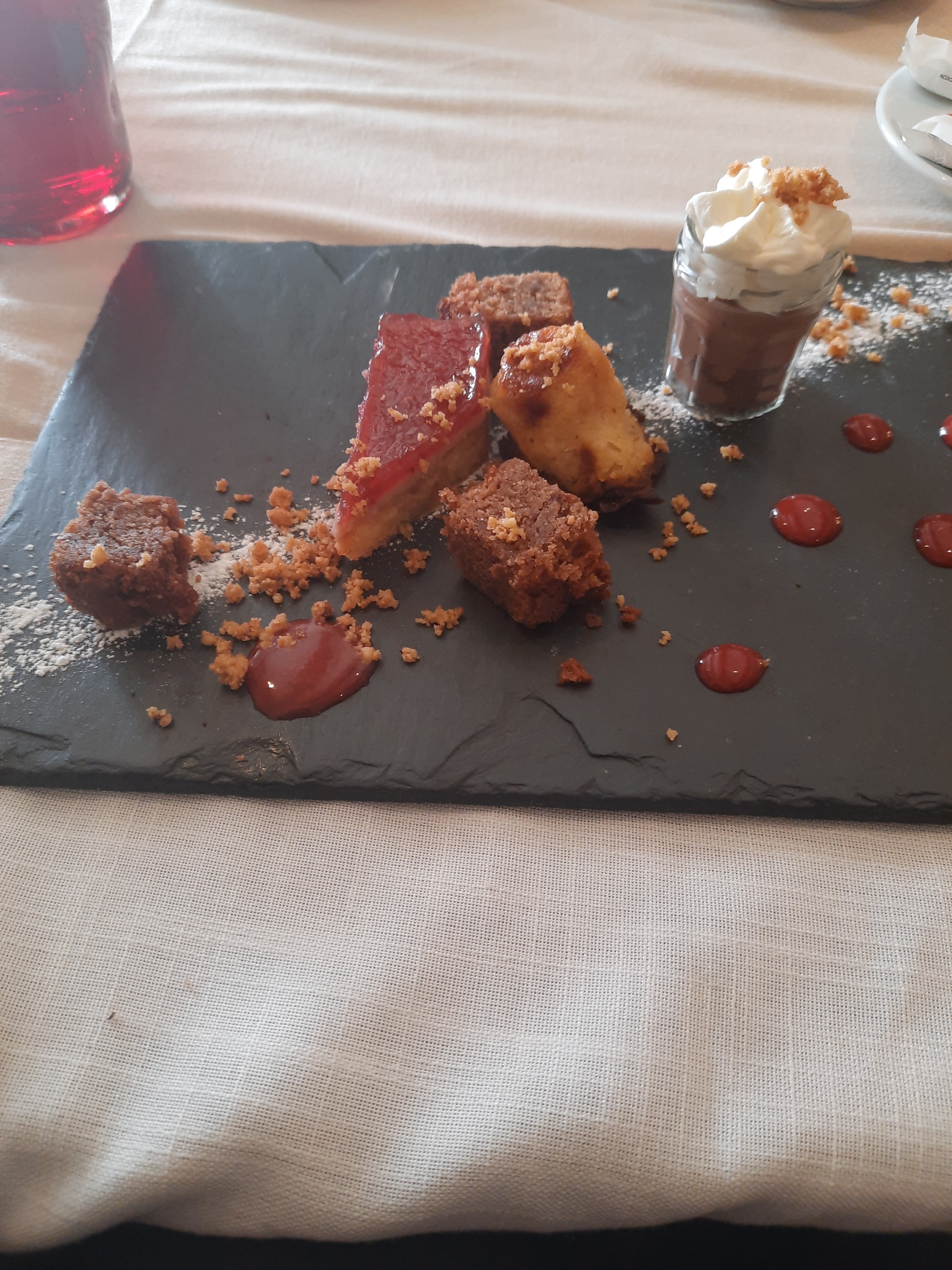 Super repas, des découvertes culinaires qui valent le détour, service impeccable et très agréable. Petit bemol pour la chambre que l'on as eu la 0 problème sur la porte de douche qui ne ferme que de l'extérieur.