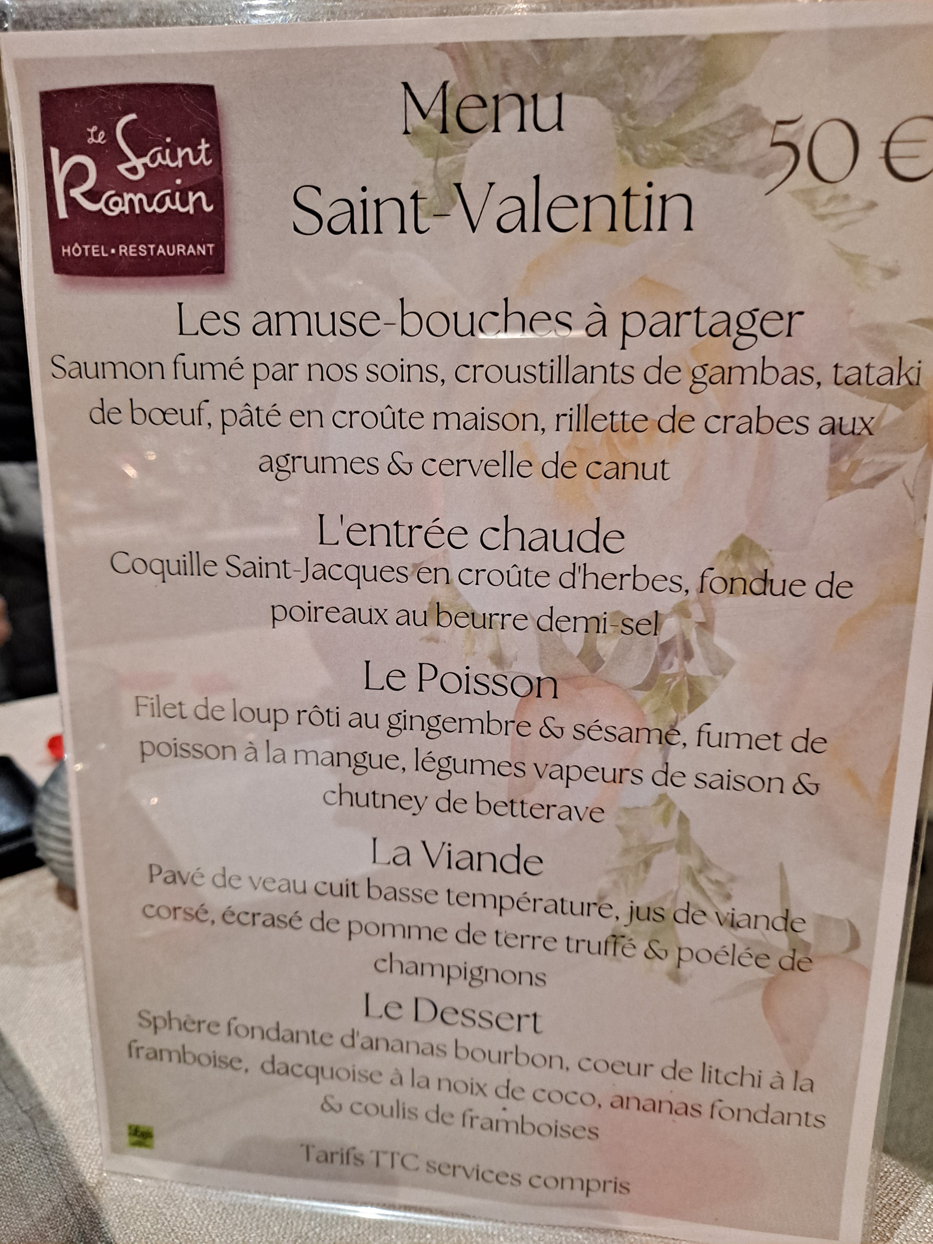 Tres bon repas Saint Valentin .très bon rapport qualité prix.