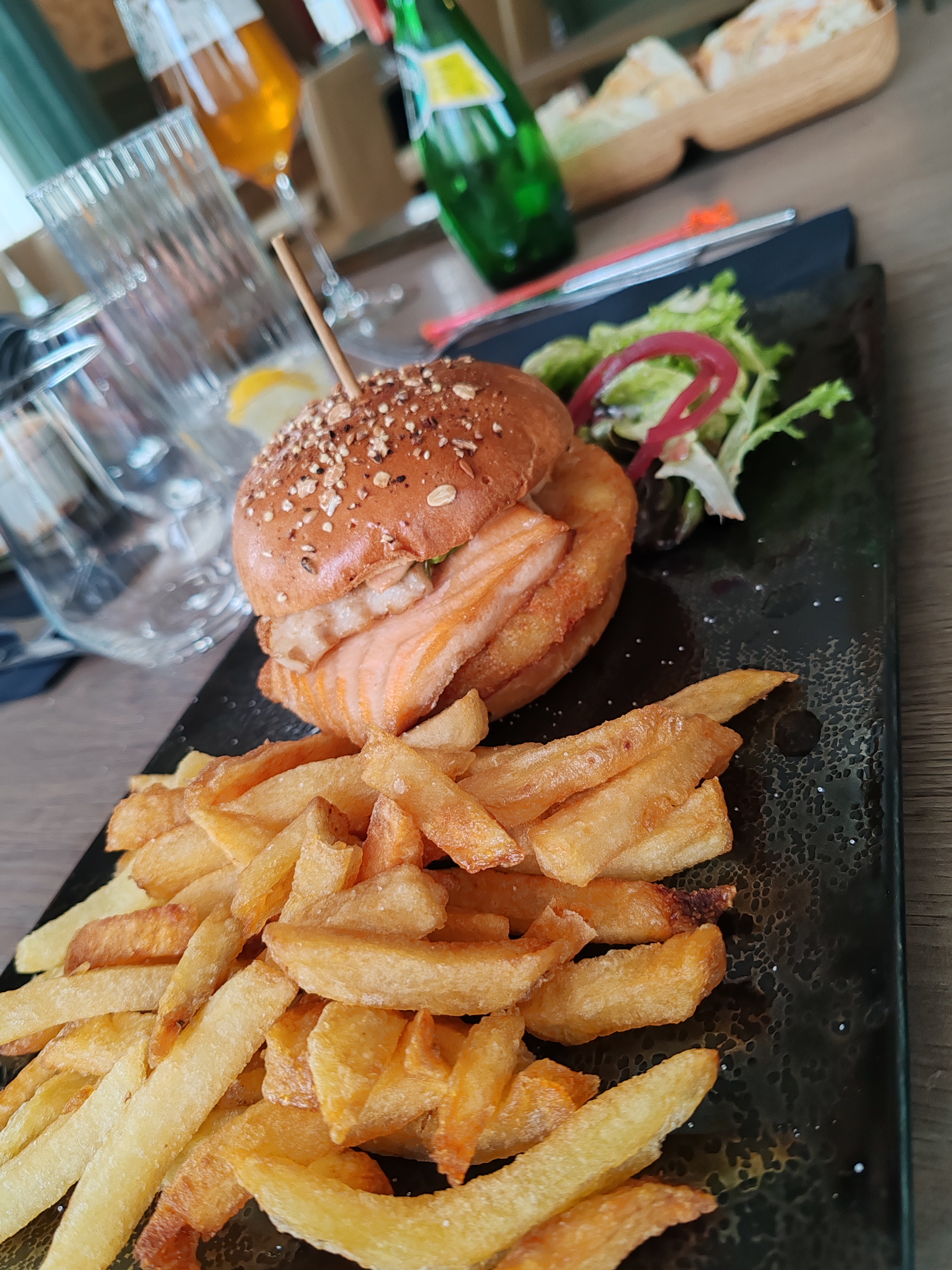 Leur burger de la mer est un régal ! Les profiteroles sont énormes et bonnes même si les choux et la chantilly ne sont pas faits maison. Les plats du jour sont abordables et variés. Le cadre esprit cave voûtée en rdc et très classe au premier sont très agréables.