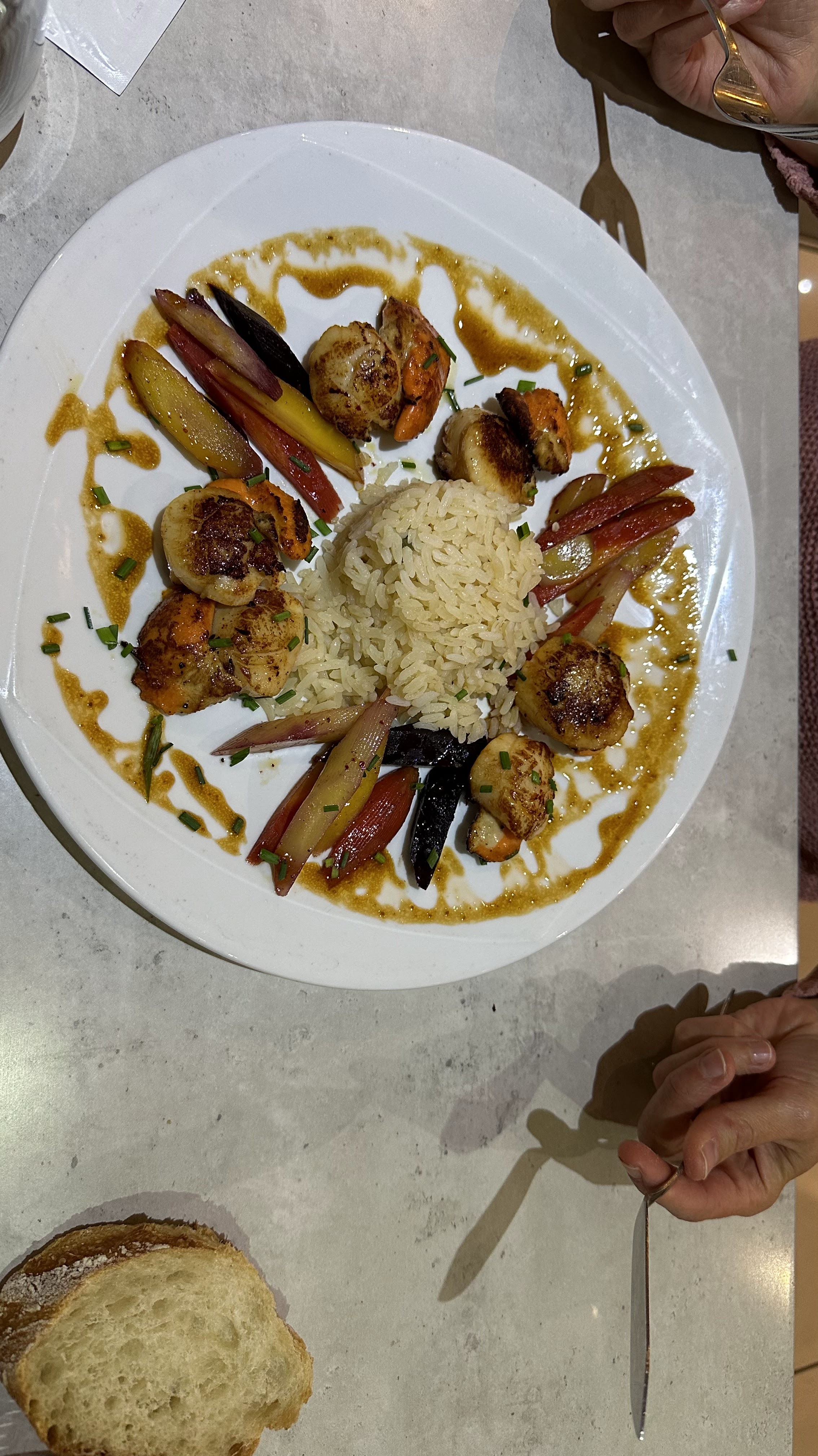 Déjeuner agréable, peu d'attente et pour 34€/personne feuilleté ris de veau, foi gras, dorade à l'espagnol, café gourmand et un Buzet. A refaire