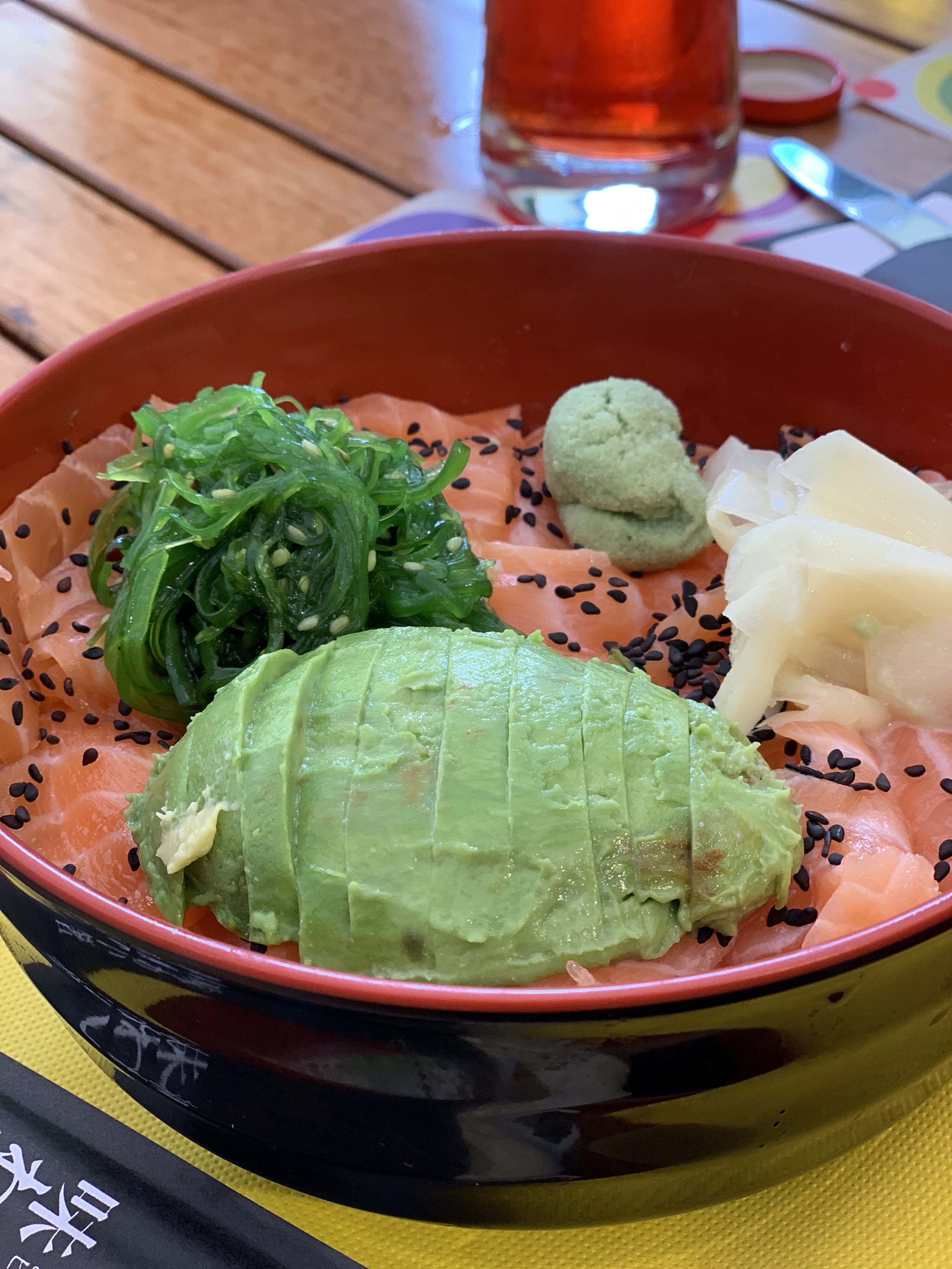 Menu de lancement rafraîchissant après trop de hamburgers partout ailleurs et un joli jardin pour que les enfants puissent jouer. Nous avons mangé des plats asiatiques merveilleux, en particulier le saumon chirashi. Les produits sont frais et de bonne qualité, tous réalisés par le chef local y compris les desserts.