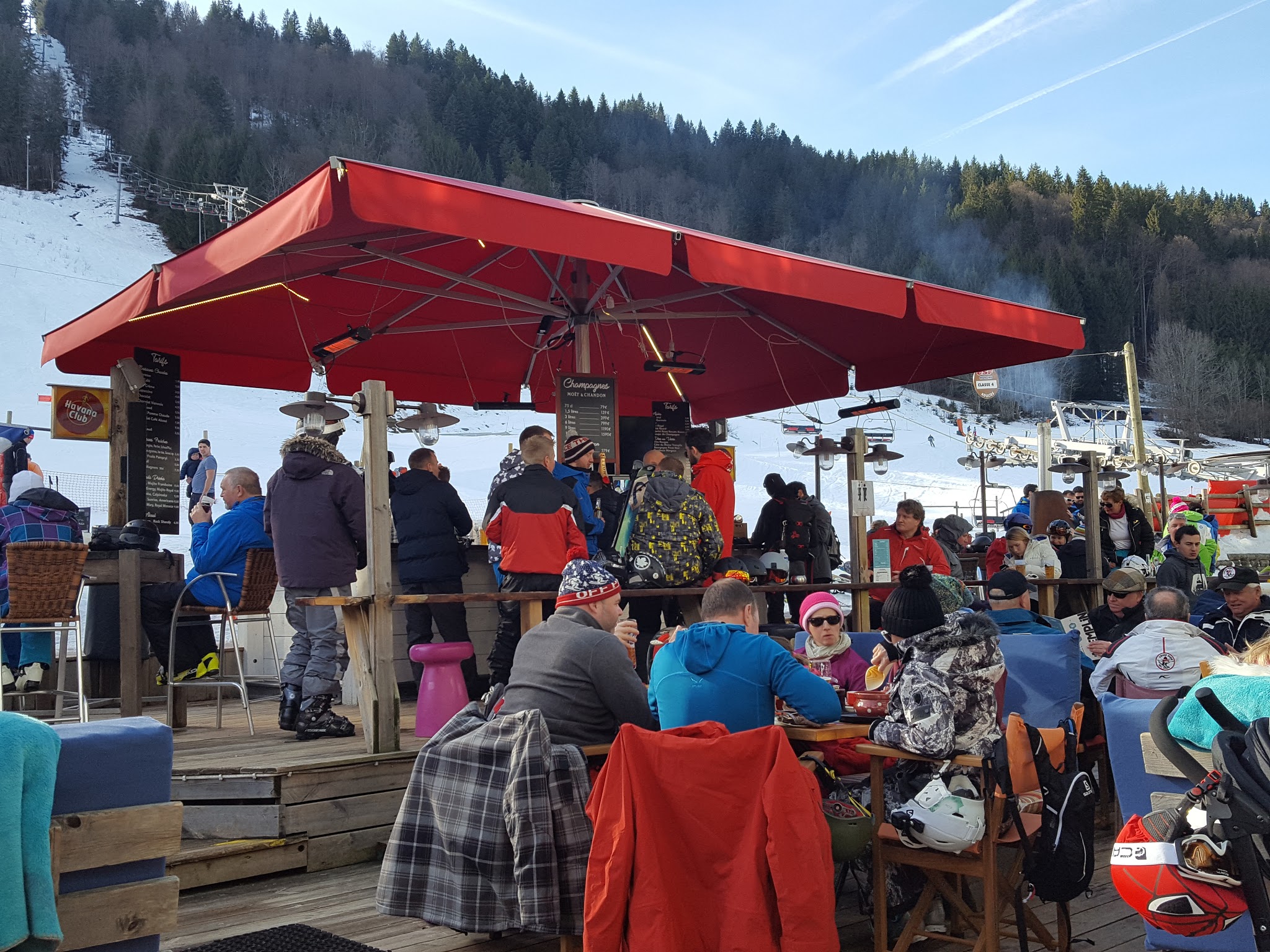 Très belle terrasse au pied des pistes du Pleney. Équipe sympa, animations, jeux d'enfants, plein de bonnes choses pour se détendre après une journée d'activité... Attention au volume sonore des dj qui couvre parfois toute conversation.