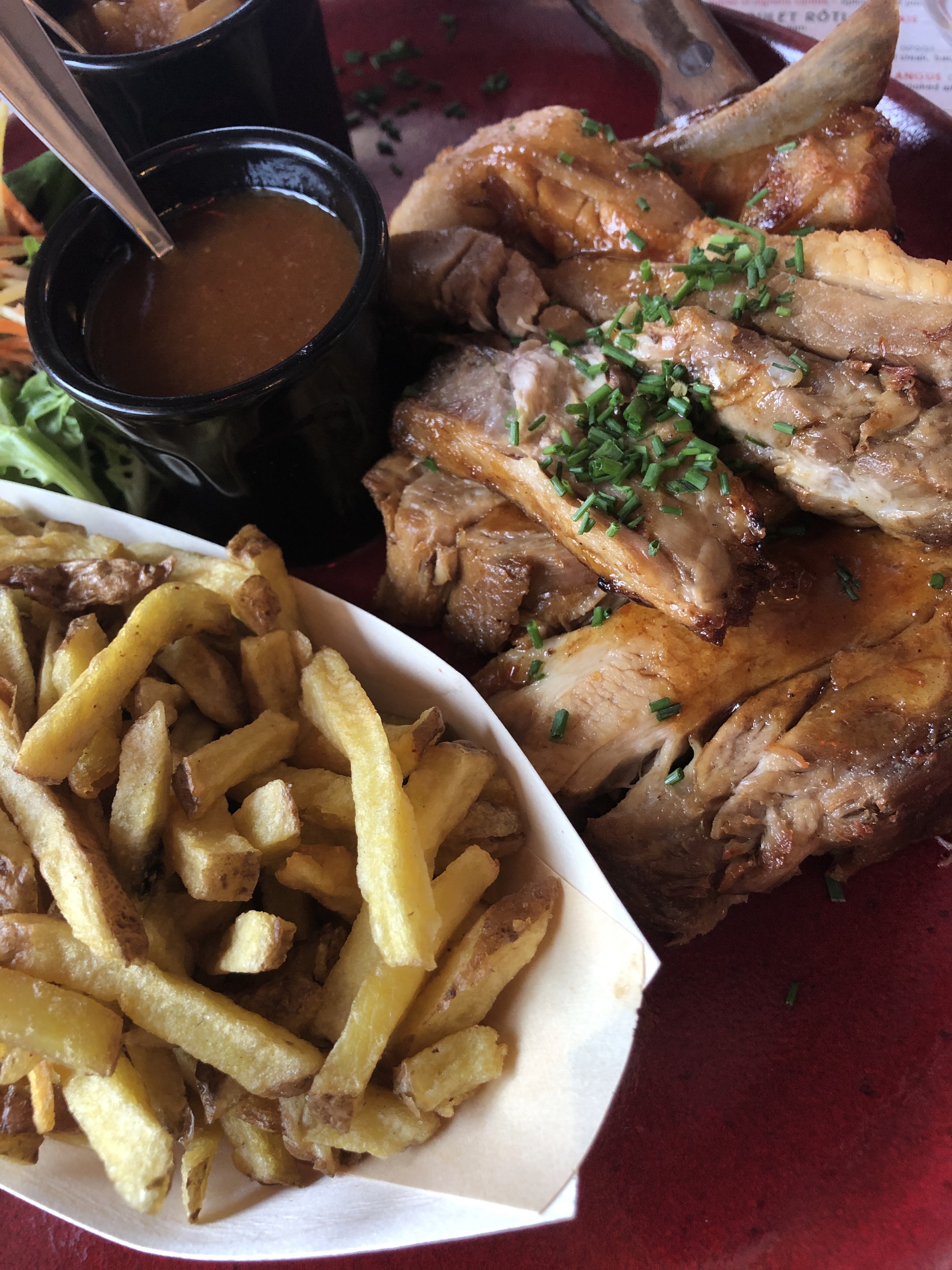 Nous avons seulement consommé des boissons. Endroit très agréable pour voir les vélos arriver en bas des pistes. La musique est bien. Il y a un espace jeu pour les enfants, quoi demander de plus.