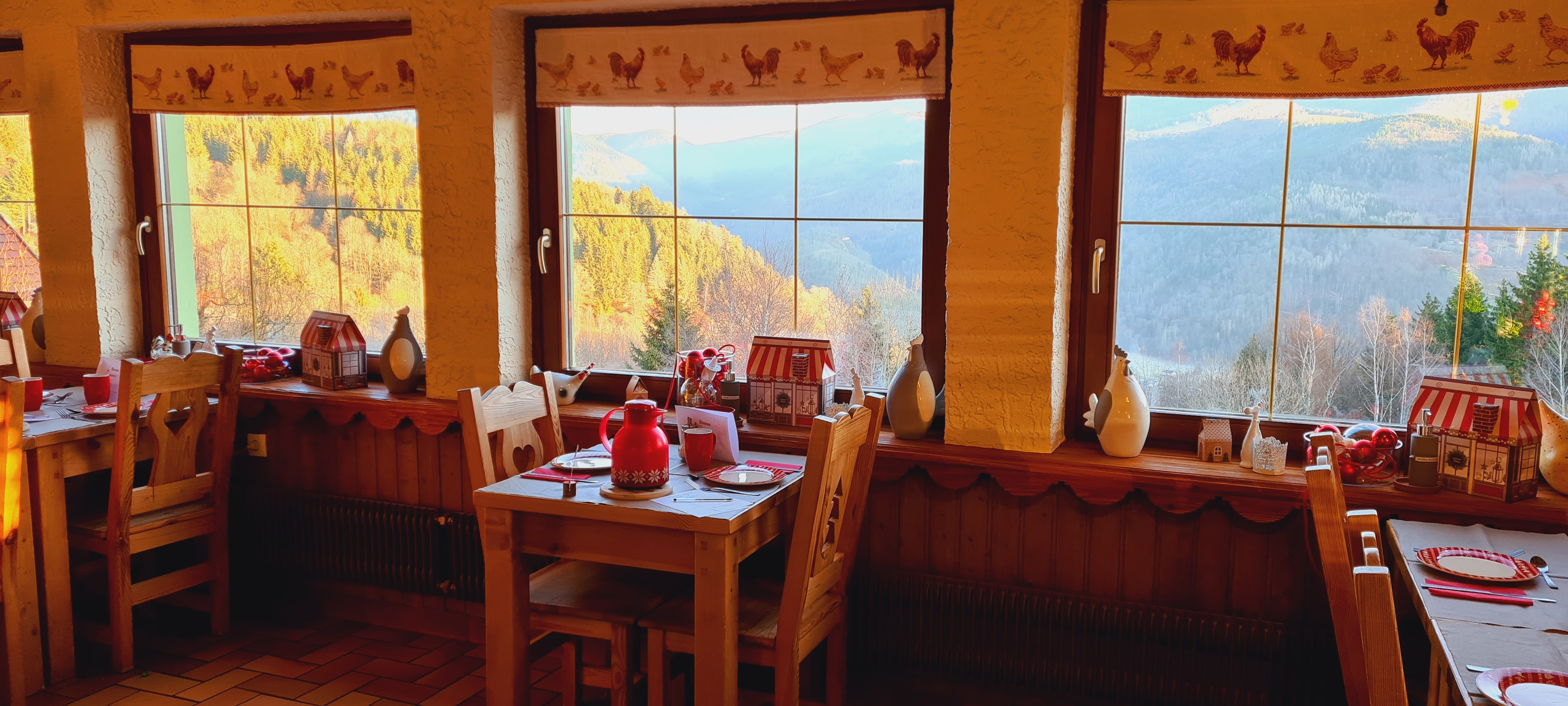 Excellente table. La décoration boisée et la vue plongeante sur la vallée du Wildenstein est magnifique. Ce qui rend le moment inoubliable.