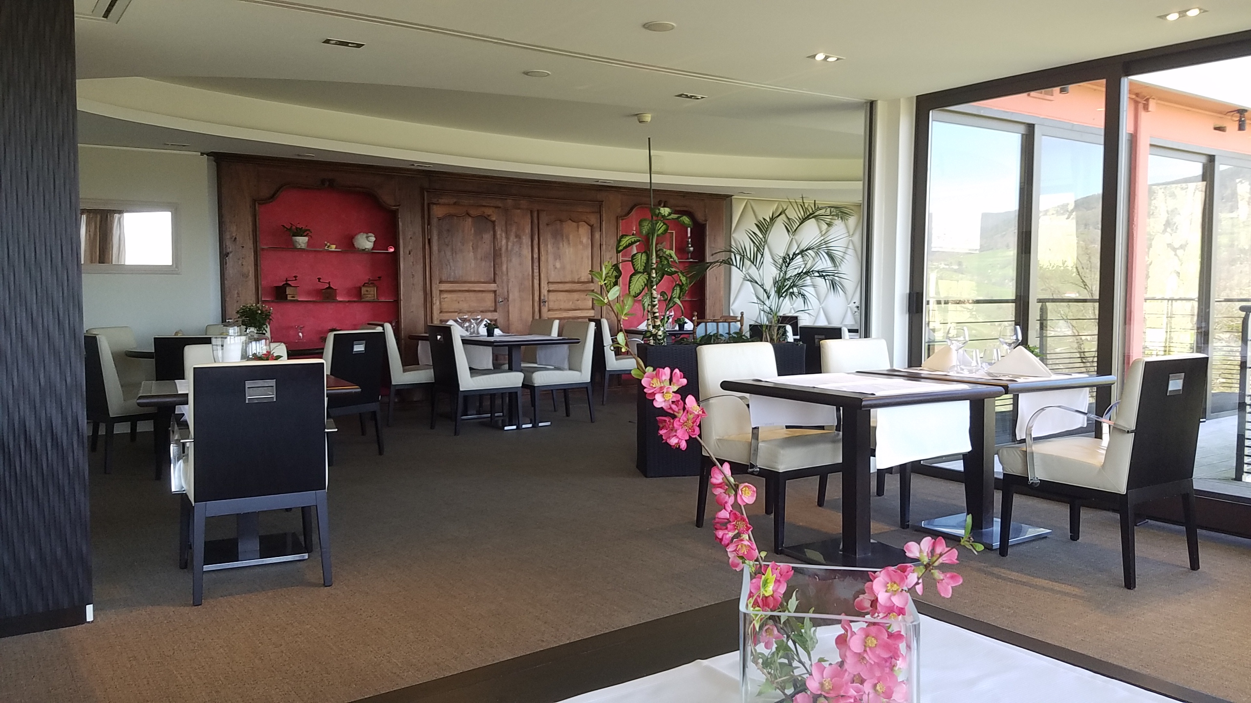 Un apéro en terrasse, un très bon repas dans une belle salle avec une vue apaisante sur la vallée.