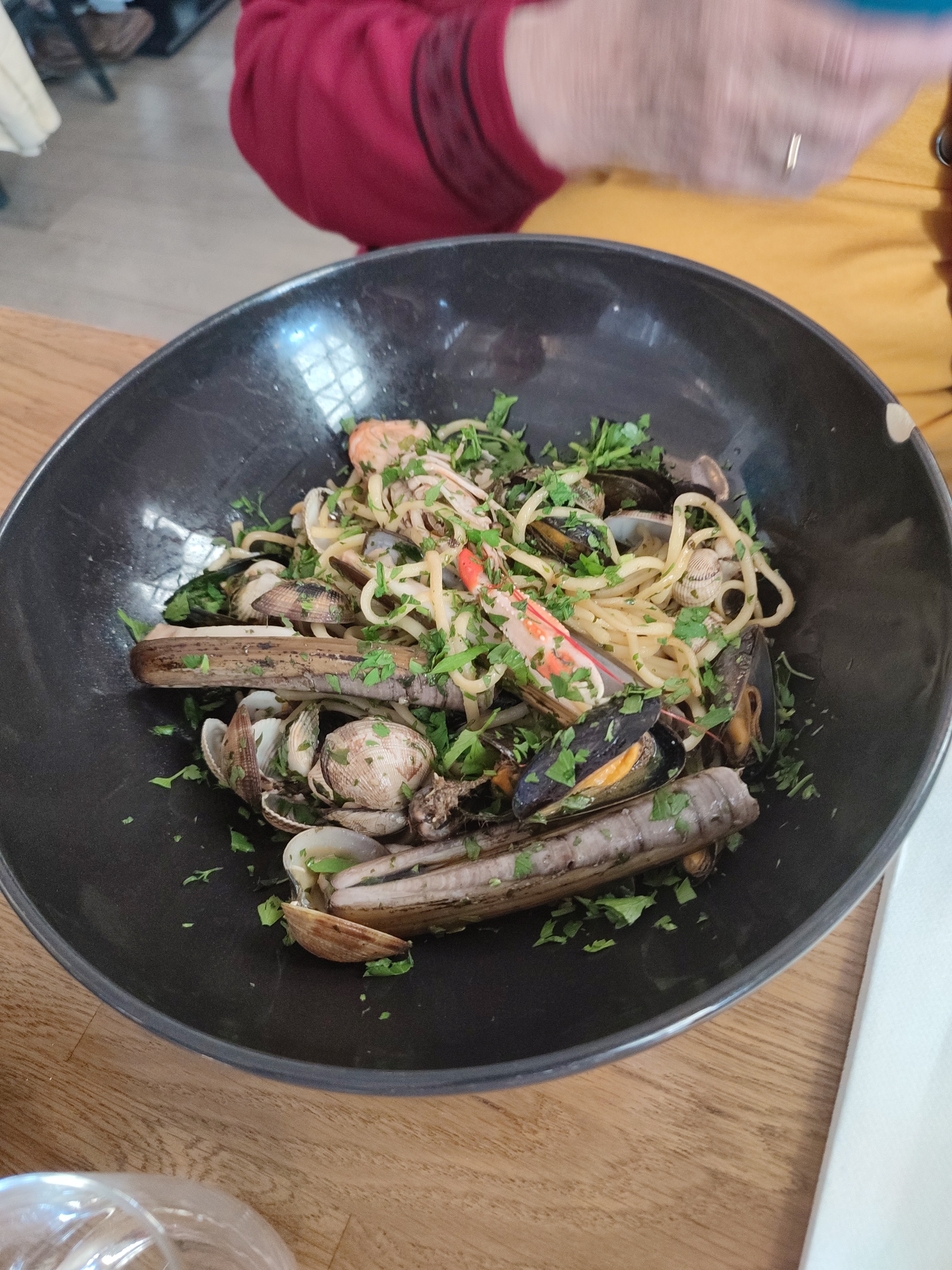 Super restaurant un peu à l'écart de la foule. J'aurai pu accorder un 5 étoiles si le petit serveur ne m'avait pas demandé si je voulais du pain. Plat servi des pennes aux 3 coquillages fruits de mer a la persillade. Comment veux tu faire pour sauver ton assiette 😂😂😂😂 sans pain. c'est de la mesquinerie
