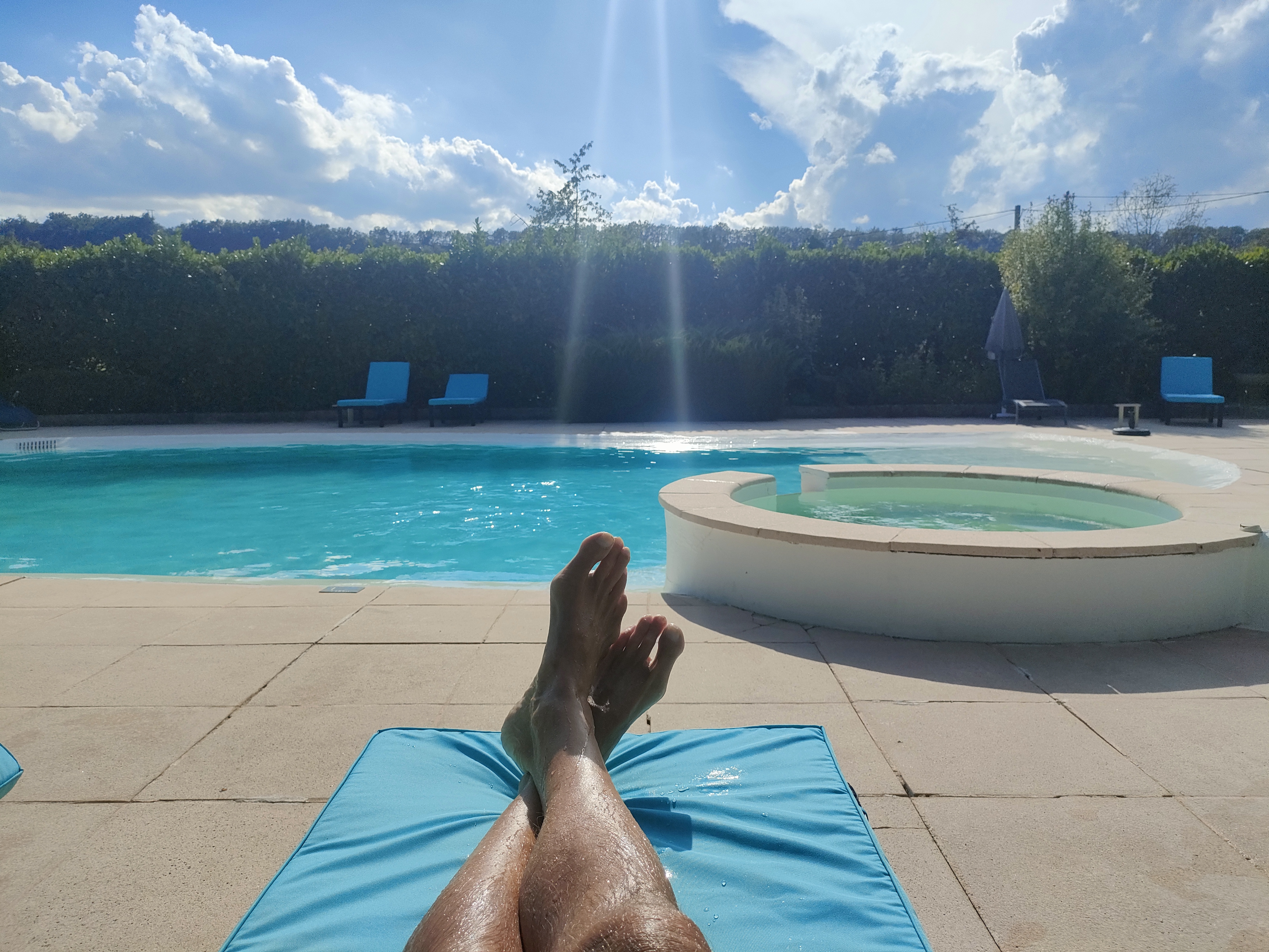 La piscine sympa. mais a 23 h on nous fait comprendre il faut aller se coucher . Pas de garage ni d' abri pour les motos. Bref nul