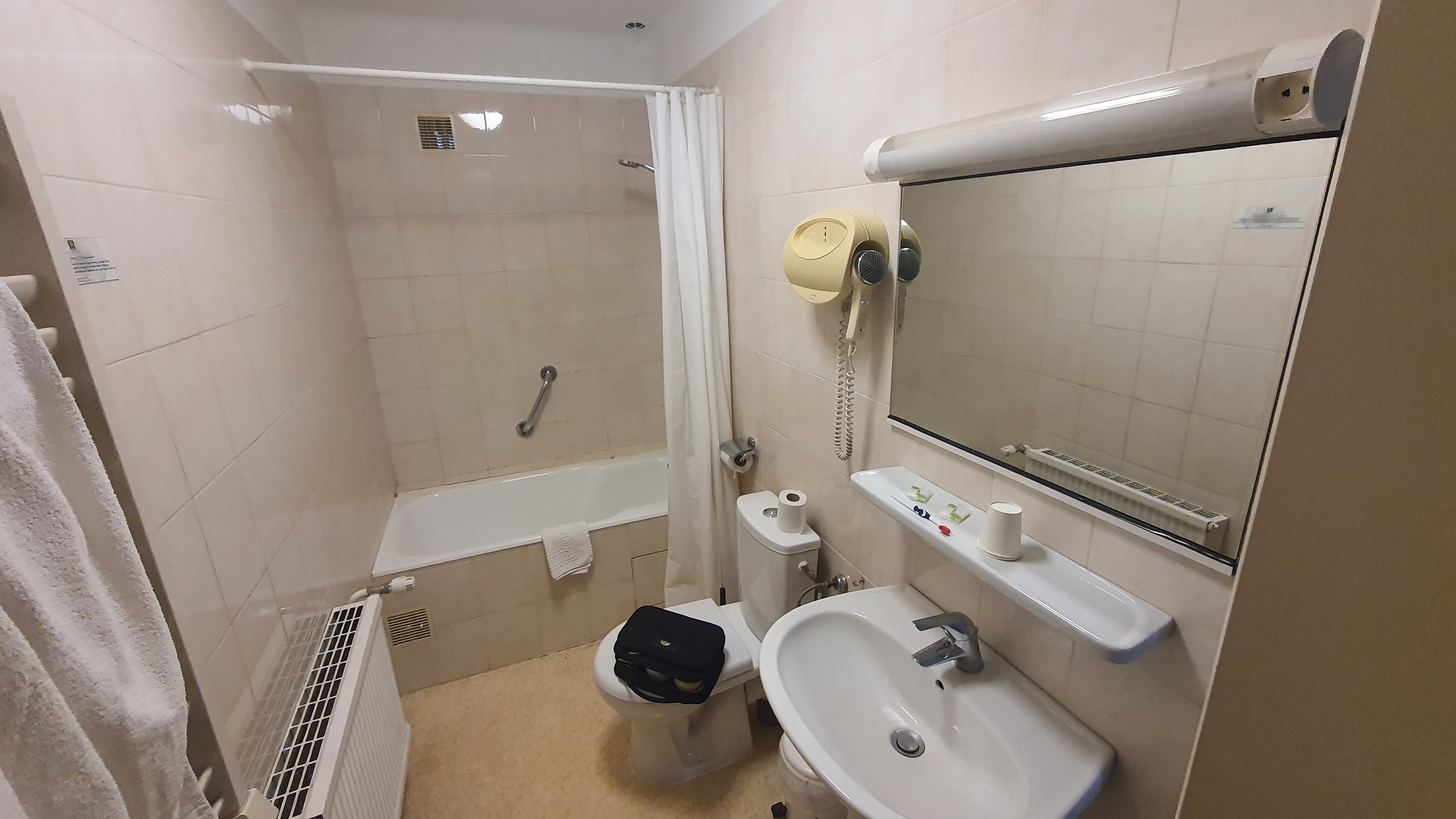 La salle de bains est un peu décrépie avec baignoire (je préfère les douches car pas besoin de lever les jambes pour rentrer dedans et sortir, je trouve cela un peu dangereux) mais la literie de bonne qualité. Ça résonne un peu dans les couloirs, mais sinon malgré la nationale pas loin peu de bruits de circulation. Le buffet petit-déjeuner est sympa, le restaurant aussi et l'accueil fort sympathique. J'y retournerai avec plaisir.