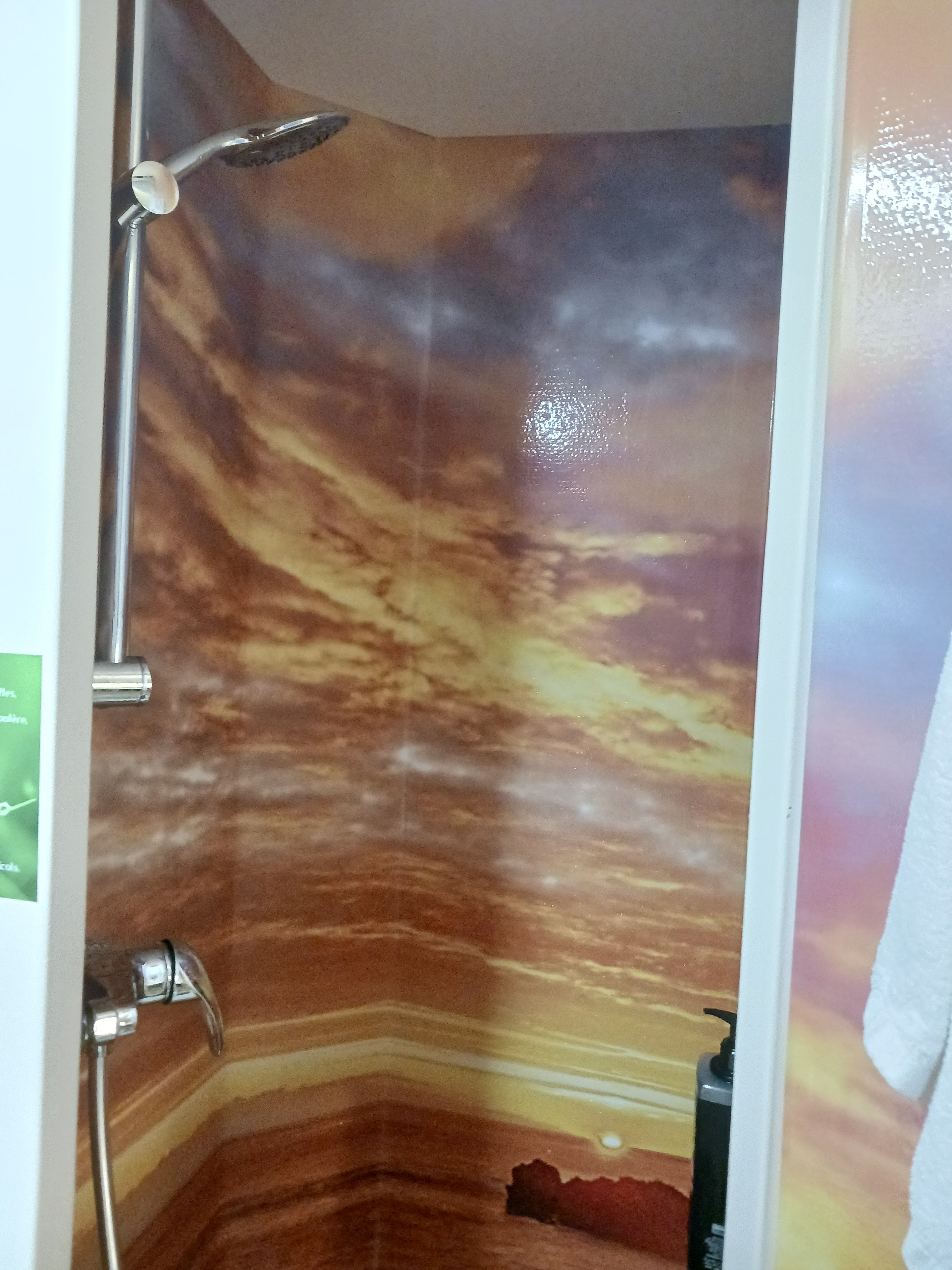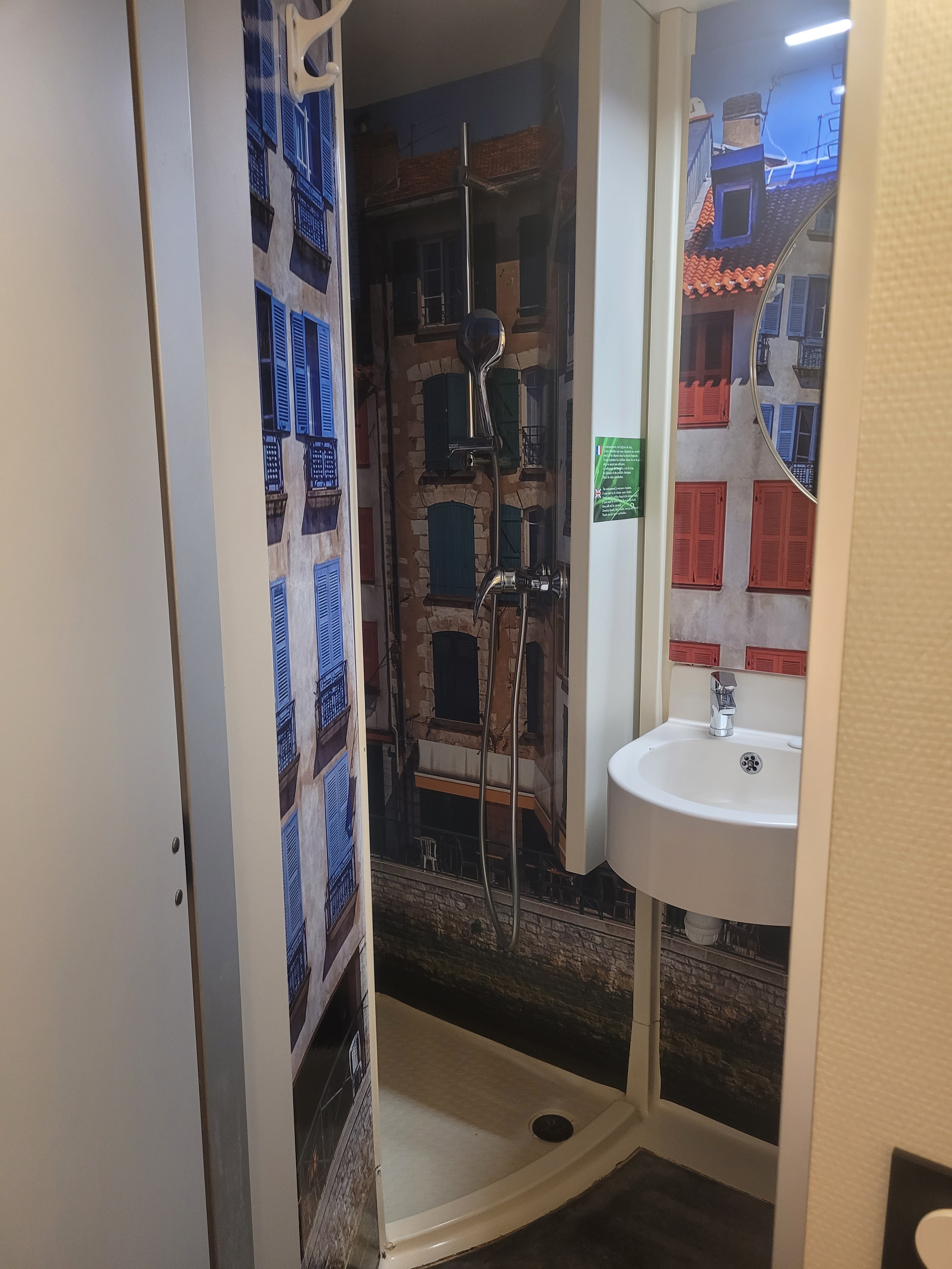 Juste de passage 1 nuit cabine de douche super bien décoré ont se croit au pays Basque pti dej copieux