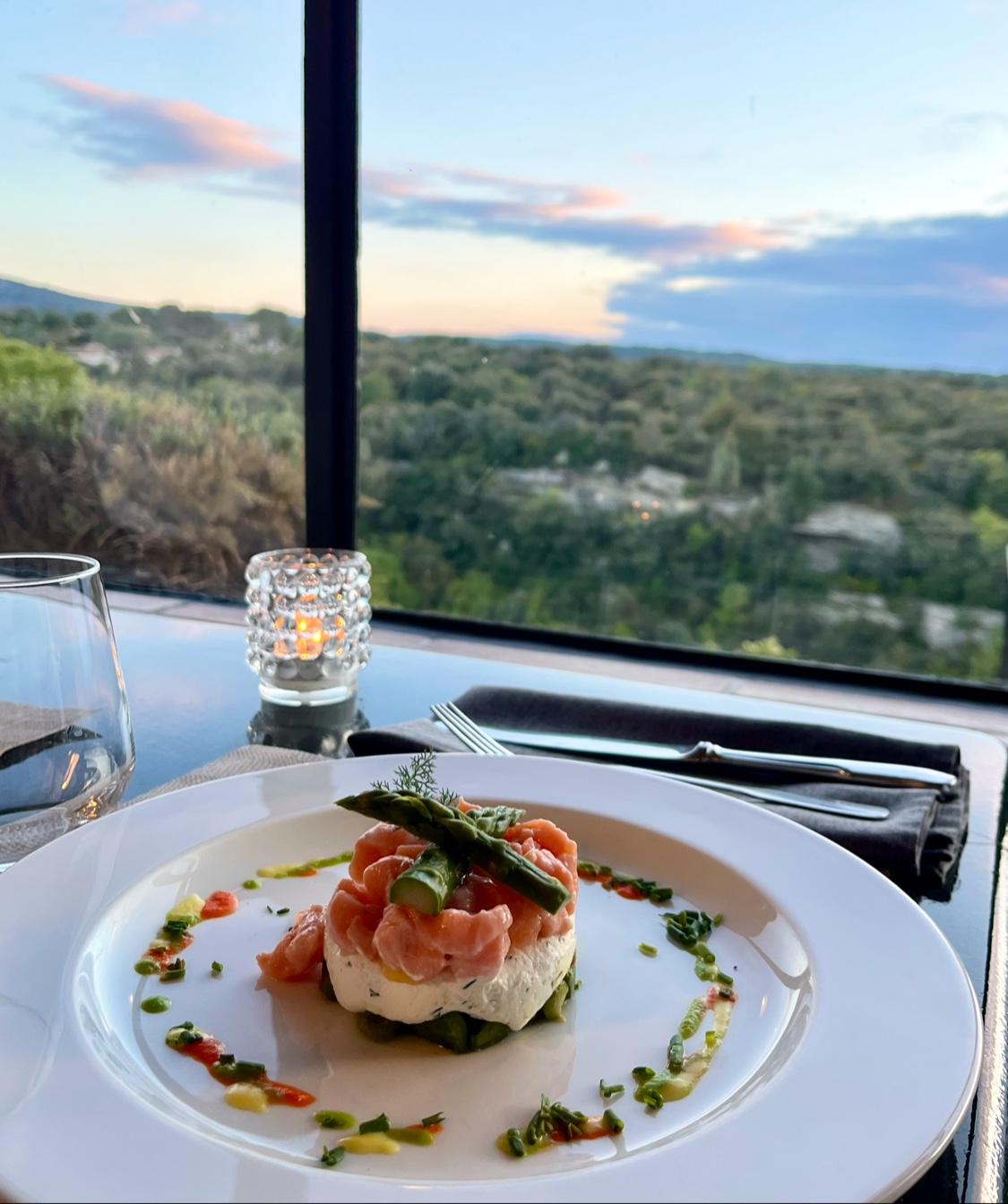 Rien à dire sur les chambres, ne sommes venus qu'au restaurant, également pas grand chose à dire sur notre expérience, de l'entrée au dessert tout était parfait, un peu plus de férocité sur l'entrée ''le tigre qui pleure'' ne m'aurait pas dérangé, souris d'agneau et son jus excellent, pas déçu par les desserts, le bémol qui n'a pas dérangé notre bon moment, dire au serveur, forte agréable, de faire attention à la propreté de ses bouts de phalanges. Merci pour cet agréable moment avec ce beau panorama, à la prochaine.