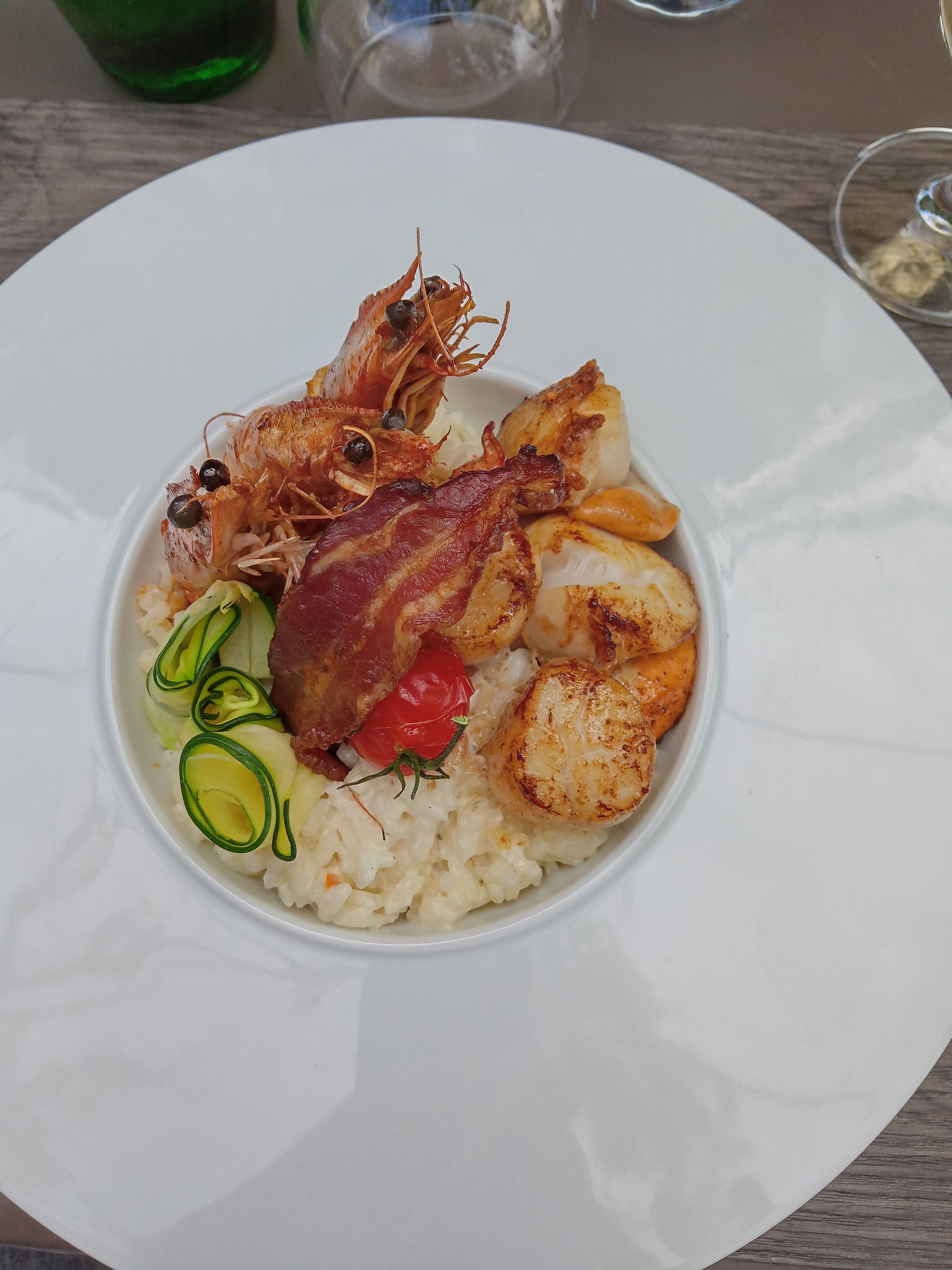 Une belle découverte, des plats raffinés. Un tartare tomates plein de surprises gustatives j'ai adoré mais la révélation pour moi fut le risotto Gambes saint Jacques que je qualifierai de divin, je recommande ! Le cadre est sympa ! Le service impeccable. Cela permet une halte qui favorise la découverte du village. Et permet d’apprécier les artisans du village tel que Camille Faïence, l'atelier de Séréna....