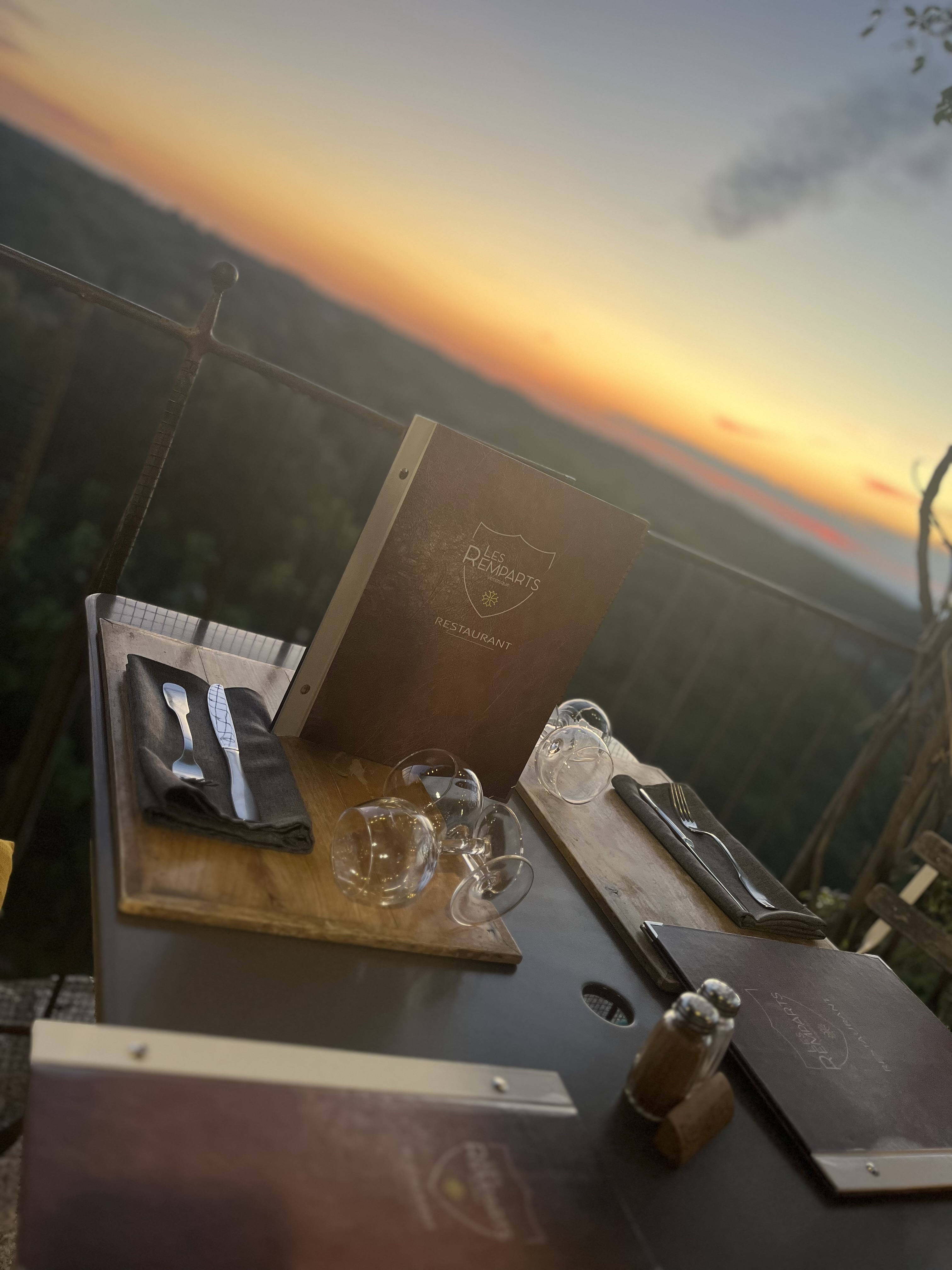 Chaque été, nous prenons un plaisir énorme à réserver une soirée au restaurant des remparts lors de nos vacances. Que ce soit pour une soirée en amoureux ou en famille, le cadre enchanteur et les plats exquis sauront ravir même les plus sceptiques. Le coucher de soleil en terrasse n'a d'égale que la tarte tatin à la tomate, et les menus, assez onéreux, sont vraiment très goûteux et inspirants. Bref, il FAUT y aller :)