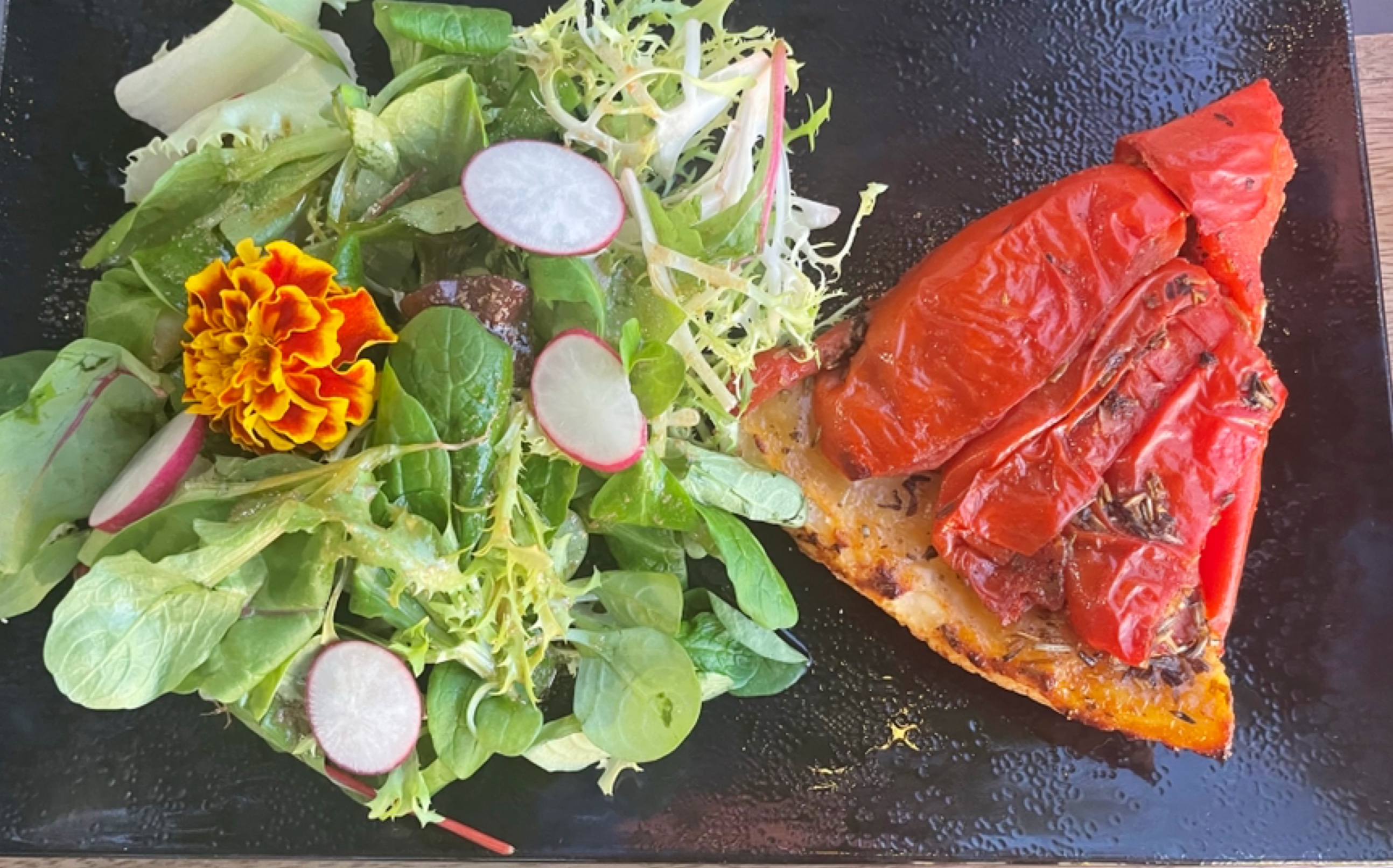 Nous avons mangé une grande salade complète avec une petite part de camembert et une petite crème brulée lavande pour 14 €. c'était bon et copieux. merci ! christian
