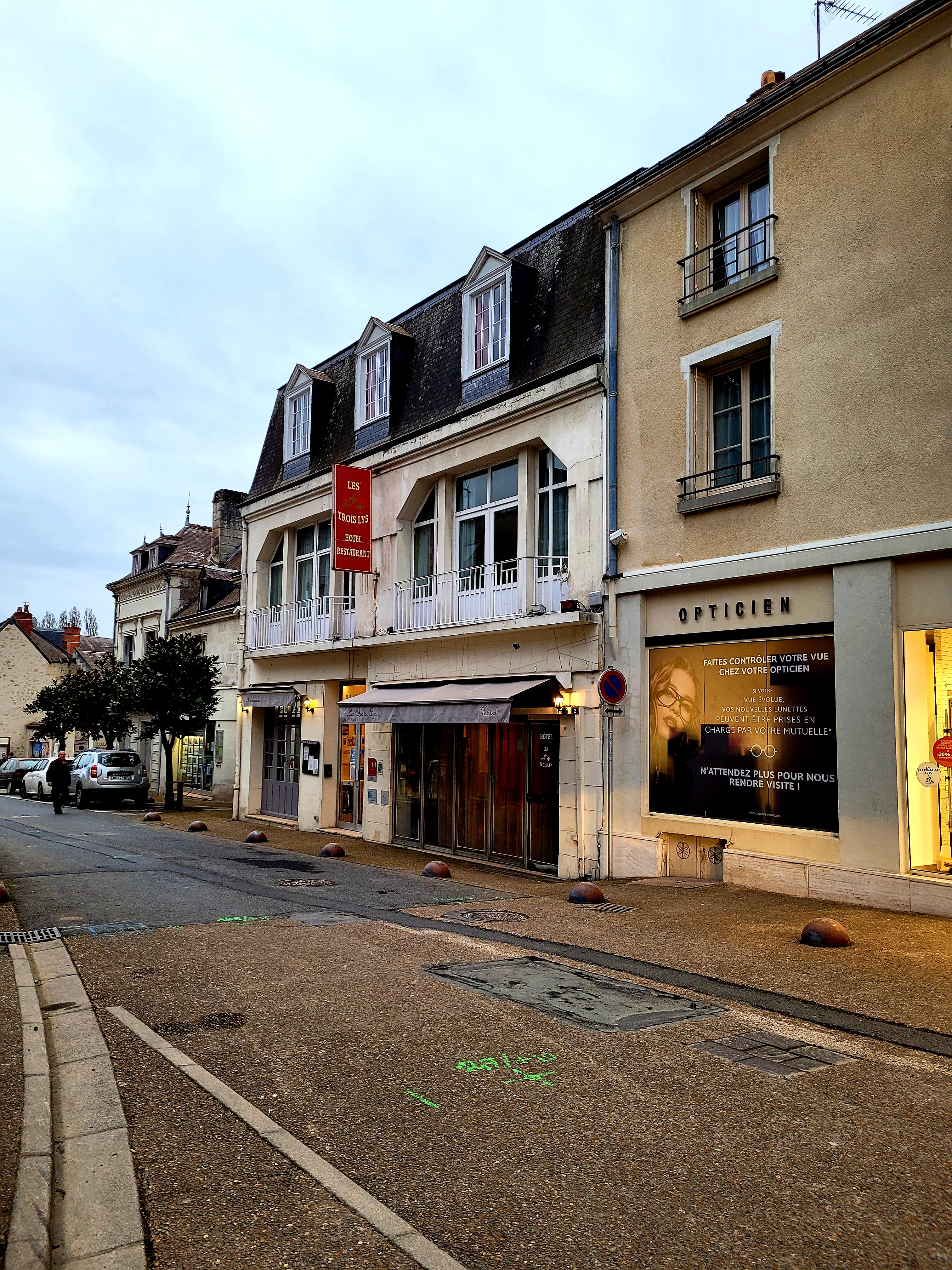 Pour la chambre hygiène à revoir: poils et cheveux dans les toilettes, papier bonbon sur la chaise, traces de dégoulinures marron sur le mur.couverture défraîchie.Douche à l’évacuation bouchée etc.Aménagement de la chambre à revoir notamment la tv positionnée sur un mur parallèle au lit. A la base je ne comptais pas la regarder mais bon étant donné qu’à 23h20 tous les restaurants et bars ferment et refusent de servir un verre et disent c’est Azay-le-rideau.il faut bien s’occuper. Évitez également le petit-déjeuner.aucune organisation: les viennoiseries sont servies au rythme des allers-retour de la serveuse entre l hôtel et la boulangère d’en face. Idem pour le café qui est au bistrot d’en face récupéré dans un pichet et mis dans un percolateur.(Je n ai pas pu en boire trop d’attente.)Conséquence pas d’autre personnel pour gérer la salle qui se remplie et réapprovisionner.Rstt pas d’assiettes pas de plateau, les clients doivent débarrasser eux-mêmes.La réponse de la gérante on a eu beaucoup de monde. Scandaleux sans parler de l hygiène: couverts sales rangés dans des bacs en plastiques également sales et collants.