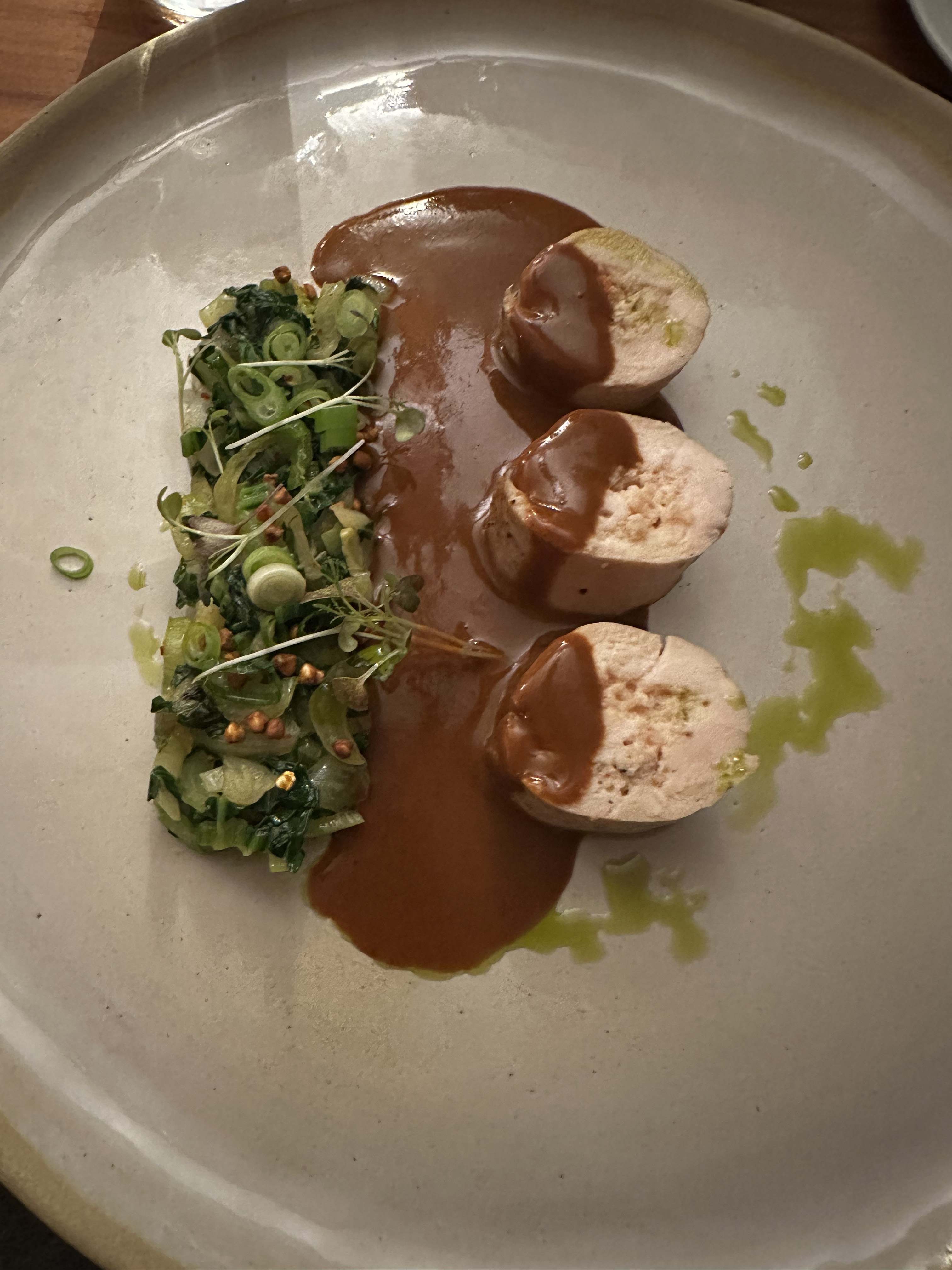 Je ne trouve rien de mal à ça, tout est là, n'est-ce pas ? Les matériaux de la salle à manger sont très beaux et de grande qualité, le service et l'accueil sont super sympas. Le jardin est très beau. La pièce est de bonne taille, mais les matériaux sont ordinaires. La nourriture est correcte, mais c'est dommage qu'on ne puisse pas manger à la carte, surtout si on n'aime pas le canard.