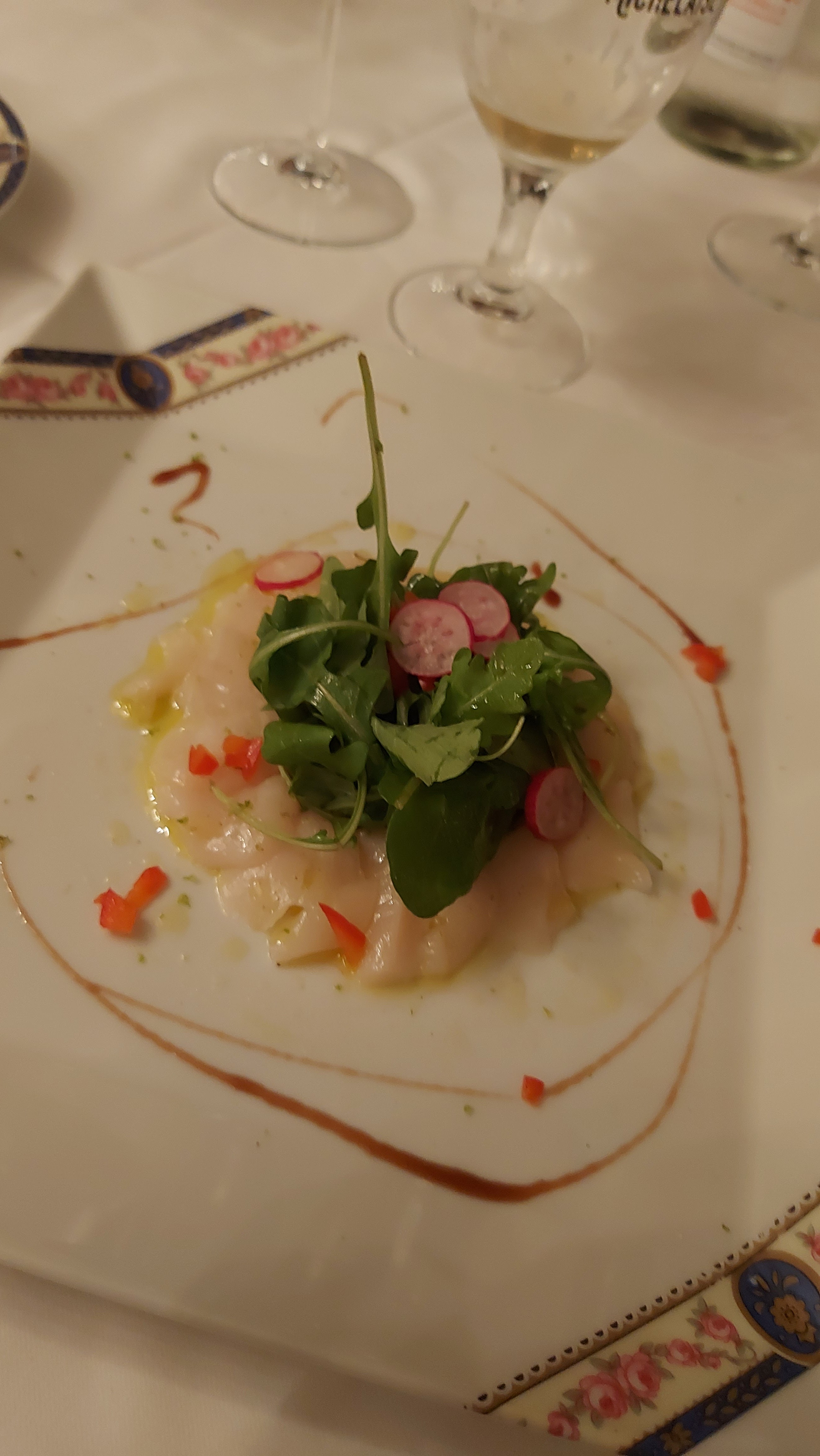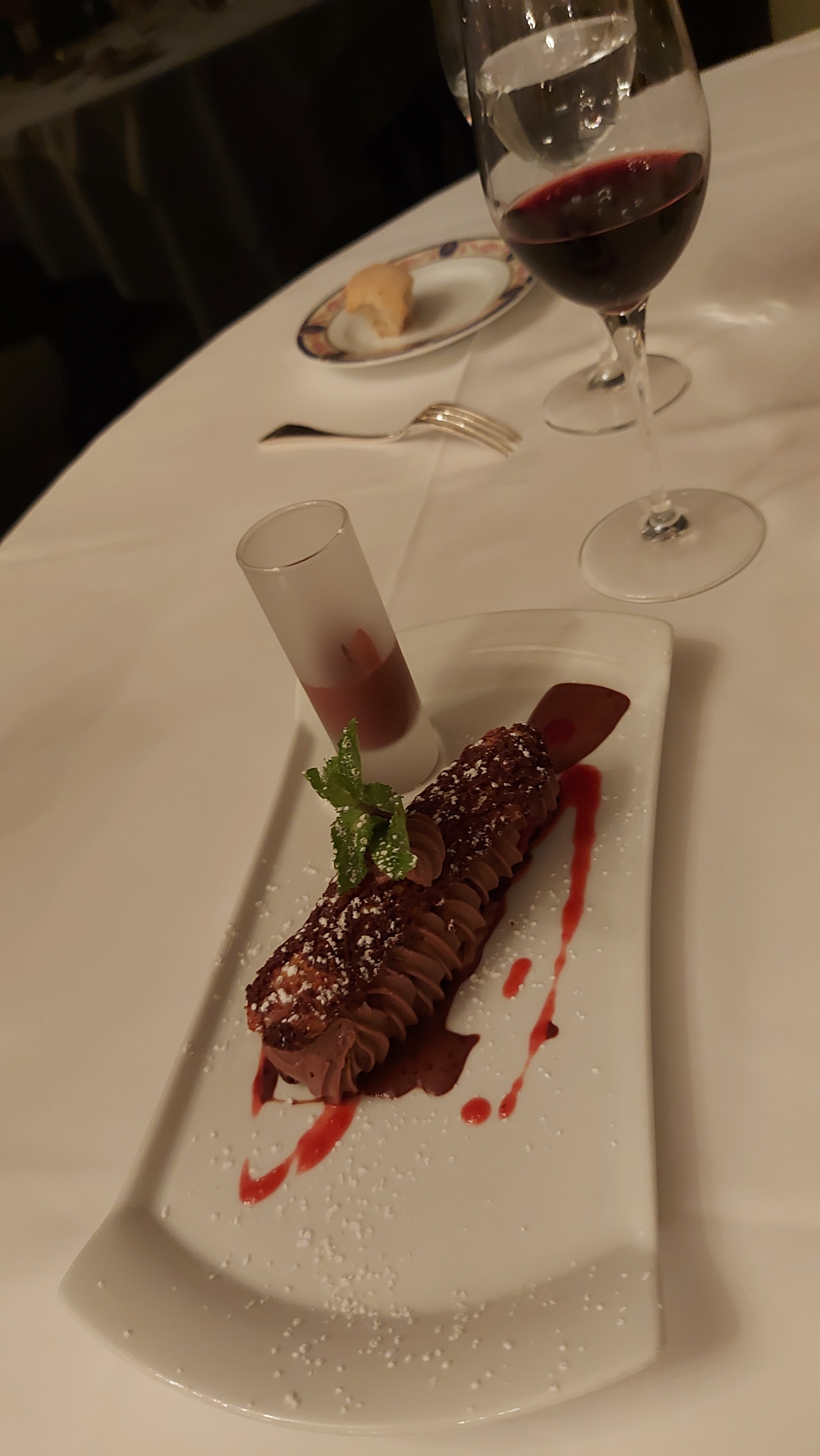 Un merveilleux dîner. Les plats sont savoureux pleins de saveurs et de finesse . Les desserts prestigieux . Tous les plats sont présentés dans de la jolie porcelaine , décorés avec minutie , beaucoup de poésie et de savoir faire . Un très grand chef . Merci d avoir sublimé notre dîner en amoureux face mer dont je rêvais dans un cadre idyllique chargé d histoire. Je recommande vivement félicitations à ce jeune couple pour ce bel établissement.