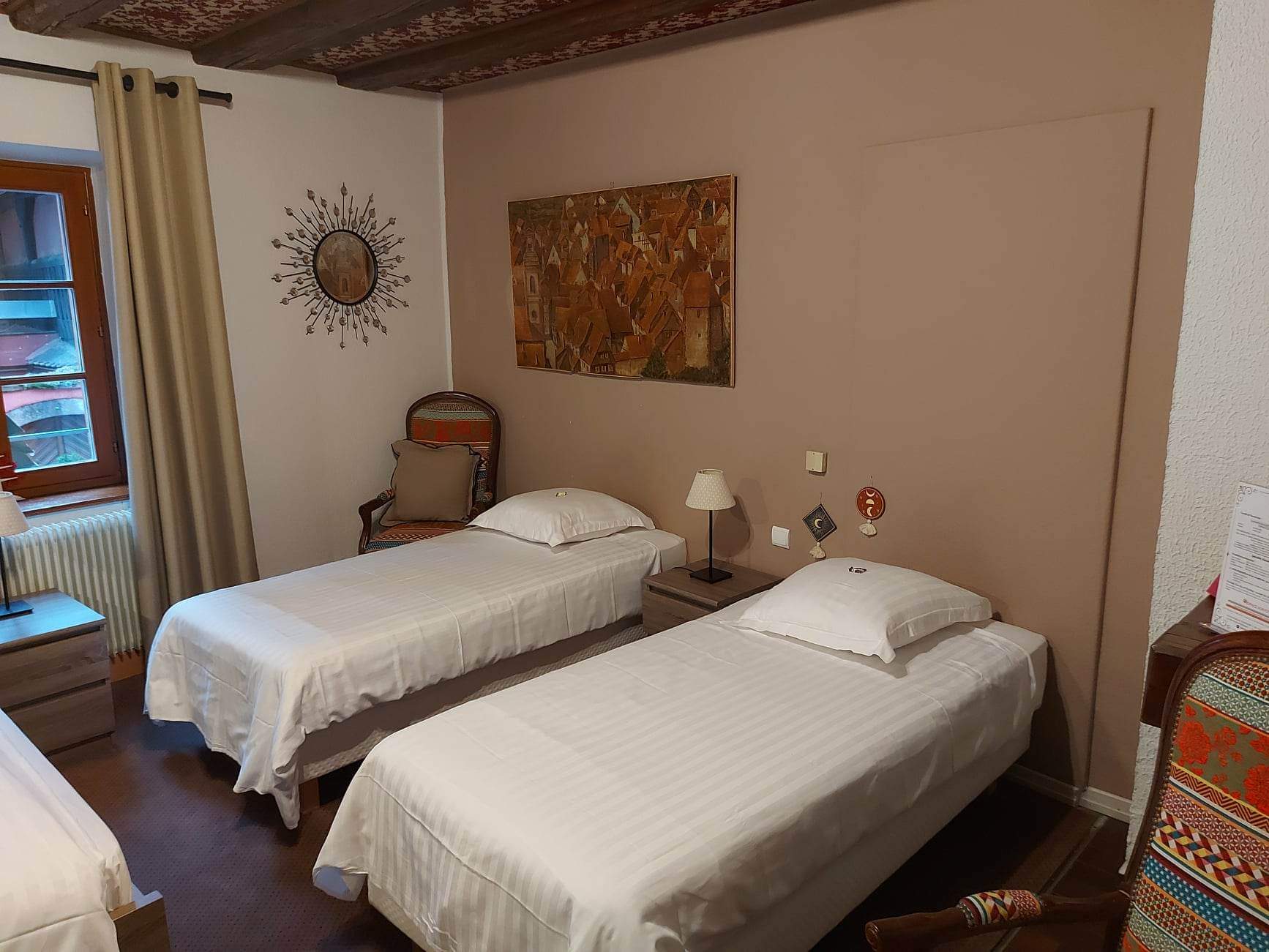 Belle bâtisse, belle deco et accueil agréable. Check in rapide. La chambre économique sous les toits de bonne taille avec baignoire dans la salle de bain. Belle vue sur les maisons typiques de Riquewihr. Bonne adresse avec un prix raisonnable.