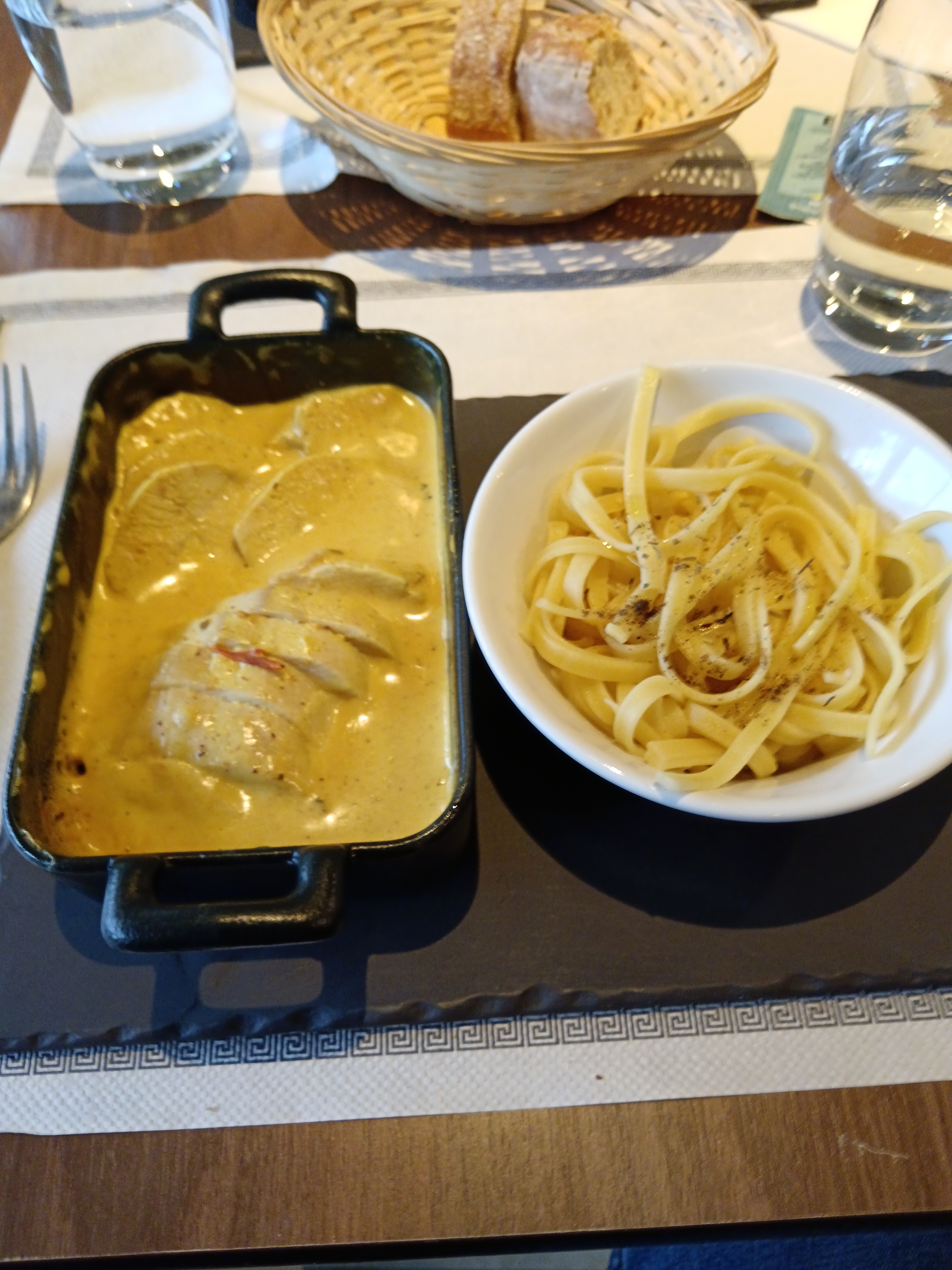 Menu du dimanche soir.. À éviter.. Très déçue tagliatelles très sèches, pas de parmesan ni gruyère râpé, le pain sec.. Très déçue pour ce repas à éviter de dîner ici le dimanche soir..
