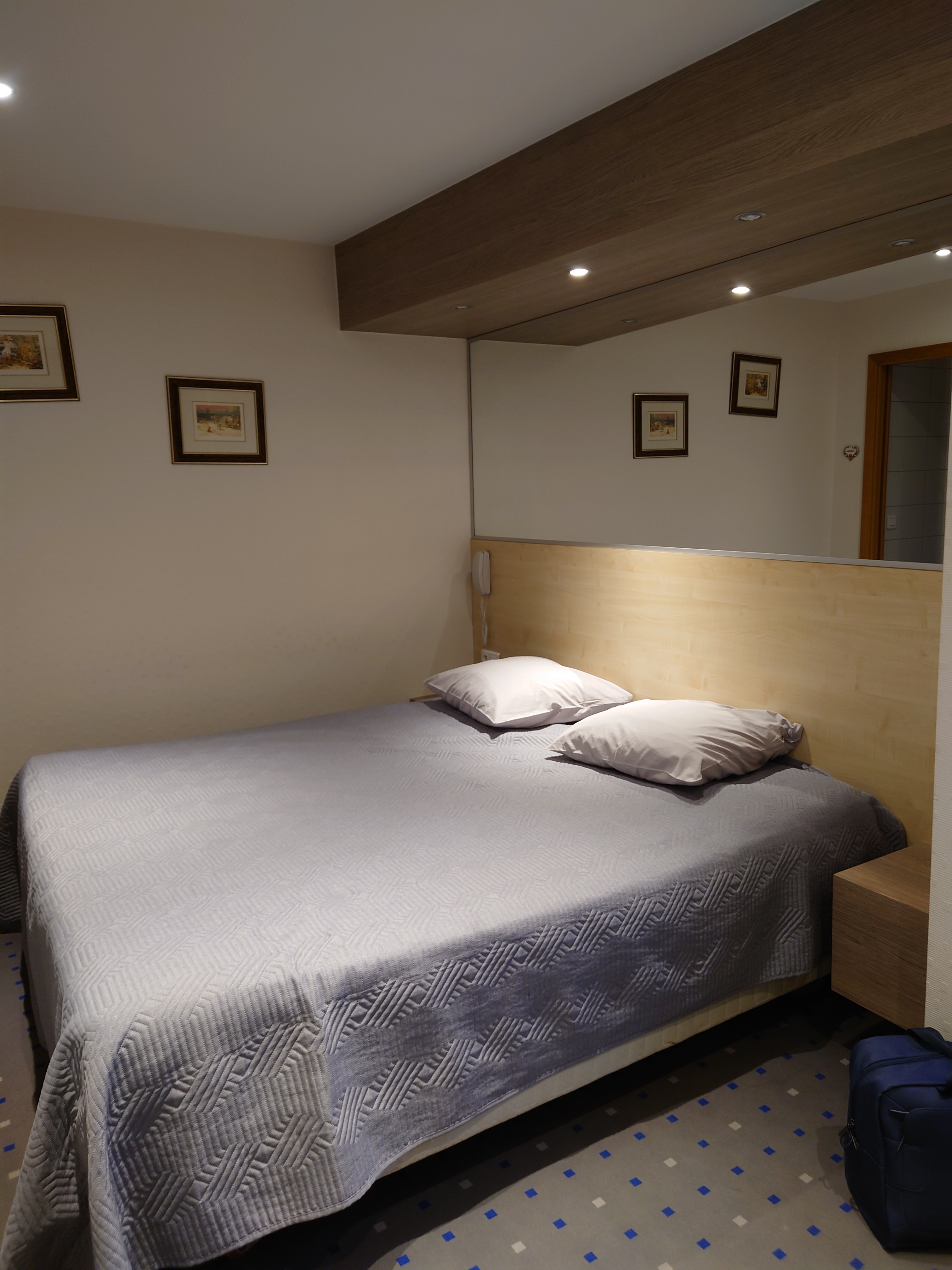 Nous sommes venus pour une nuit et nous avons trouvé l’accueil très chaleureux et professionnel, le petit déjeuner était très bon, c’est un super bon point. Pour ce qui est de la chambre, le décor fait un peu vieux mais cela n’est pas dérangeant, le lit est immense ce qui est génial pour ne pas avoir à parler à sa femme ! La douche est très grande et il y a la tv, parfait pour une nuit ! Le seul bémol est que les chambres sont insonorisés et on entend beaucoup les voisins ou les gens dans le couloir. On reviendra avec grand plaisir !