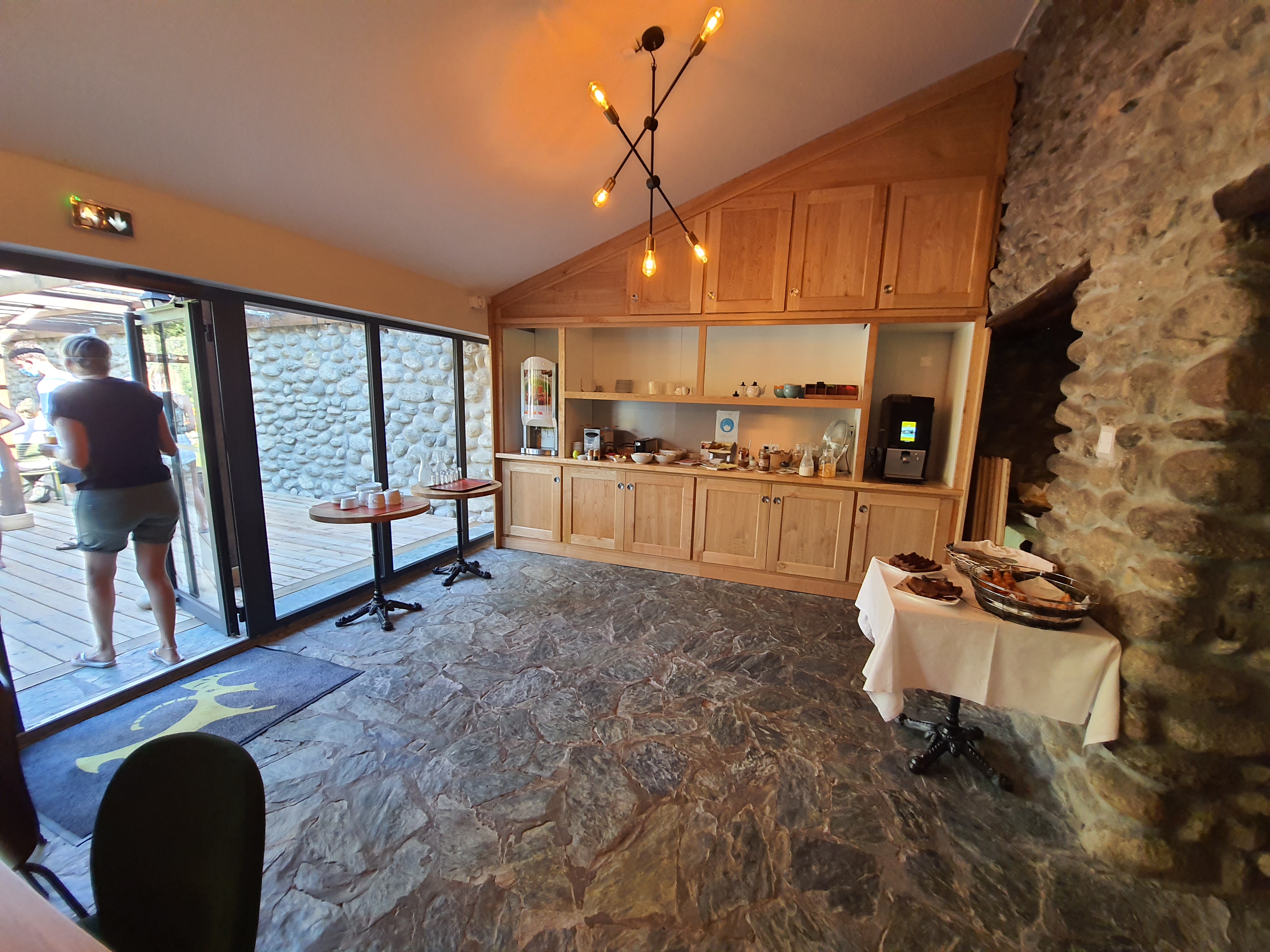 Un hôtel en pierre juste magnifique avec un petit plus pour la rivière juste à côté et la piscine très spacieuse vue montagne. Bonne literie et chambre propre. Une déco intérieure de très bon goût. Buffet de petit déjeuner correct. Personnel sympathique. Les petits moins: Légère odeur désagréable dans les couloirs. Manque d'equipement dans la chambre :ex produits d accueil