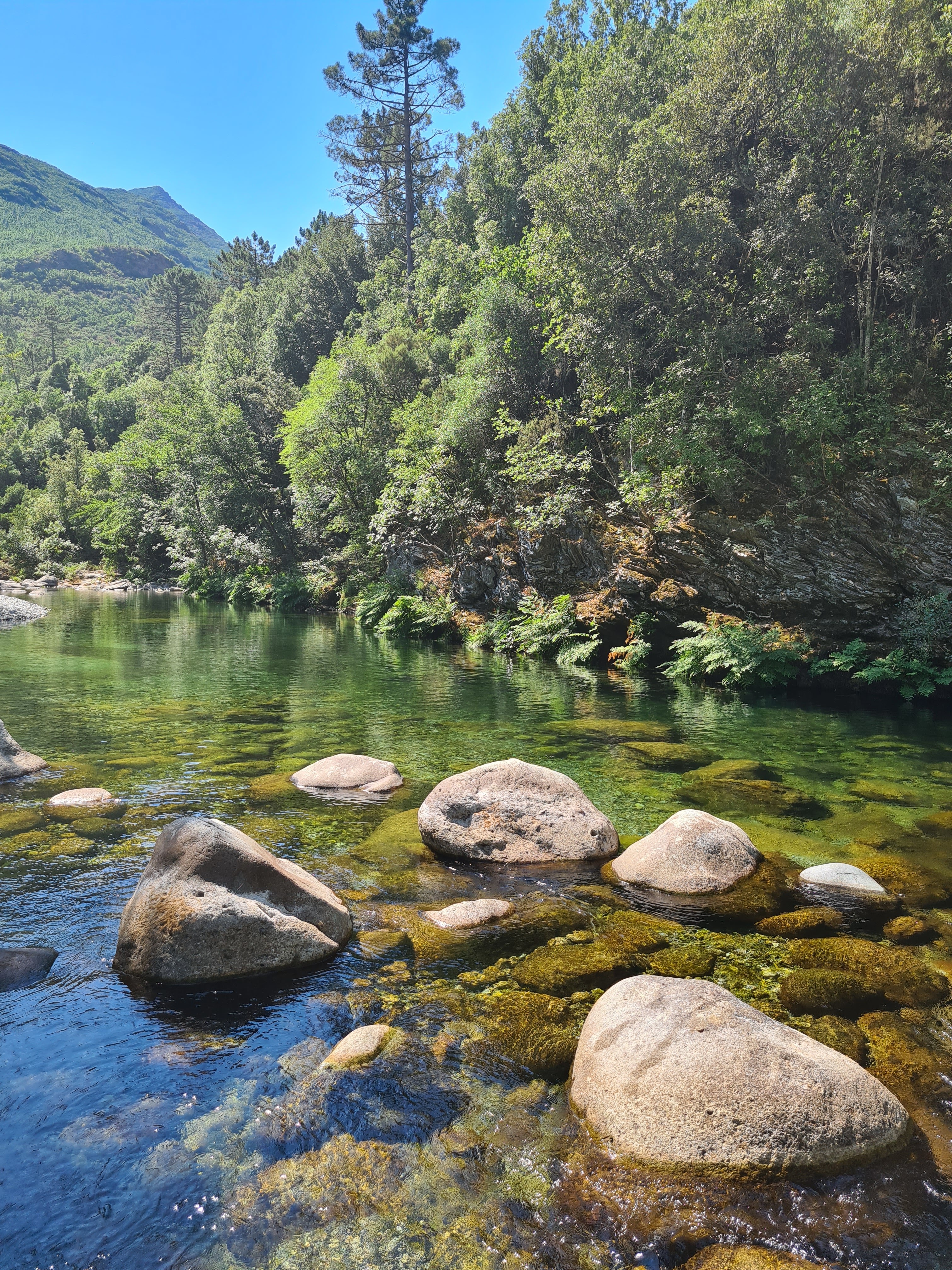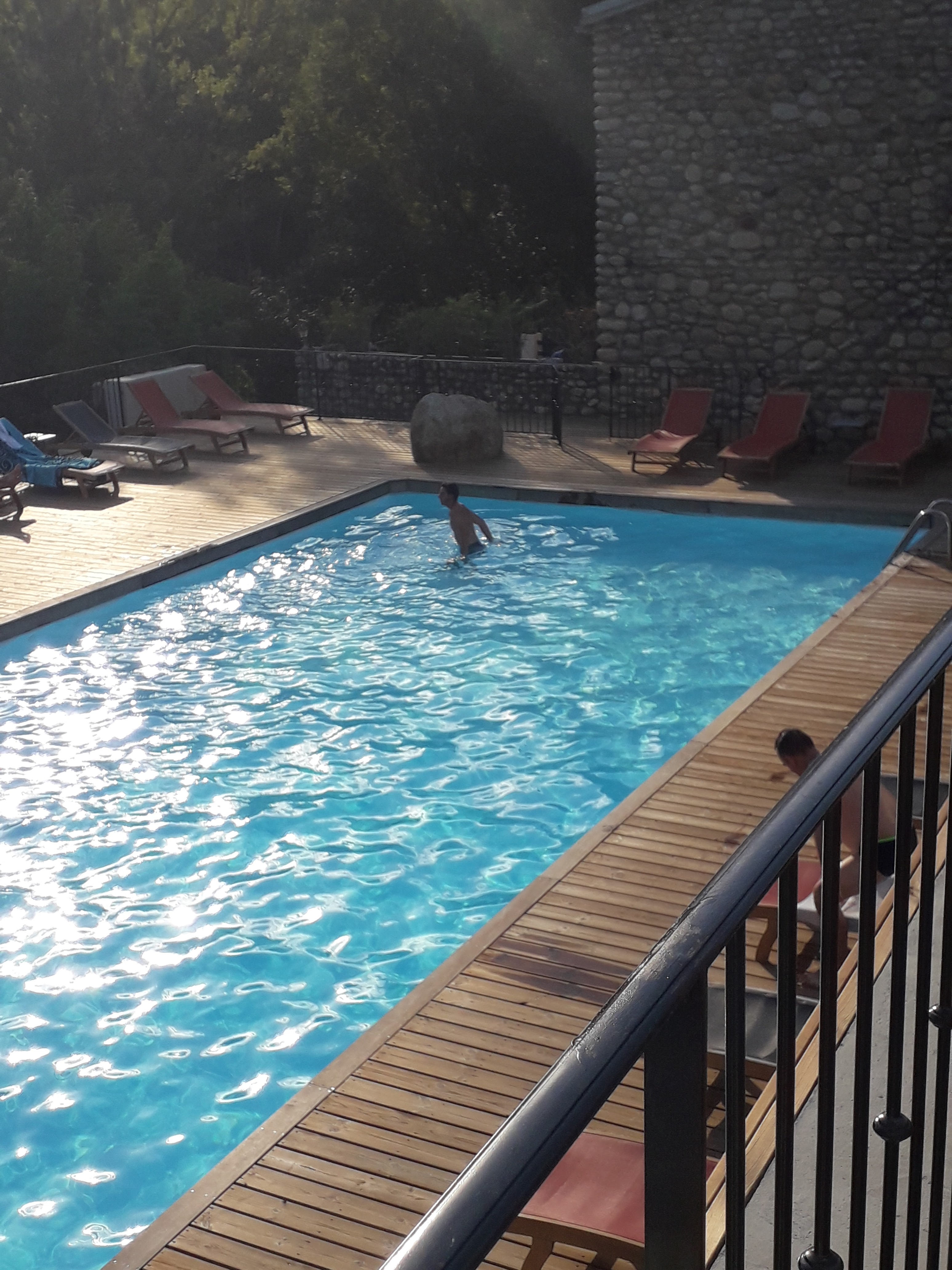Nous y avons fait une halte pour déjeuner (bon et raisonnable) et profiter de la piscine. Nous avons découvert un endroit absolument magique au bord de la rivière. J'ai fait le tour de la Corse et à ce jour c'est l'endroit que je classe numéro 1!!! C'est vous dire