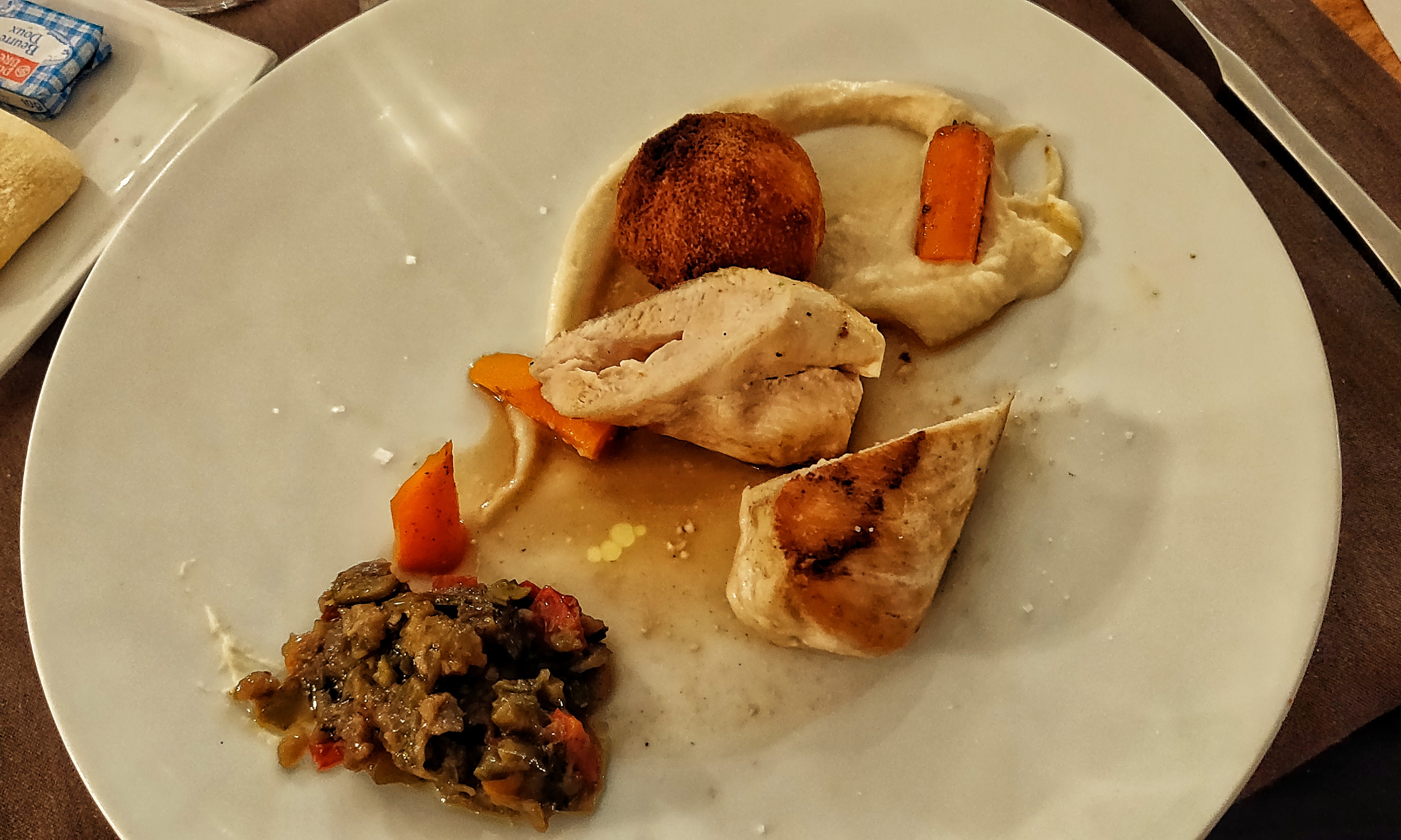 Agréable soirée au restaurant decouverte de la carte d automne avec même du gibier (plutôt rare) Tout était cuit à la perfection Seul bémol le pain 😢