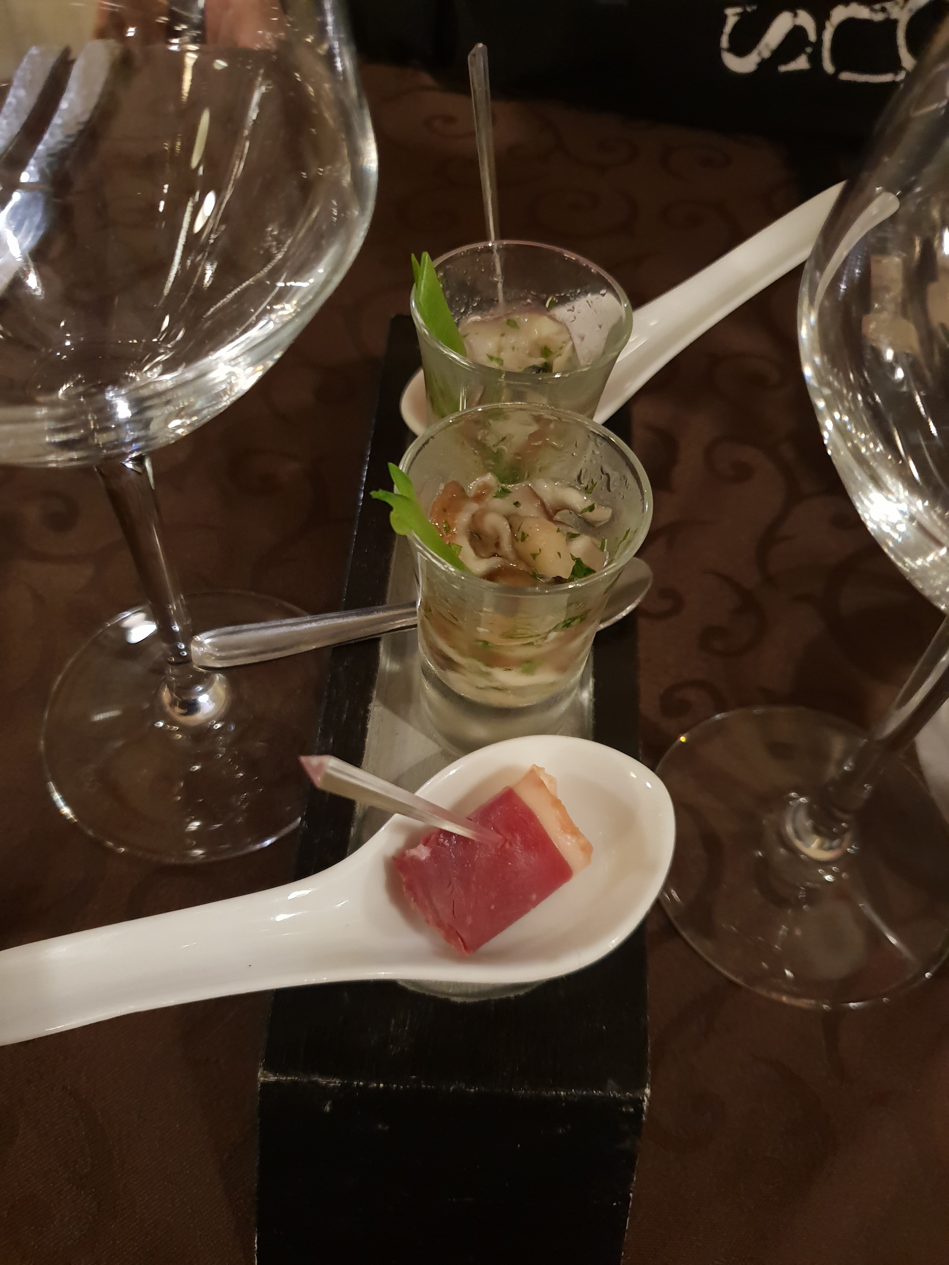 Très bonne soirée. Nous avons pris un quatre plats surprises qui n'en n'était pas car présent dans le menu et savions ce que nous allions déguster. Un petit hic pour le vin , je trouve dommage de réclamer à chaque plat un verre assorti alors que cela était convenu dès le début de la commande... mais c'est chercher les détails qui très honnêtement n'entachent en rien dans la qualité des quatre plats qui nous ont été servis. Qualité/ quantité avec un petit plus pour le poisson grillé : un délice. Une bonne adresse !