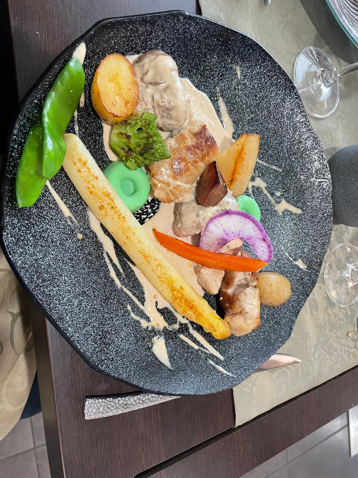 Excellent repas servi en chambre, assiettes gourmandes et délicates, une explosion de saveurs de l'entrée au dessert !