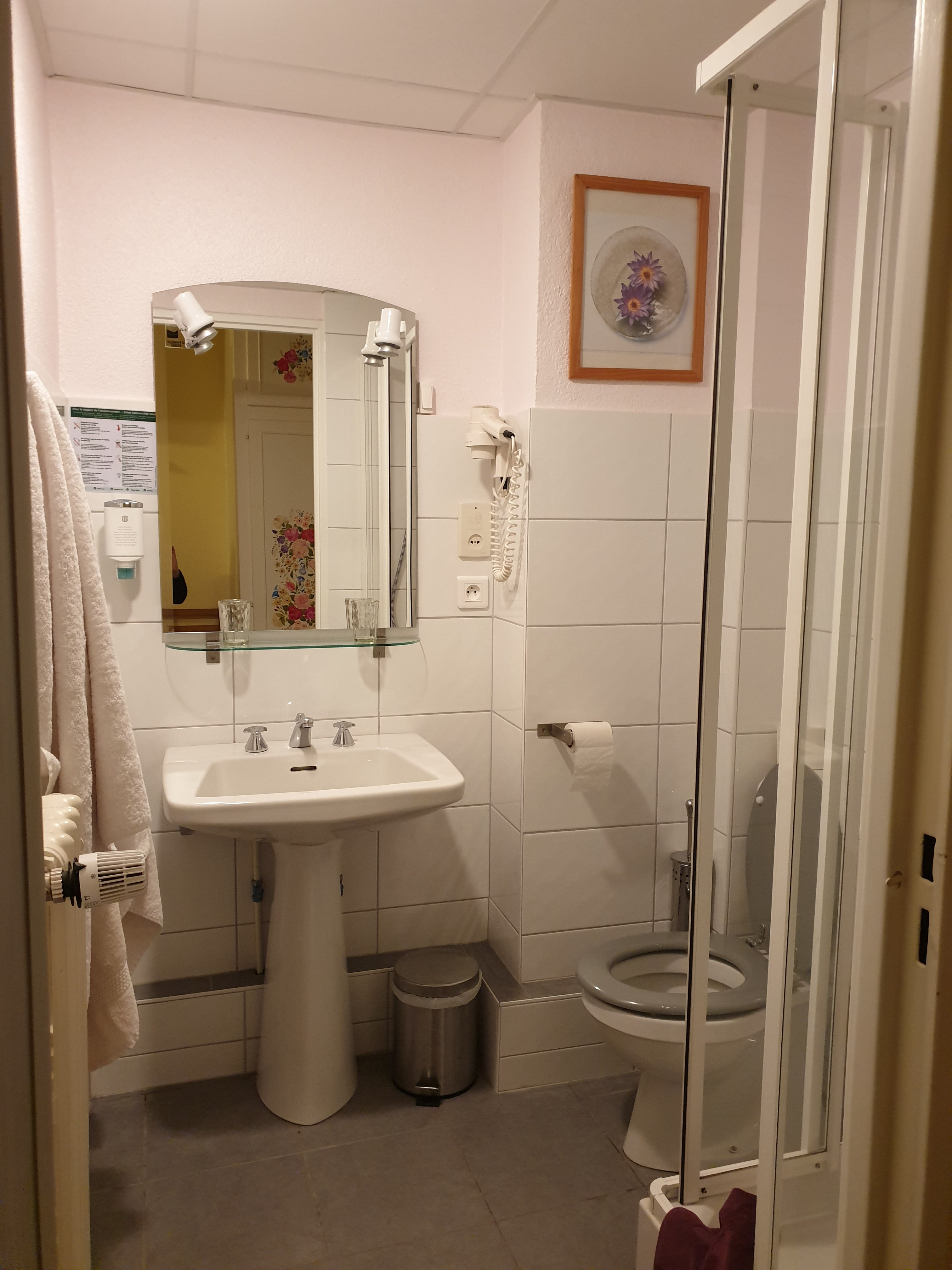 Accueil moyen, c’est-à-dire ni bon ni mauvais. Heureusement que la jeune serveuse pour le service du dîner est très cordiale. Nourriture correcte, mais sans plus. Bon petit déjeuner. La douche de la chambre 17 est vraiment ristrette. Petite mésentente sur le prix. Dès le départ, j’avais fait une réservation pour une chambre pour une personne et pour une nuit en demi-pension. On m’avait répondu 84 Euros par personne et par nuit en chambre double. Or, comme j’étais seul dans une chambre double, le tarif était finalement de 109 Euros. Donc, mauvaise compréhension de part et d’autre. J’ai payé sans en faire une choucroute, mais changez votre libellé pour les solitaires! Sans aucune rancune!