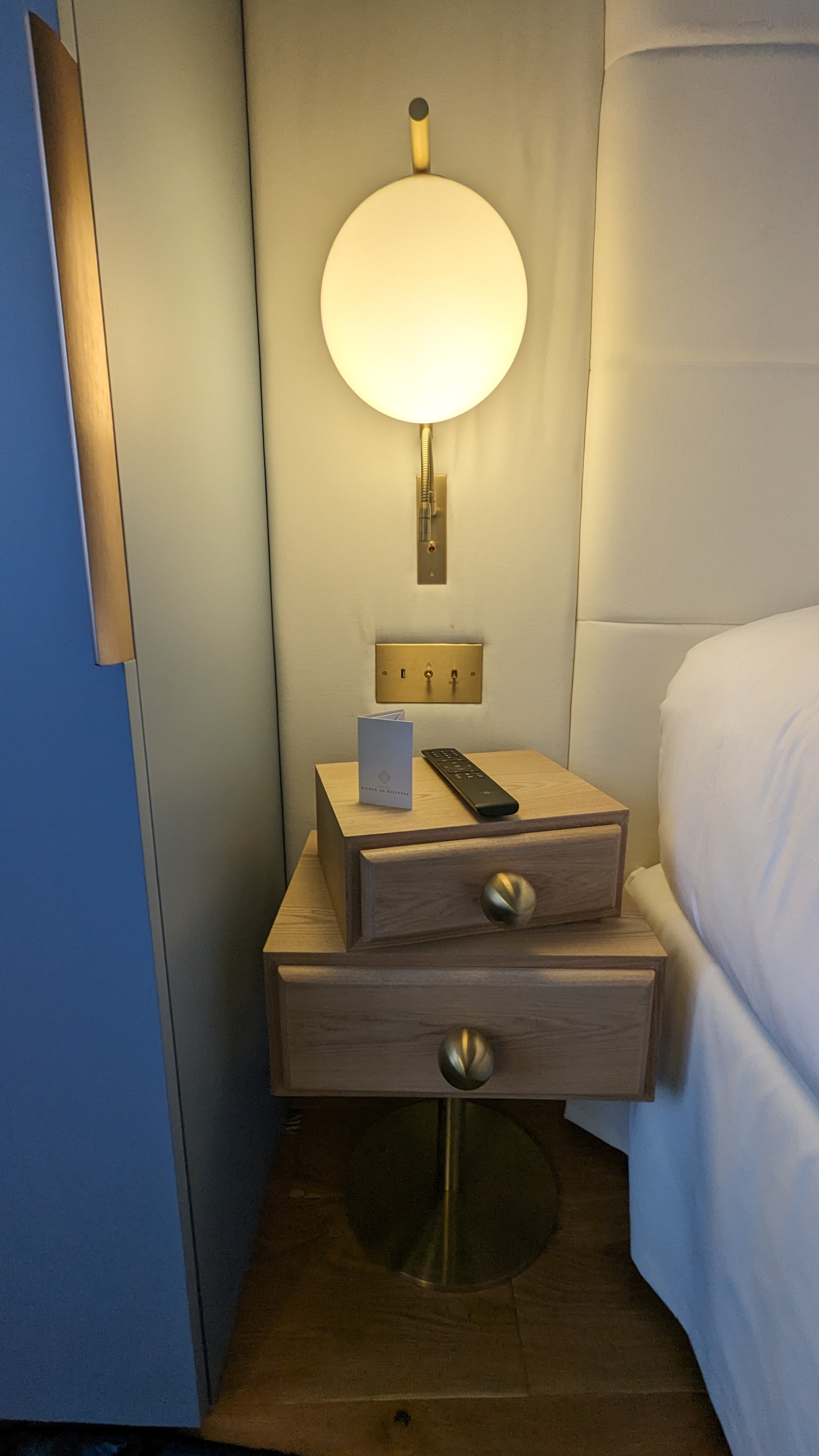 Excellence à la française;satisfaction complète! De l'accueil personnalisé à la découverte de ce lieu unique qui réserve une surprise de style et de bon goût derrière chaque porte ou à chaque étage , nous avons ressenti une satisfaction ce qui devient de plus en plus rare en France. La chambre de luxe est spacieuse et confortable avec son lit king de 2MX2M à la literie haut de gamme, son mobilier design, M/C Nespresso, son coffre, pèse personne design et tous les codes d'un 5 étoiles élégamment séléctionnés tels ces chaussons, le produits de soins de luxe etc .Tout a été séléctionné avec le soin du détail et de la qualité. Housekeeping rendant un service 5* et une netteté et propreté de haute qualité. Le Service au Bistrot svelte et distingué délivre une cusine gourmande au niveau gustatif ;le cadre tant au bar qu'au patio est exceptionnel. Petit déj continental avec des viennoiseries et produits de qualité; cependant ,une opulente salade de fruits (saison+exotiques) et une séléction de fromages plus adaptés au matin (du parmesan et camembert ce 30/1, un peu limite) aurait été appréciée. A améliorer: l'éclairage de la CH 19 ;trop tamisé par des luminaires design (entre autres de Michael Anastasiades etc...) qui ne permet pas cependant de travailler en ces temps de 'staycation' tendance ou à une dame de se maquiller ou s'habiller avant toute sortie . Mémorable et à refaire...
