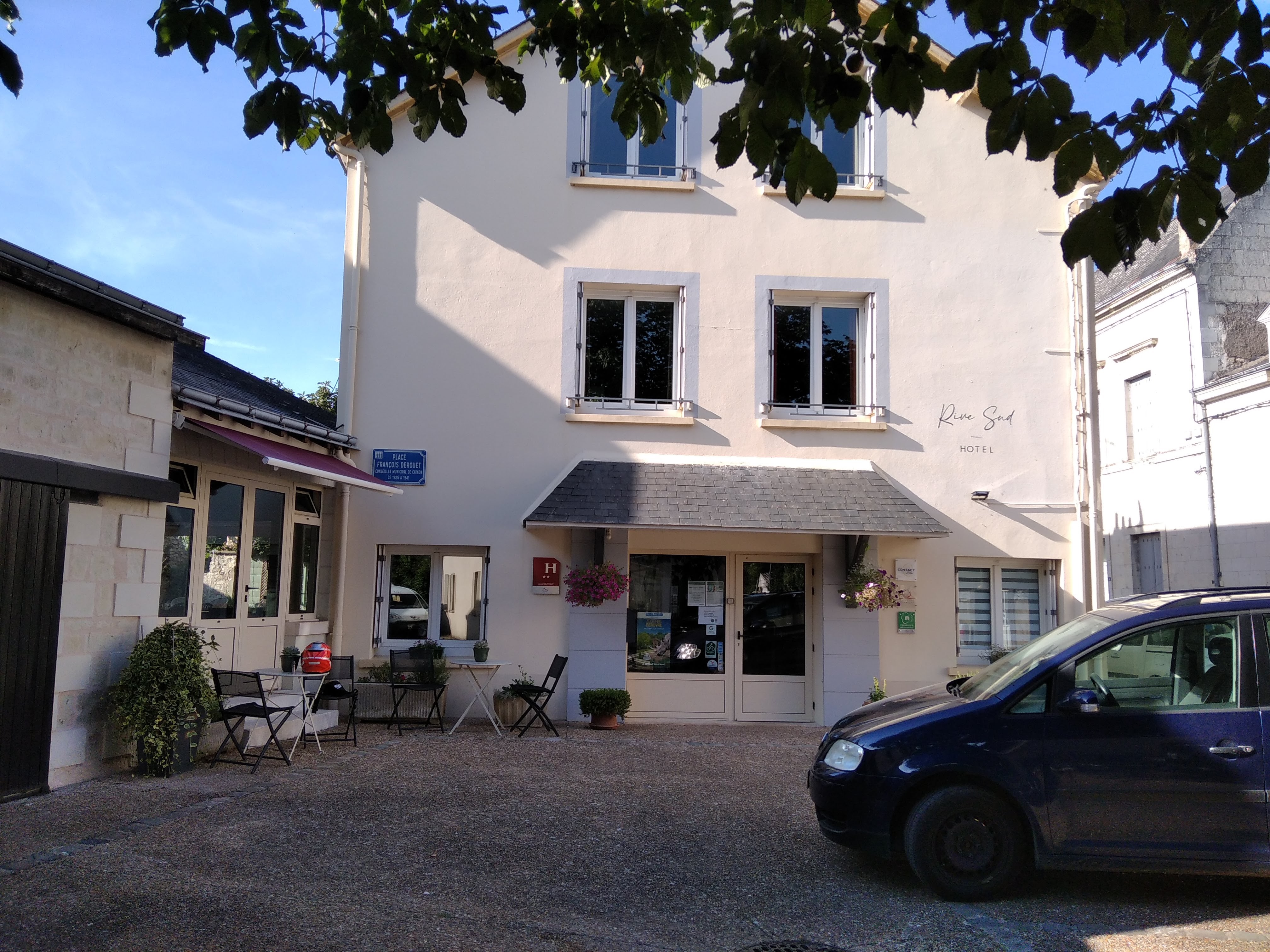 Petit arrêt à l’hôtel Rive Sud un peu par hasard, découvert sur la plateforme de réservation pour mes déplacements professionnels. Et bien très belle découverte ! Propriétaire super sympa, accueil au top 👌 La chambre était spacieuse, très joliment décorée et d’une propreté exemplaire. J’en ai profité pour dîner sur place, le tajine de poulet était très bon 👍 Petit déjeuner sympa, mention spéciale pour les yaourts maison! J’y retournerai lors de mes prochains passages à Chinon! Point faible, il n’y a pas de parking. Mais des places sont disponibles dans les rues avoisinantes.