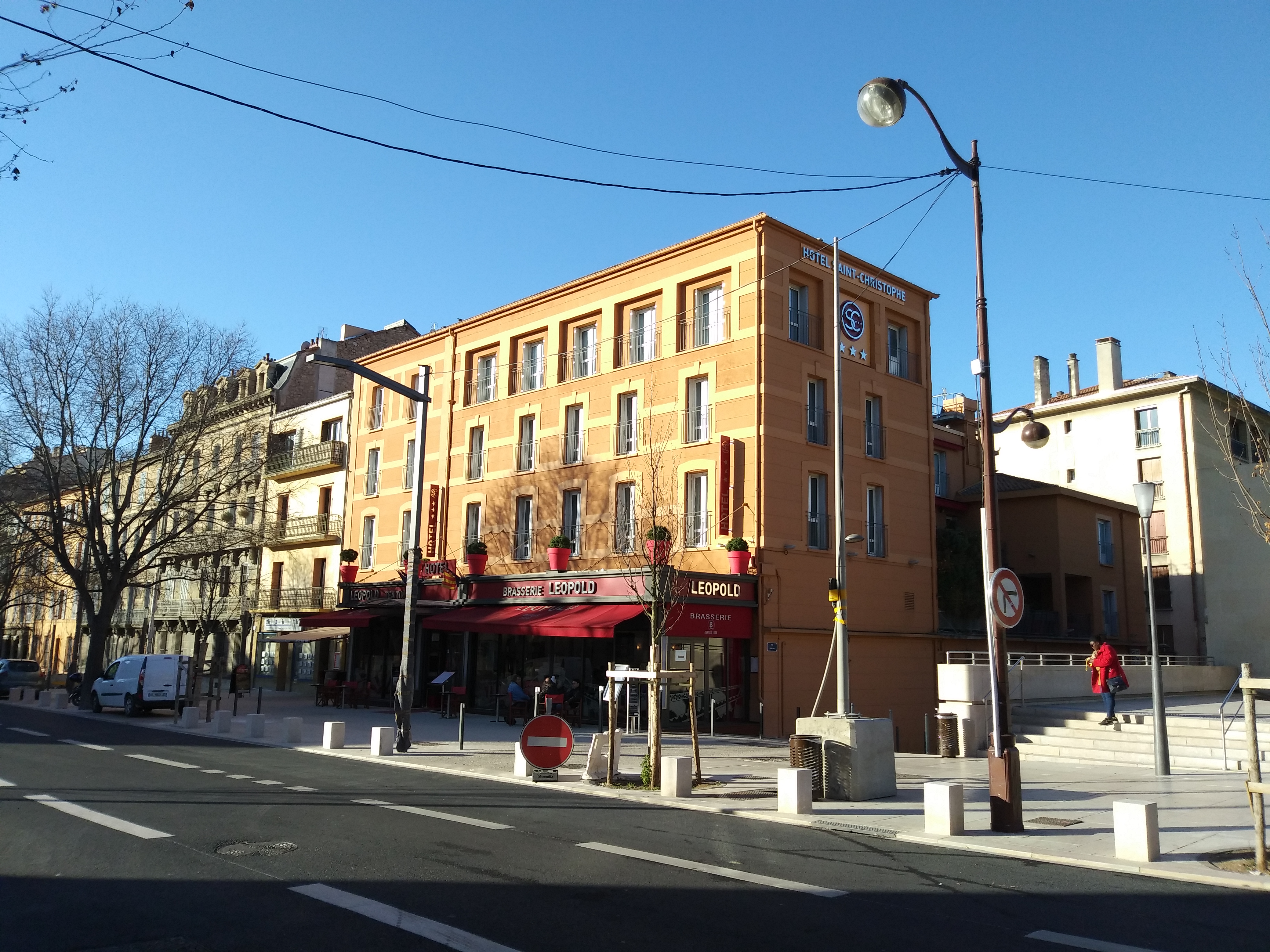 Nous venons de passer un week end à l'hôtel St Christophe, il est idéalement placé, tout près de l'office de tourisme, du Cours Mirabeau et centre historique d'Aix. Le personnel est charmant, les chambres ne sont pas très grandes mais il y a un rangement suffisant, coffre fort dans la chambre, la salle de bain est impeccable, et l'hôtel est bien insonorisé. La brasserie Léopold a une bonne carte et des menus du jour , rien à reprocher