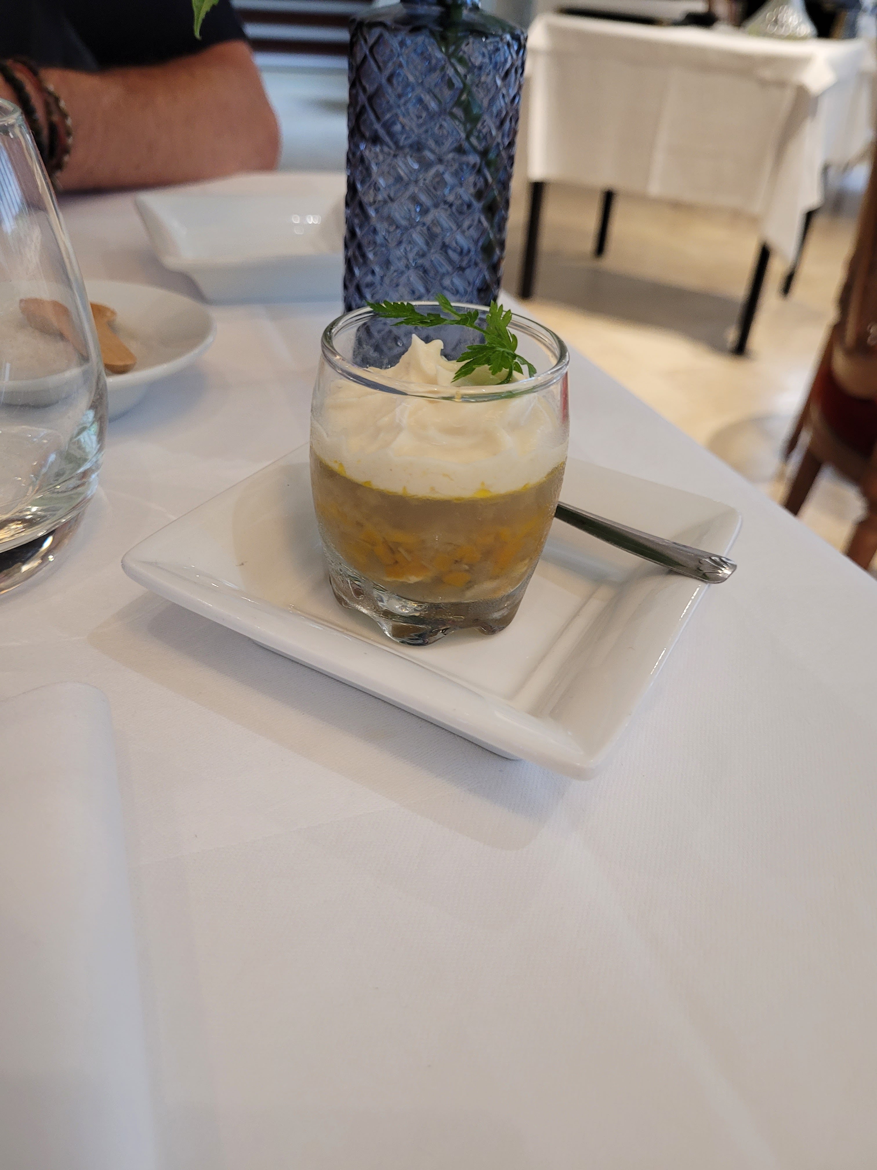 Adeptes de la gastronomie passez votre chemin. Le visuel des plats est créatif pour un menu a 40€, par contre le goût n'y est pas, les plats sont fades, je ne reconnaissait pas le + d'un chef qui permet d'élever les plats. Grande déception, nous y retournons pas, d'autres restaurants sur l'île sont bien moins honereux et bien meilleurs. La déception est grand .