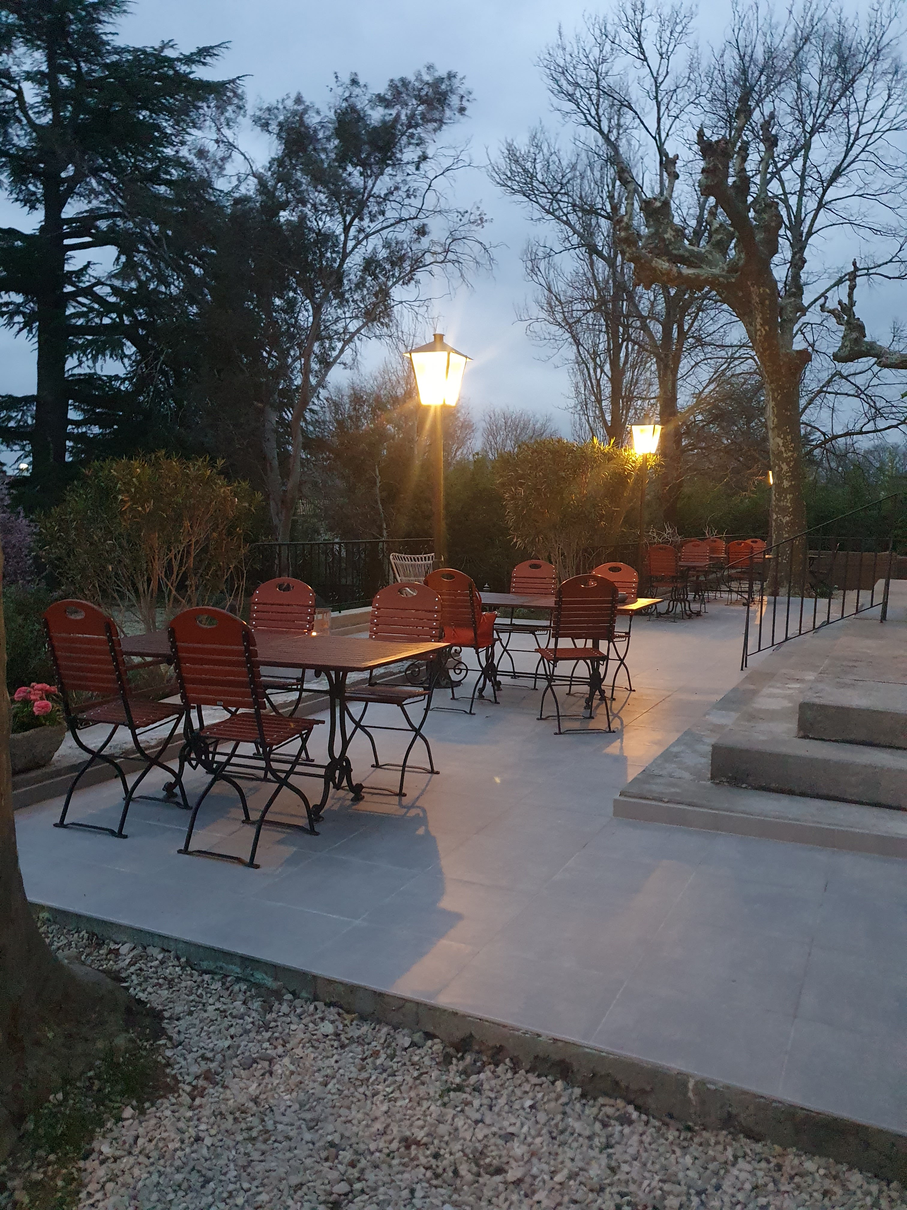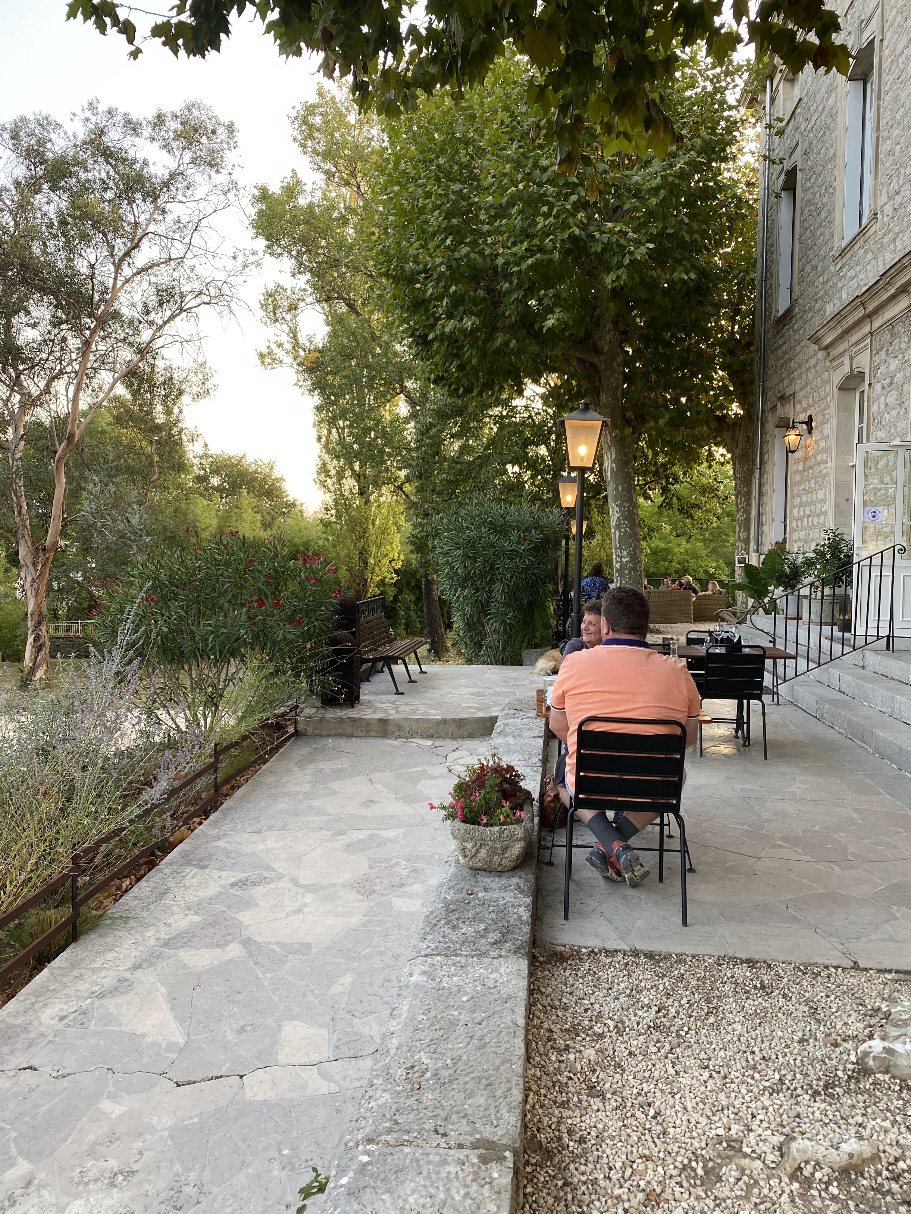 Nous y avons mangé un soir d'août en terrasse loin du tumulte du centre ville de ruoms. Un repas raffiné et original au prix abordable (24 euros le menu), les vins ouverts excellents et les desserts travaillés sont un régal. Accueil agréable et cadre un peu hors du temps sur cette terrasse devant une maginifiqur bâtisse du 19ème siècle. Ouvert que le soir. A recommander