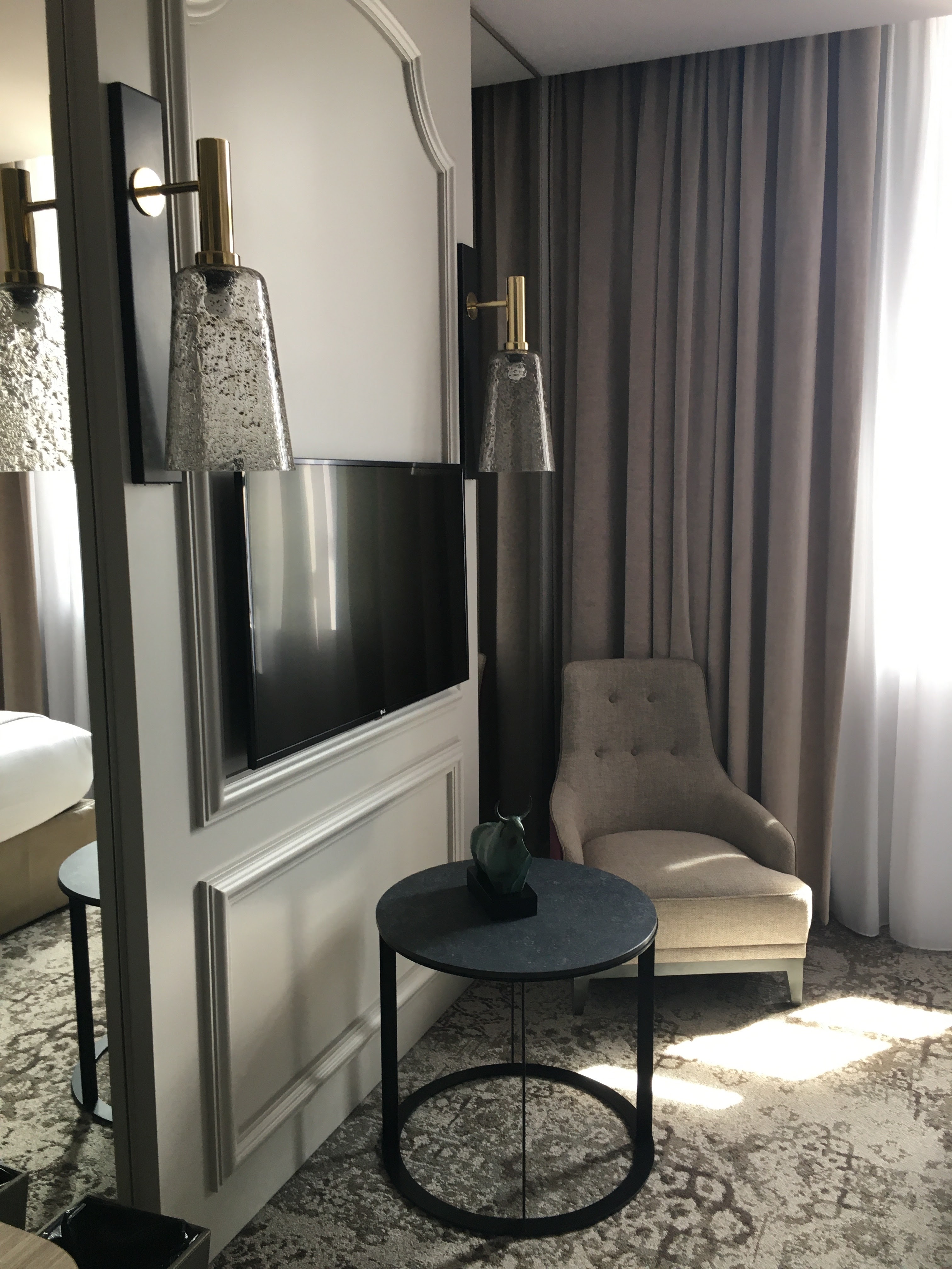 Séjour magnifique dans cet hôtel, la chambre était très bien décorée, une ambiance feutrée du plus bel effet. Très bonne isolation phonique! Peignoir et chausson à disposition. Petit plus appréciable, la télé est grande et on n’est pas cantonné aux chaînes de tv standard, on peut caster nos différents sites de streaming facilement. Le personnel est au petit soin pour que l’on passe le meilleur moment au sein de l’établissement. Le petit déjeuner est excellent, copieux et avec de très bons produits. Le service bar pour prendre un verre est très agréable, les cocktails sont très bons et les alcools de qualité! L’accès au spa pendant 1h30 est directement inclus dans le prix de la chambre.