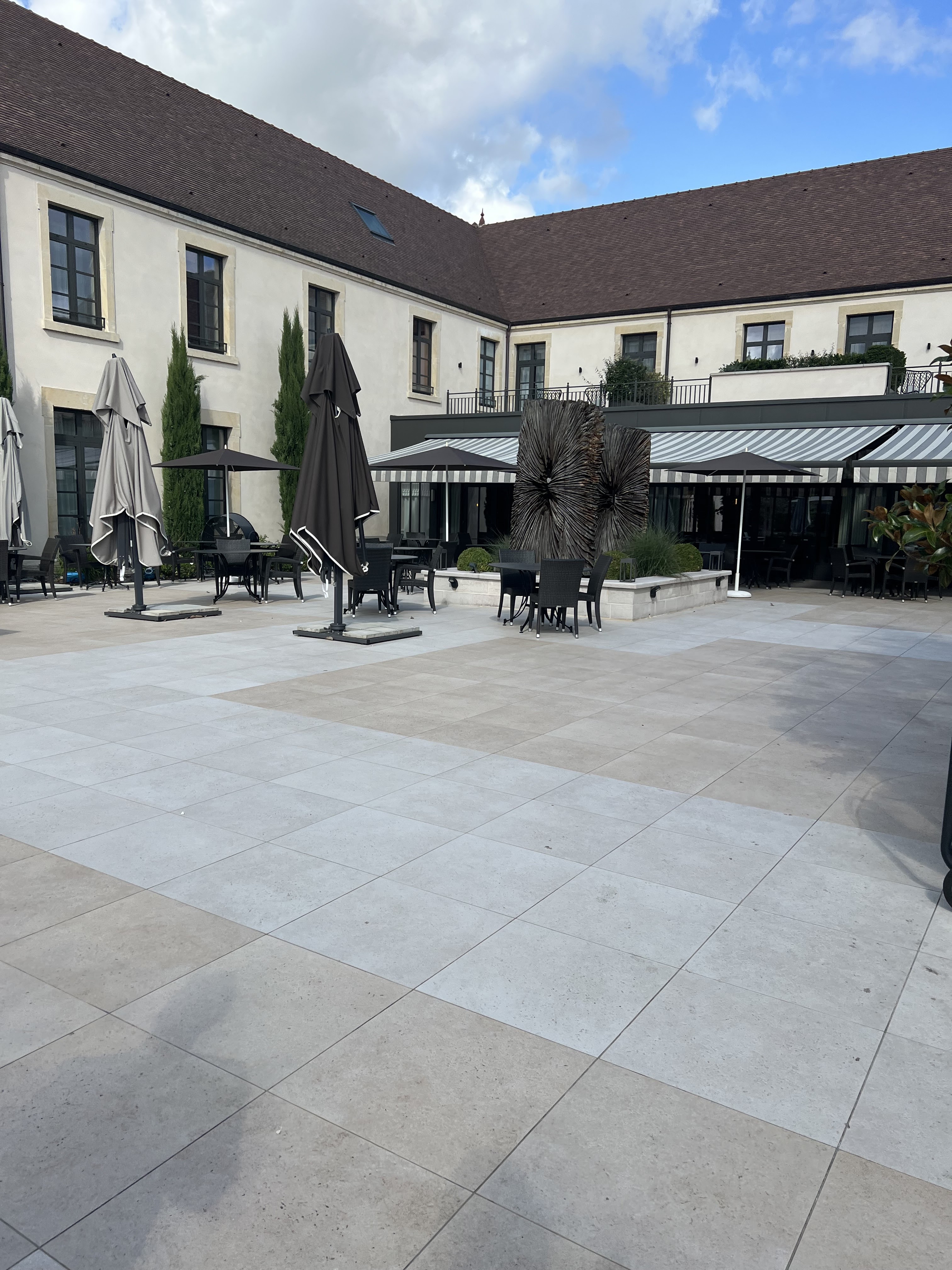 Nous avons pris la formule lunch et spa à 150 euros / personne. Le repas était très bon, bonnes saveurs surtout sur le plat principal autant pour le poisson que la viande. Le cloître était calme un lundi en semaine, nous n'étions que deux tables donc nous avions toute l'attention de l'équipe et c'était appréciable. Pour le massage nous avons eu le choix entre plusieurs options, ce qui est appréciable. Les deux jeunes femmes étaient très agréables et nous ont demandé plusieurs fois si nous étions à notre aise, si tout allait bien. Utilisation de différentes huiles voire même certaines huiles essentielles de soin pour la partie poumon / haut du corps. Huile chaude et parfums, très bien. Une petit collation à choisir après le massage, thé / camomille/ café... Et une fontaine à orangeade est présente. Le spa en lui-même est un peu basique malheureusement, la vue sur un parking étant une légère déception. Une piscine à 29 degrés un peu fraîche pour avoir envie de s'y baigner. Un jacuzzi, un hammam et une douche à huiles essentielles avec 4 programmes à choisir entre pluie méditerranéenne, pluie tropicale, brume froide etc. En ce qui concerne mes recommandations d'amélioration : - la plateforme de suivi de réservation ne fonctionne pas, une fois connecté aucun RDV ne s'affiche - On reçoit un mail par réservation spa / massage / repas mais il n'y a que l'horaire d'indiqué et pas l'activité concernée - Même si on ne nous a pas fait payer l'option, le massage à deux dans la même cabine suppose un extra et je suis persuadé qu'on on nous a dit l'inverse au téléphone, car j'avais indiqué que la dépense ne me paraissait pas utile. - L'équipe est absolument géniale, très serviable et agréable par contre ils semblent un peu perdu car on ne nous dit pas où aller ni quand payer. D'ailleurs le personnel nous a demandé plusieurs fois si on avait déjà réglé et qu'est-ce qu'on avait déjà réglé. C'est un bel endroit sans aucun doute, l'équipe est formidable mais je pense que le spa est un peu basique pour répondre au rapport qualité prix. Nous reviendrons probablement plus pour le restaurant. Merci pour l'accueil !