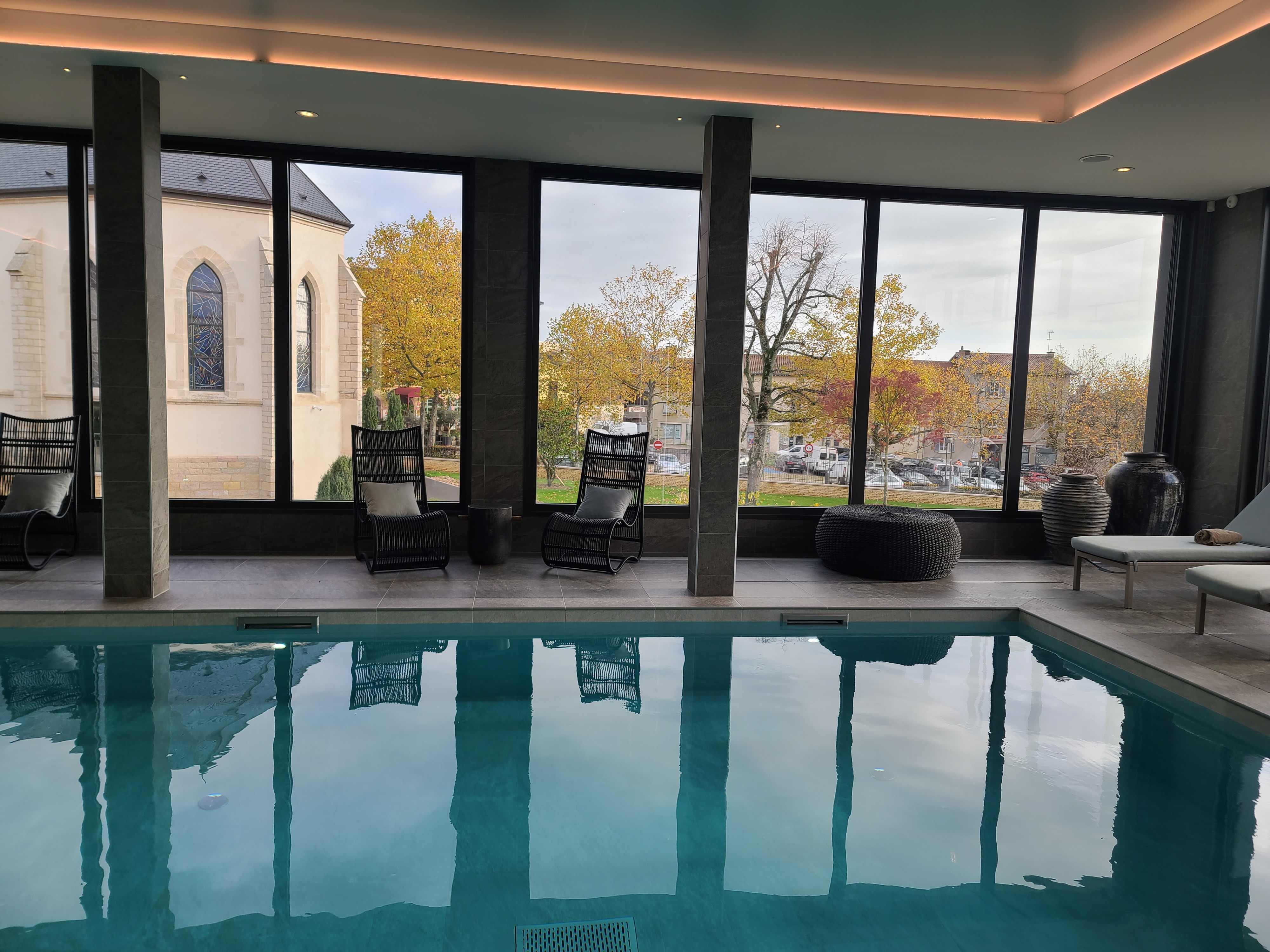 Nous avons adoré! Hôtel SPA magnifique. Quelle belle décoration !! Tout est beau !! C’est vraiment joli et chic! Les chambres et literie sont très confortables. C’est très très propre. Le personnel est charmant. Le petit déjeuner délicieux surtout la brioche à la praline la spécialité de la région, le jus d’orange est frais. La piscine intérieure chauffée et ses grandes baies vitrées sont superbes. Et tout est simple… tu réserves ton créneau mais si tu dépasses c’est pas grave… tu as oublié ton peignoir, c’est pas grave… tu en as un autre… c’est simple… et reposant.